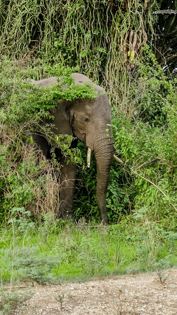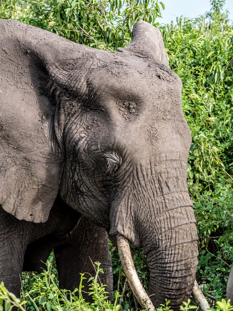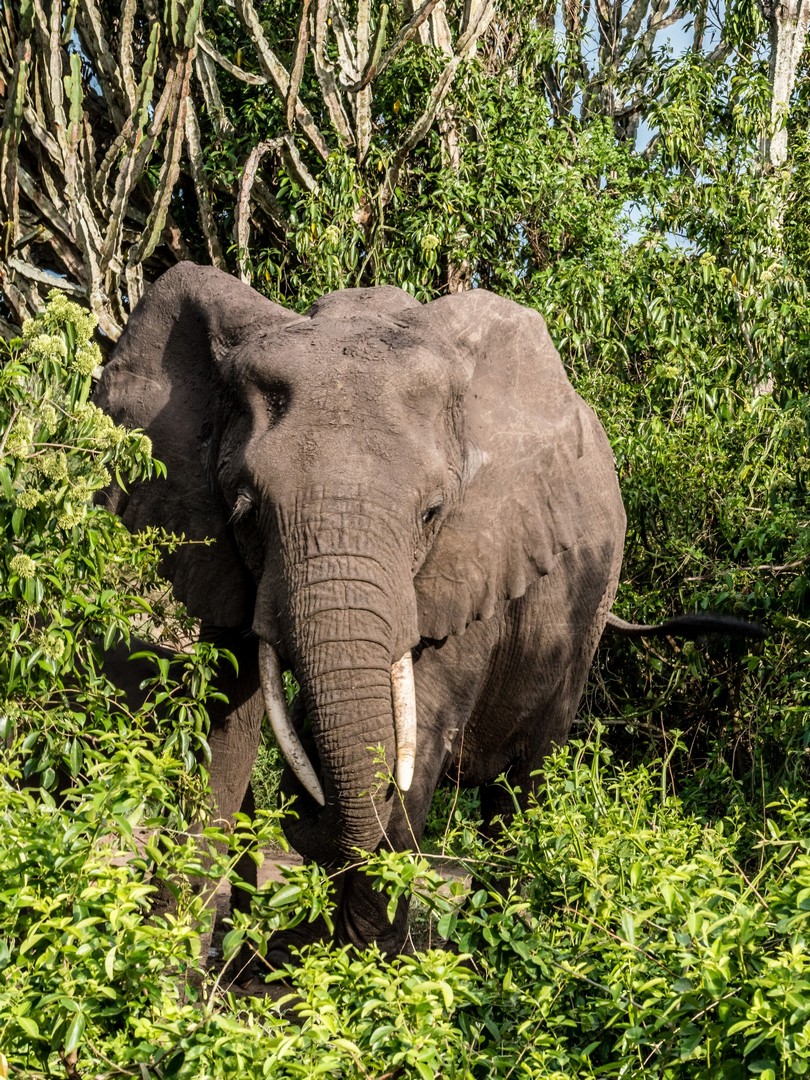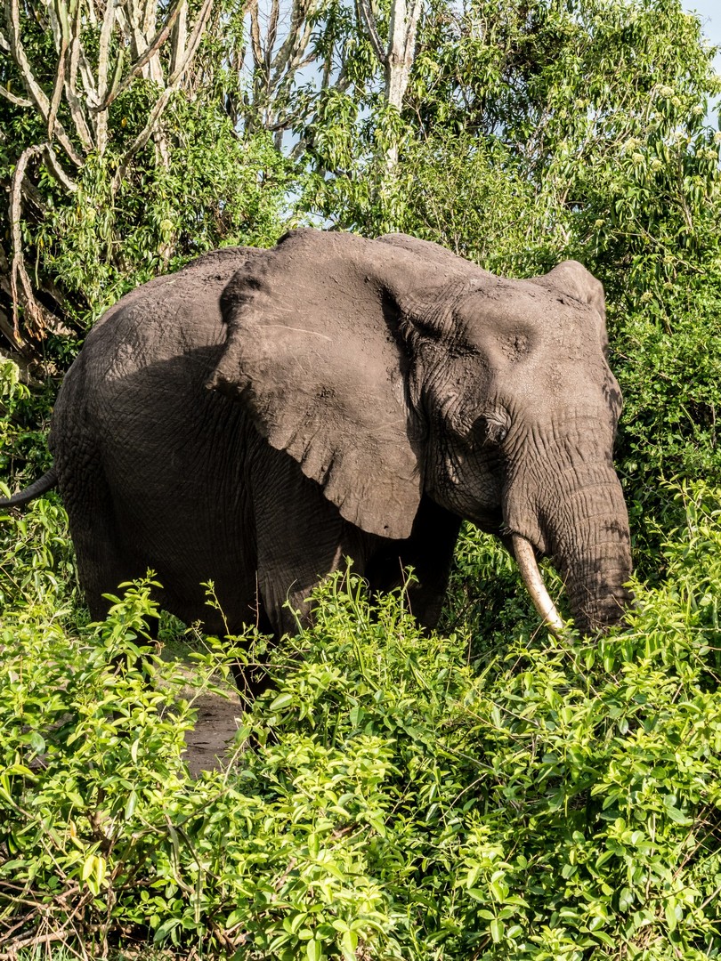 Une fois revenue à l’embarcadère, j’ai envie de prolonger ce moment de rêvasserie sur la berge, en attendant de rentrer dans la jeep mais la voix de Michael me tire de mes pensées : « Tu as regardé si il n’y avait pas de crocodiles ou de hippos ? ». Je pensais le voir le sourire, mais non ! Michael est vachement sérieux et me fit signe de venir vers lui. Je me dis que finalement, la vie dans la nature est pleine de dangers ! Et ce n’est pas le chemin vers Ishasha, notre prochaine étape, qui va le contredire. Nos demandes de « On peut s’arrêter là ? » se verront répondre souvent « Non ». Trop dangereux avec les animaux et cela les dérange. Quand je vois les éléphants que nous avons croisés sur le chemin, et de très près, je me dis que en effet, c’est mieux.