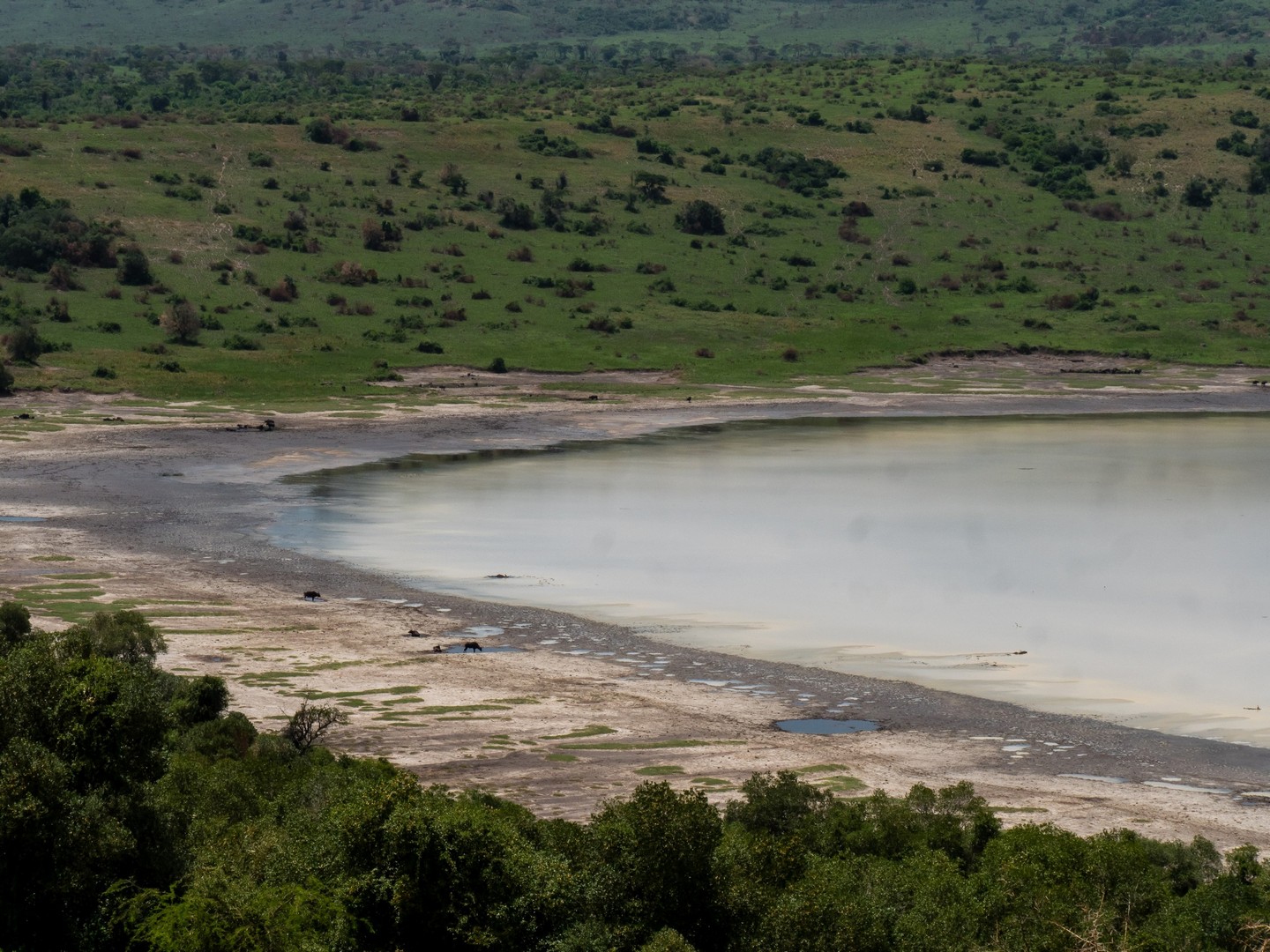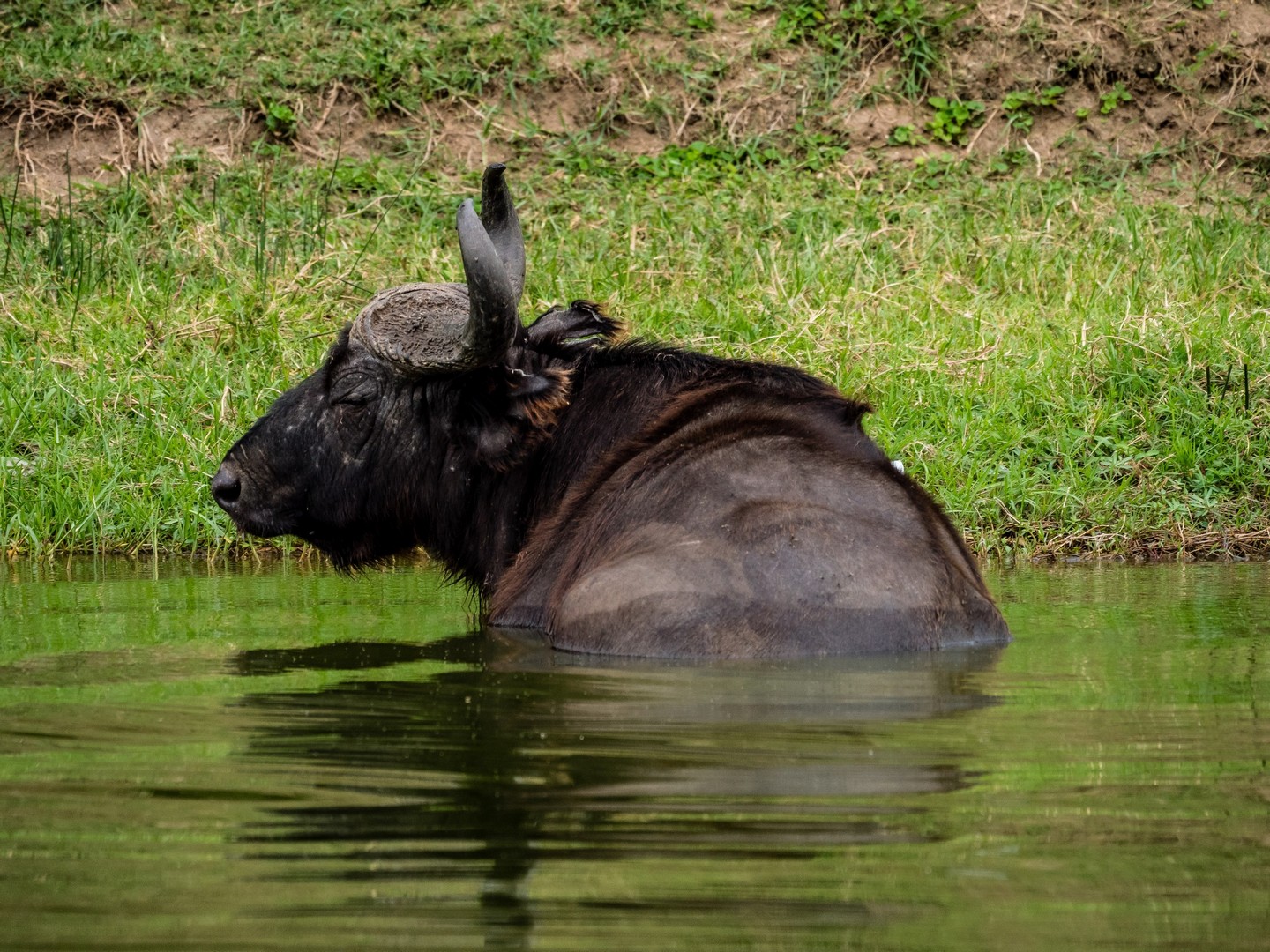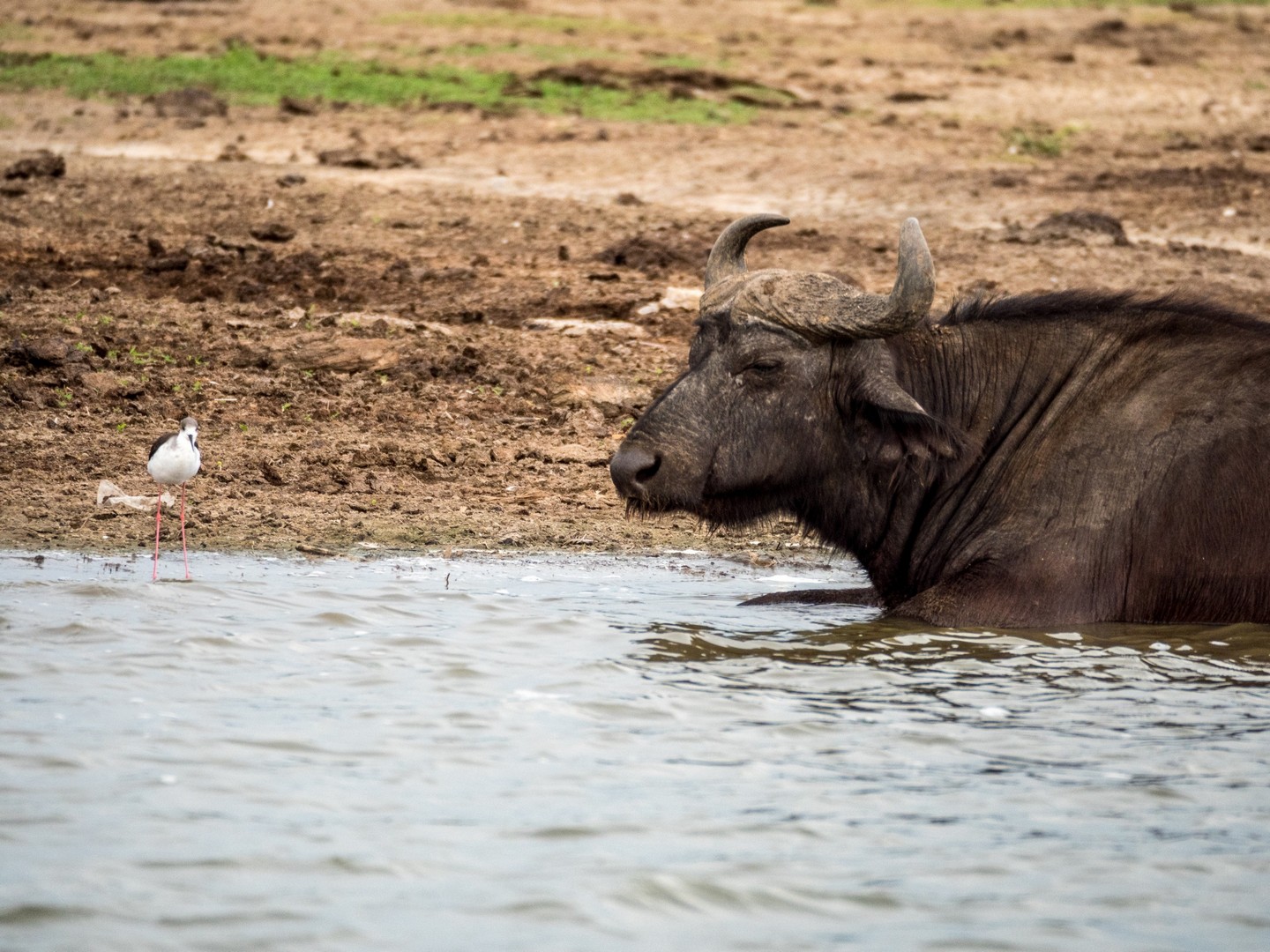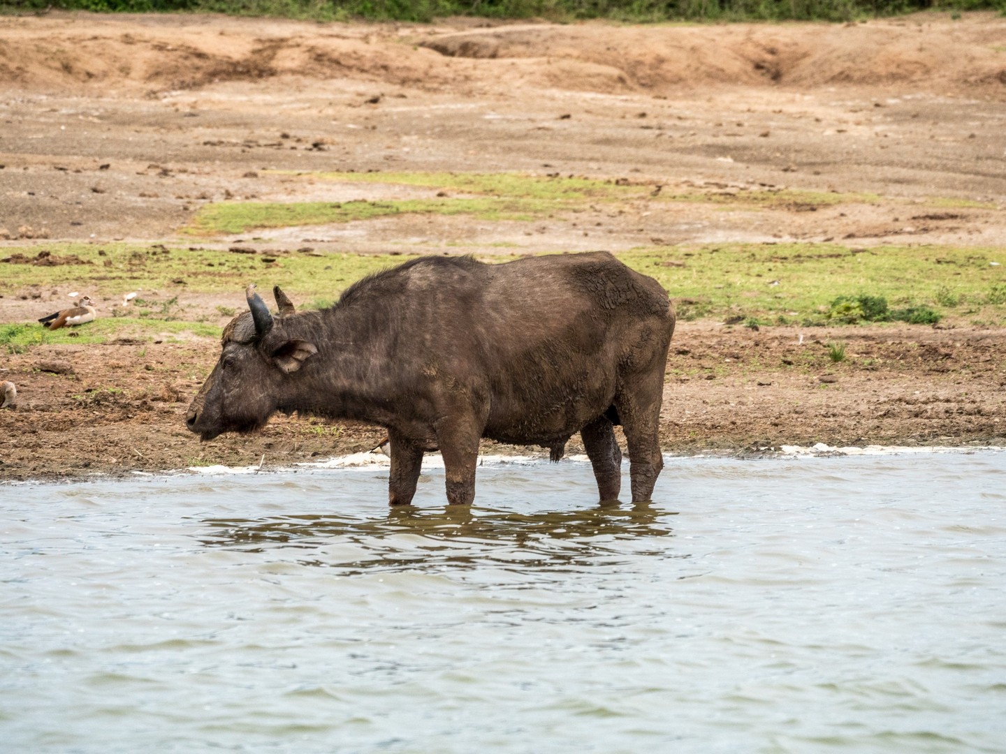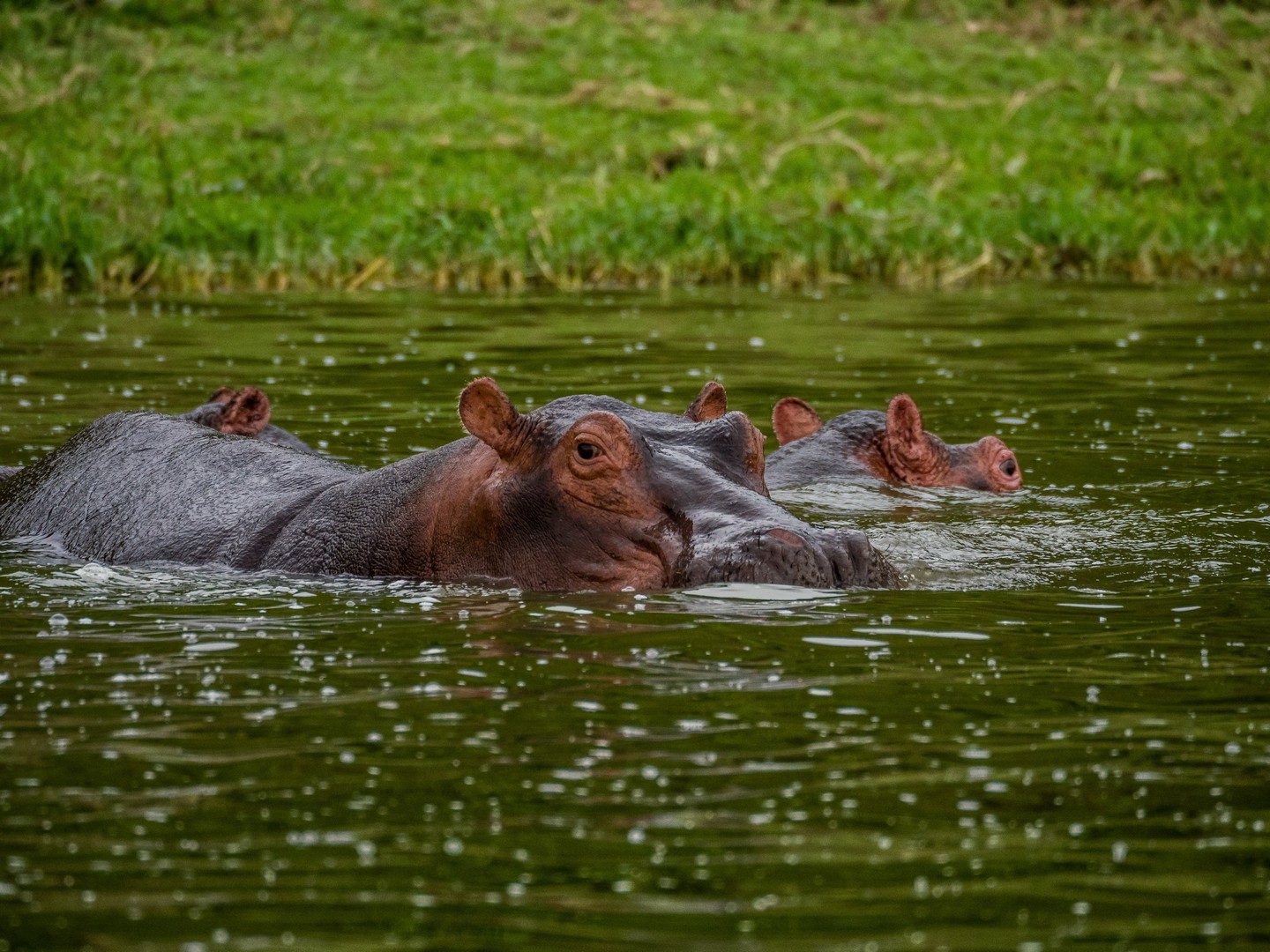 Kazinga est connu pour avoir une énorme concentration d’hippopotames. Ils sont partout le long des berges, là où ils peuvent marcher sous l’eau sans être trop éloignés de la surface. La plupart du temps, ils restent semi-submergés dans l’eau, avec juste leurs drôles de petites oreilles, leurs yeux et leurs dos qui dépassent. Étonnamment, souvent pas très loin d’eux, on trouve les buffles. Les deux animaux les plus dangereux d’Afrique se côtoient paisiblement !