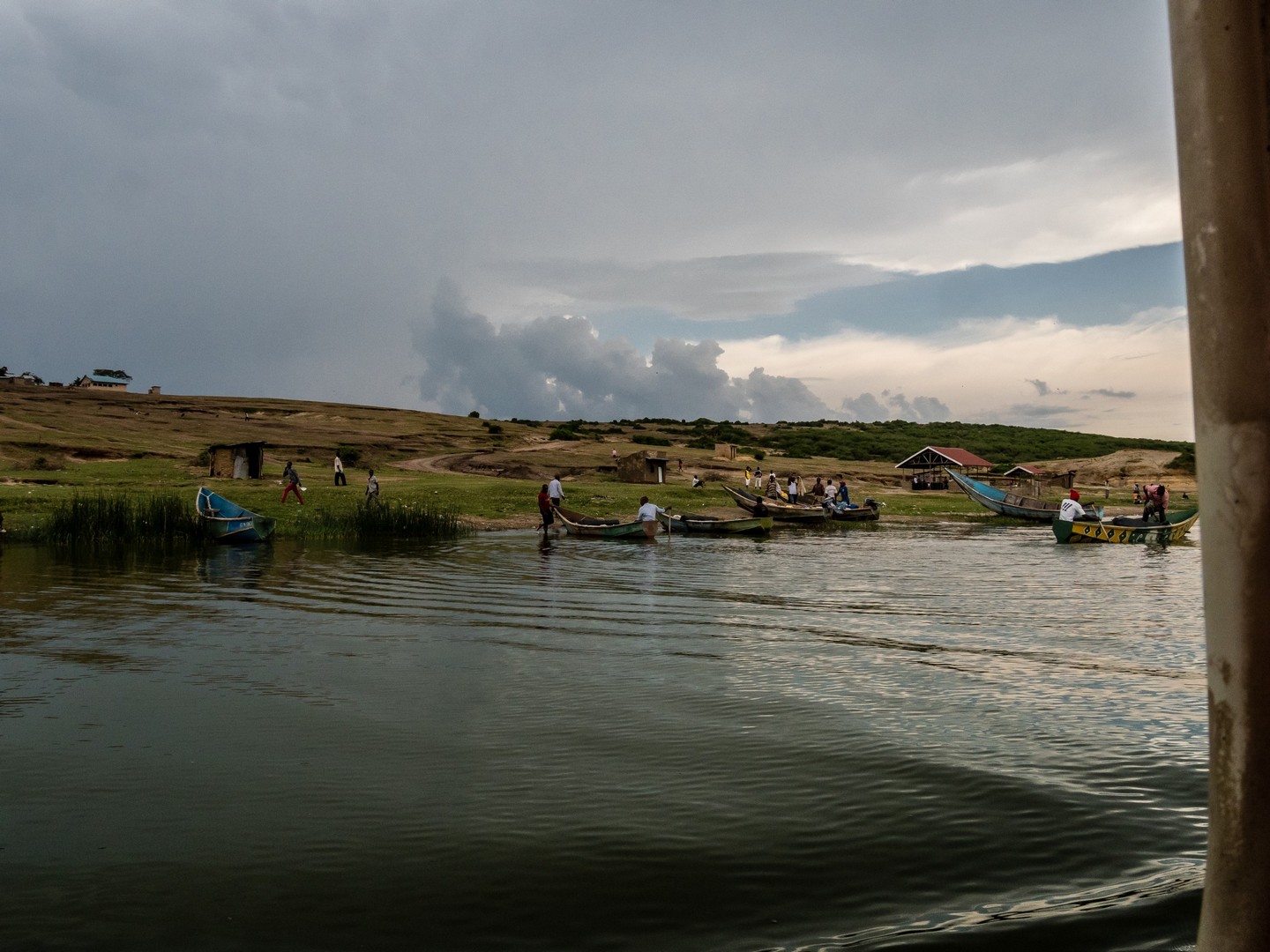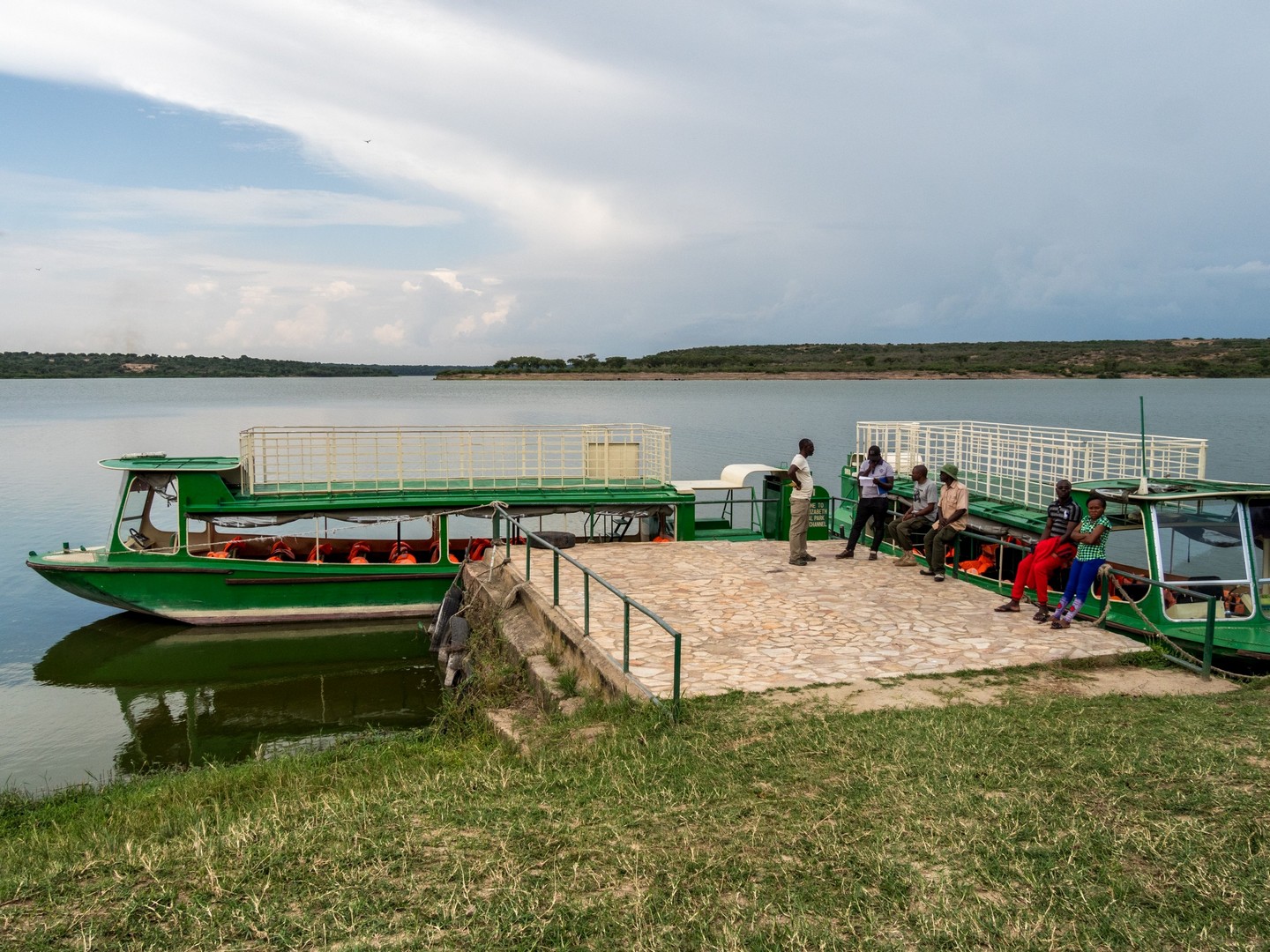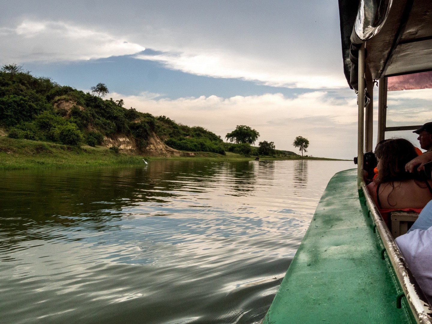 C’est presque pile à l’heure que nous arrivons sur le ponton pour embarquer sur un des bateaux qui naviguent le long du Kazinga Channel. Et pour une fois, il y a du monde, on dirait que cette excursion est plutôt populaire. Rien d’étonnant, il suffit de s’installer confortablement en bas ou de profiter de la vue en haut, de tenir son appareil-photo ou ses jumelles à portée de main et de se laisser porter par le bateau. C’est parti pour une longue promenade fluviale sur ce chenal qui relie le Lac George au Lac Edward.