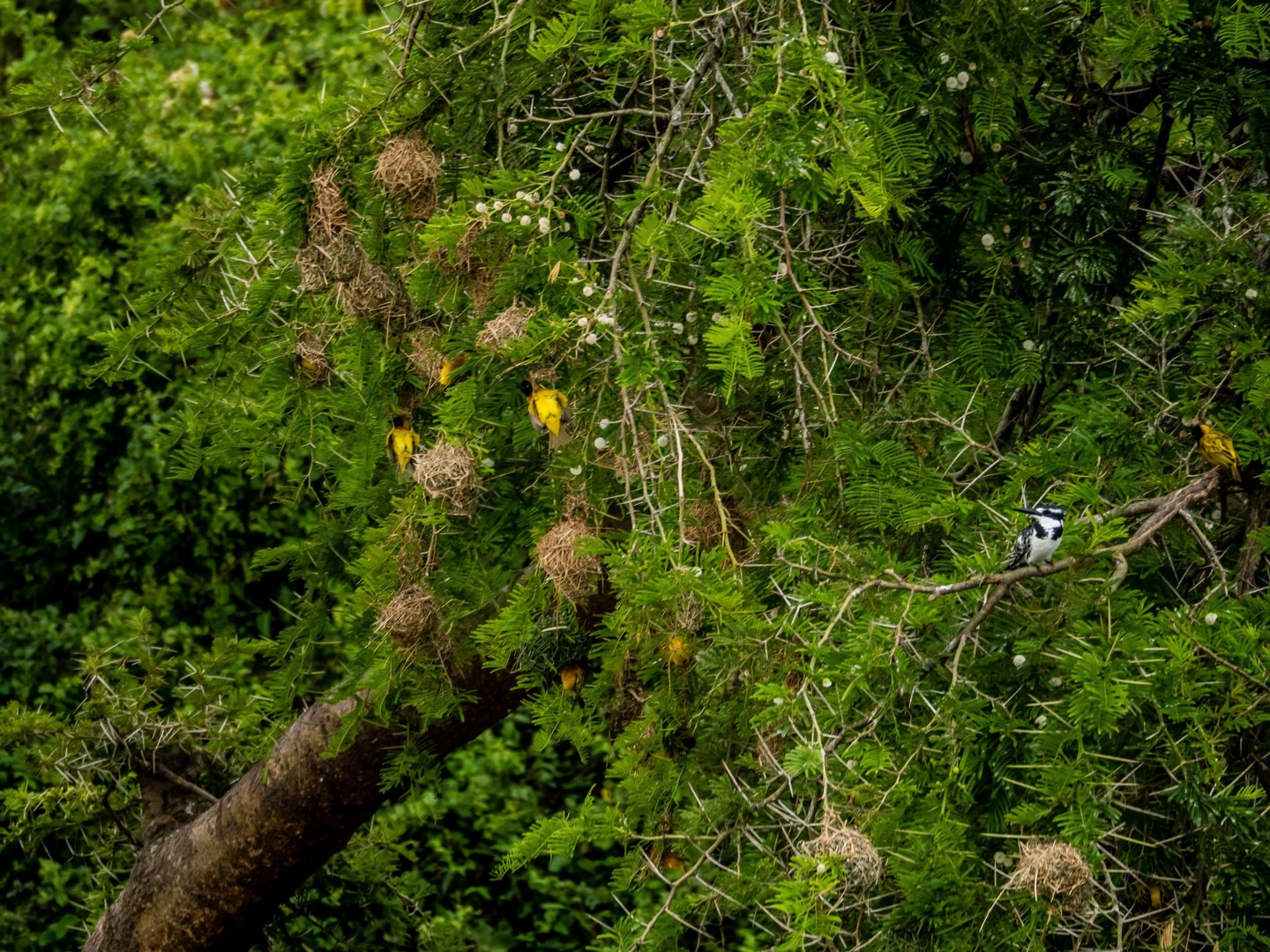 Les crocodiles du Nil sont également nombreux, ainsi que les éléphants (plutôt timides en ce milieu d’après-midi) mais ce qui fait l’attrait du parc et de Kazinga Channel en particulier, ce sont les oiseaux : échassiers, rapaces, martins-pêcheurs, des grands, des petits, des blanc, des multicolores… Tout ce que la nature a pu avoir inventé comme oiseaux se retrouve là !