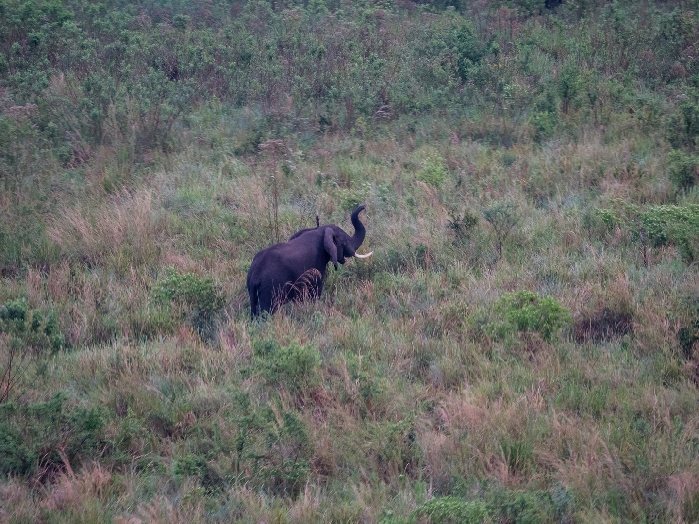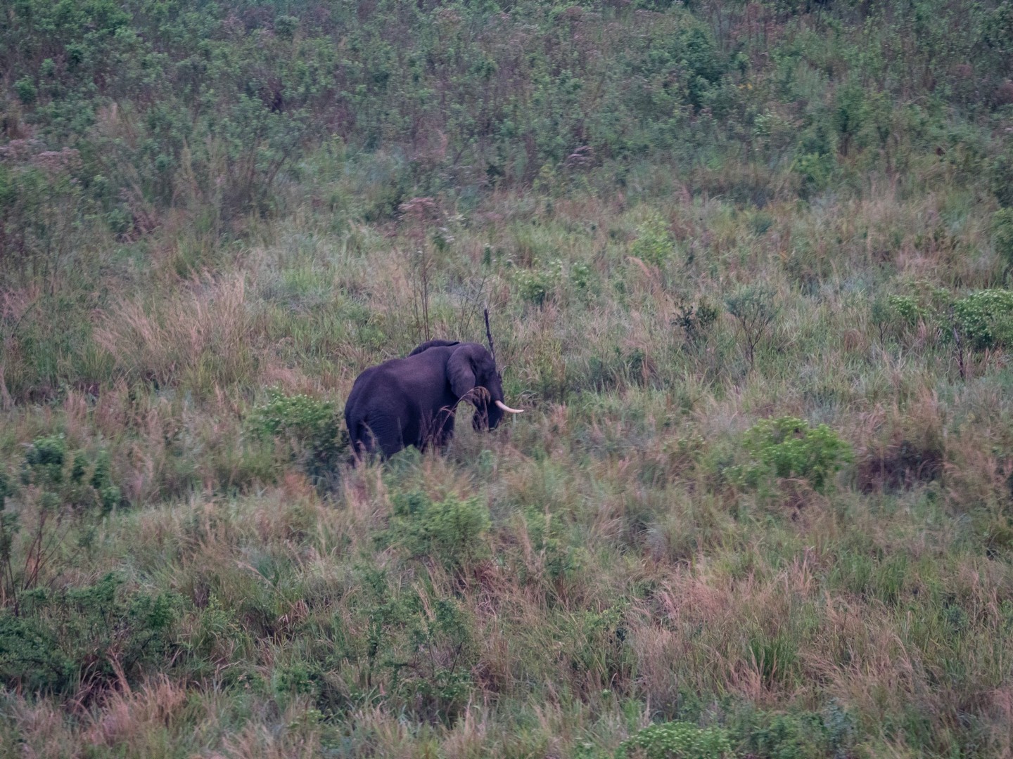 Le lendemain matin, alors que nous avons le loisir de dormir un peu plus tard, Emma et moi sommes levées aux aurores. Ma compagne de chambre est en forme et est déjà sur la terrasse, à profiter de l’air du matin. Je suis à peine sortie de mon lit qu’elle rentre précipitamment : « Viens voir ! ». Je me précipite dehors. La savane s’étale comme un livre d’image géant largement ouvert. Et sur la crête d’une colline, un éléphant, un éléphant qui se balade tout seul (ou toute seule) et se rapproche du lodge. Nous l’observerons longuement avant que le reste de son petit groupe ne le rejoigne. Tout est si paisible, nous pourrions rester sur cette terrasse pendant des heures mais nos estomacs grondent et les éléphants finissent par s’éloigner. Une nouvelle journée nous attend !