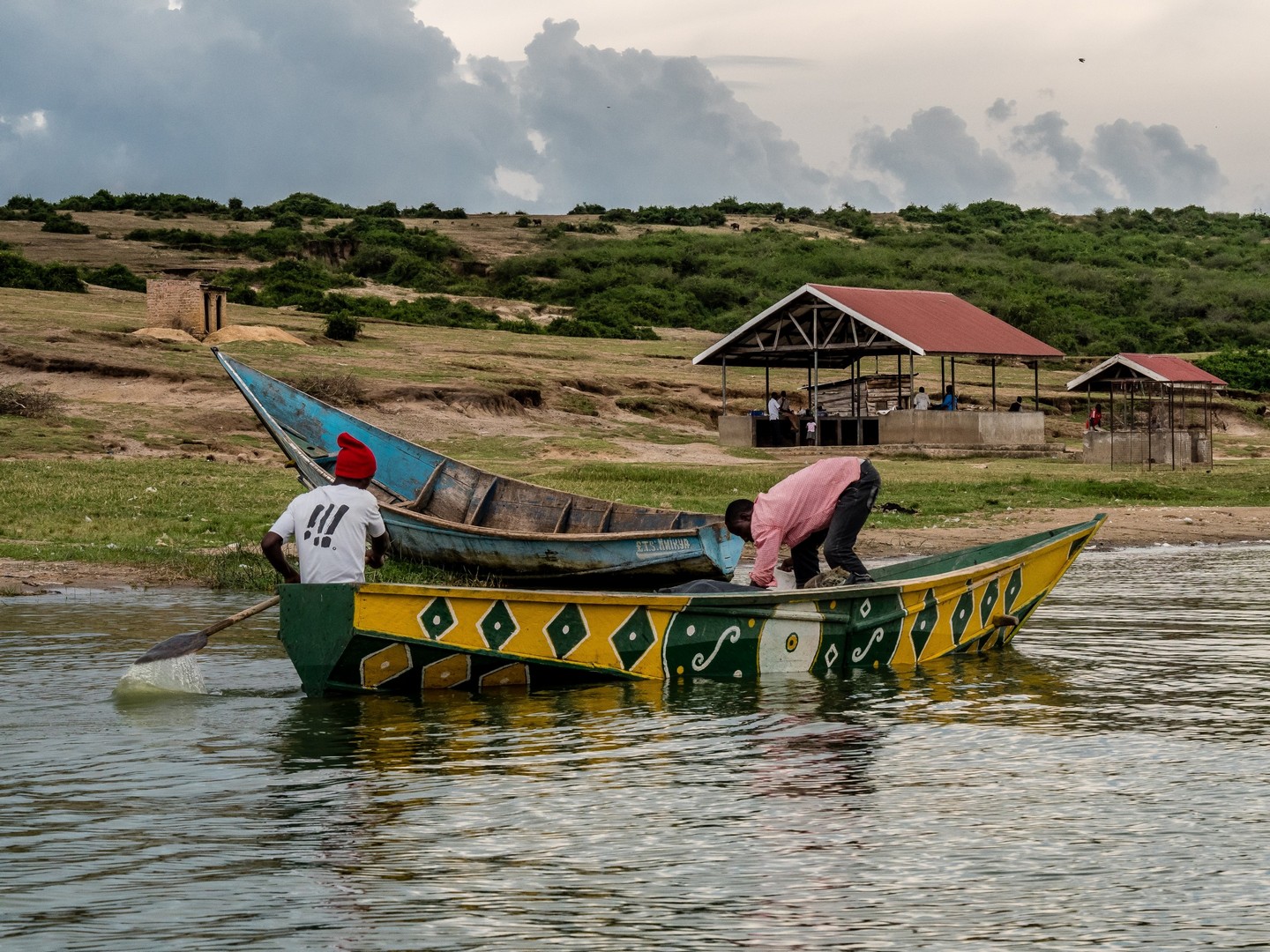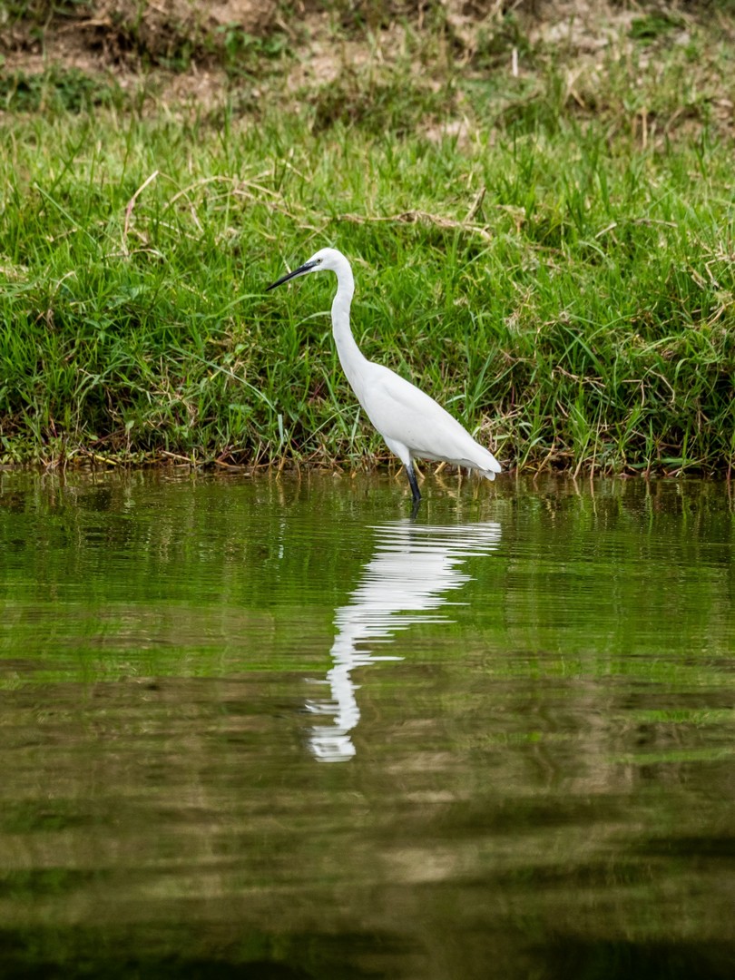 En bout de course, avant de faire demi-tour, nous naviguons près du Kizanga Fishing Village. Et nous tombons bien : la fin de l’après-midi, c’est l’heure pour les hommes de mettre les pirogues à l’eau et c’est bientôt tout un petit ballet de bois colorés qui envahit le chenal. Le bateau s’attarde un petit peu et je peux observer de loin le village qui s’anime. J’ai une bonne envie qu’on nous fasse débarquer mais non, nous finissons par faire demi-tour. Sur le chemin du retour, je laisse tomber les photos. Je n’ai qu’une envie après avoir passé tant de temps aux aguets pour photographier les animaux : lâcher prise ! Je pose ma tête contre l’appuie fenêtre et me laisse hypnotiser par le mouvement des vagues et le ronronnement du moteur. Enfin, mon esprit ne tarde pas à vagabonder, au gré du courant du chenal.