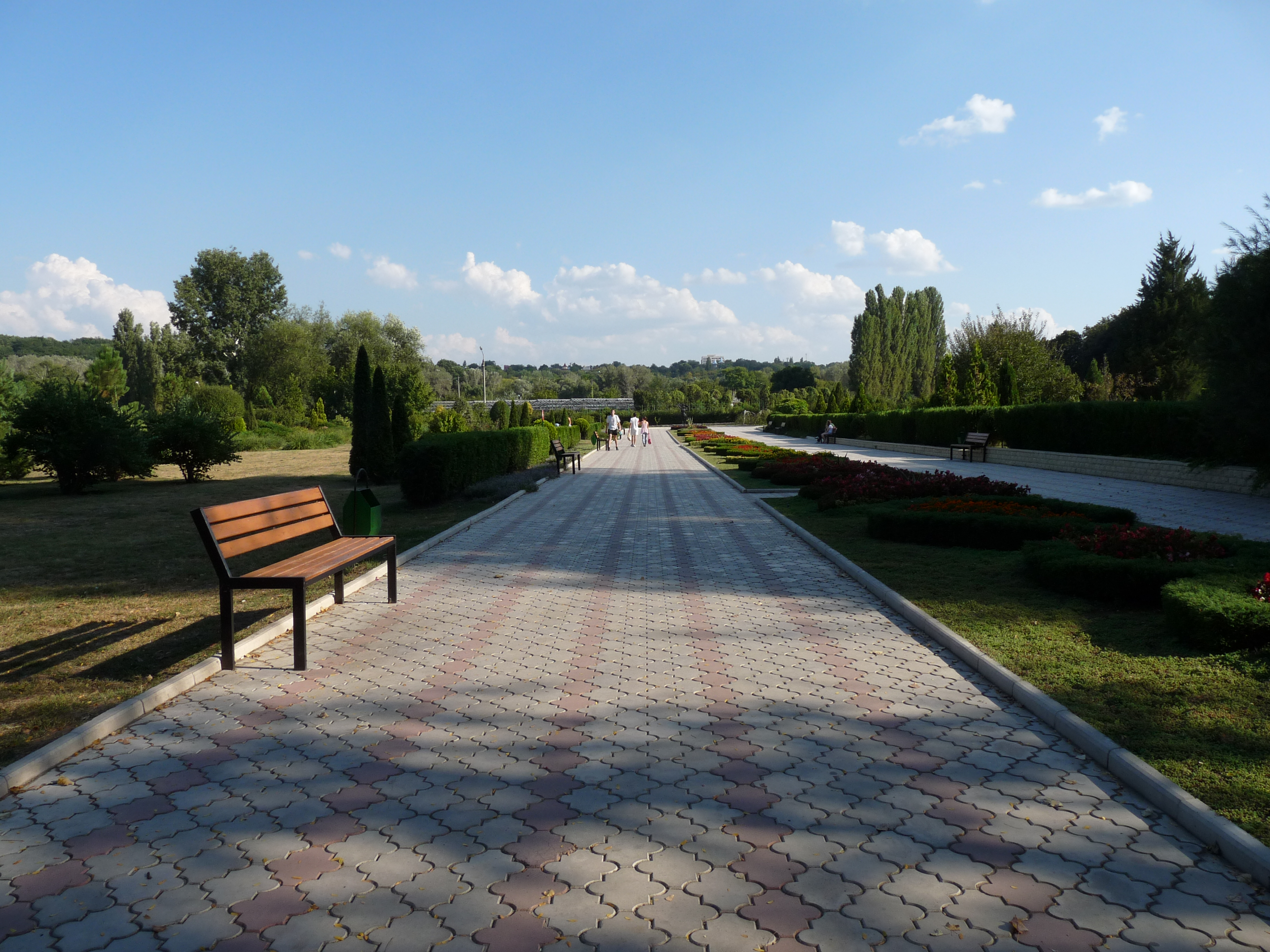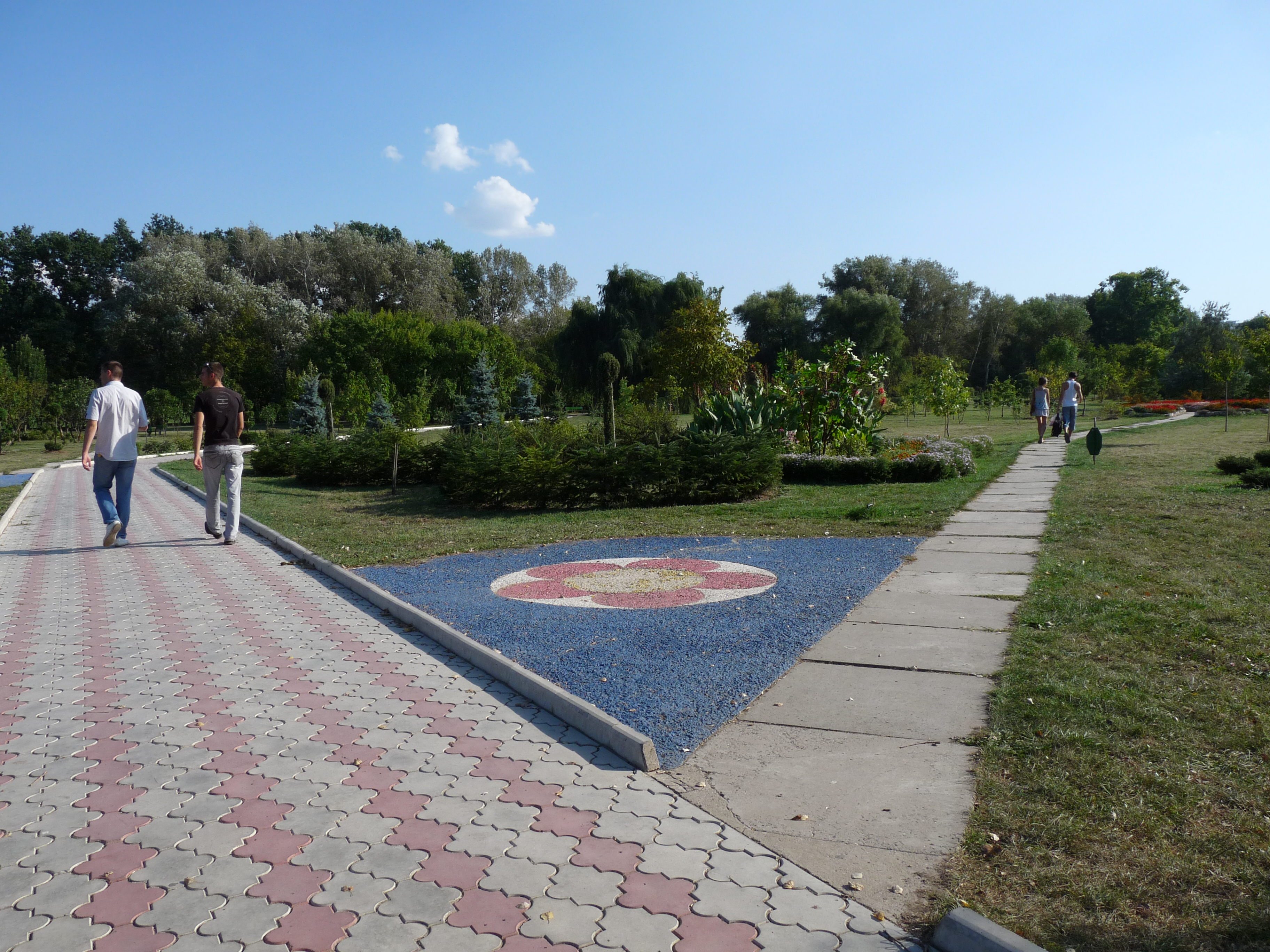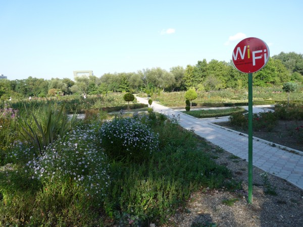 Au lieu d’aller au Botanique, tous les deux décident de m’emmener me balader dans un autre parc, le Dendrariu. Pour y entrer, il faut s’acquitter de quelques lei mais ce parc immense contient des étangs, une roseraie… et l’inévitable wi-fi gratuit ! En se promenant dans les allées, Gerhard raconte sa visite au Le Musée National d’Ethnographie et d’Histoire Naturelle de Chisinau. Kristina y a une amie et elle a organisé une petite visite pour Gerhard et une paire d’autres copines. « C’était intéressant, mais un peu triste… Le musée est assez vieillot et il n’y avait personne d’autre que nous. Déprimant, en fait ! » Un peu comme si ce musée était oublié. Il n’y a pas assez de touristes visitant la Moldavie et soit les Moldaves ne s’y intéressent pas, soit ils n’ont pas les moyens à consacrer à une visite. Après la ballade, Gerhard rentre chez lui car le lendemain sera son premier jour de boulot et Kristina et moi allons manger à la « Piacinte », une chaîne de restaurants de cuisine moldave. Je laisse Kristina choisir : Mamaliga (une sorte de polenta commune aux roumains et Moldaves et des piacinte, sortes de qu’on peut fourrer sucré ou sale (les miennes étaient à la cerise) et comme boisson, du vin moldave et… de la compot, boisson prisée en Russie et toute l’Europe orientale qui est une sorte d’eau où se sont infusés des fruits. Pas désagréable du tout.