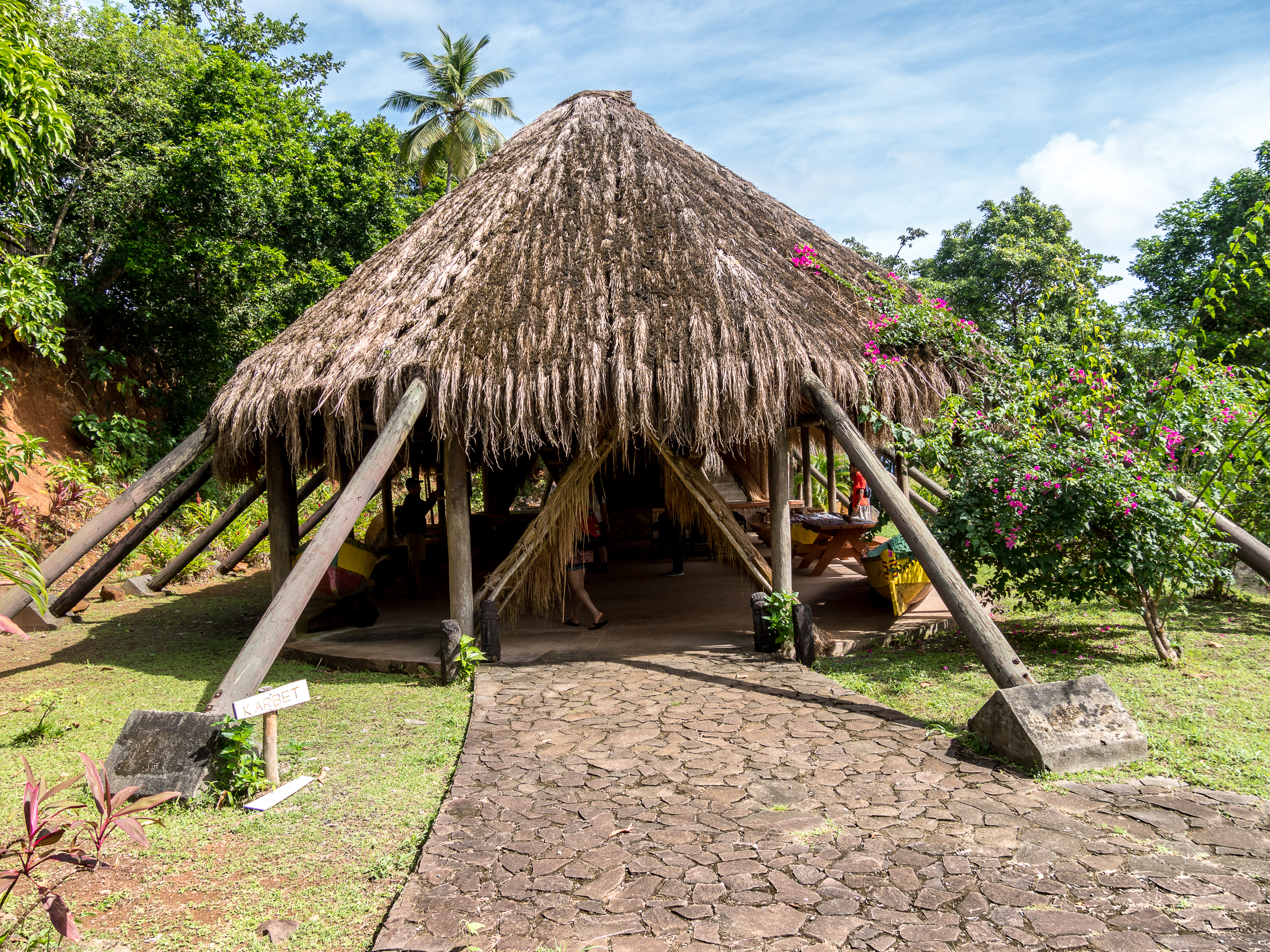 La première chose que l’on remarque quand on entre dans le territoire kalinago, c’est que les visages des habitants changent pour prendre les traits des Amérindiens. Mais il y a aussi beaucoup de mélange avec les Dominiquais descendant d’esclaves, surtout avec les « maroons », les esclaves échappés qui s’étaient réfugiés dans l’intérieur de l’île. Après avoir traversé plusieurs villages, nous arrivons au Kalinago Barana Autê. A la fois village culturel, centre d’interprétation et musée vivant de la culture kalinago. Il se parcourt avec un guide qui vous donnera des clés pour comprendre ce peuple, même si celui-ci est en grande partie acculturé (à part quelques mots, la langue des Kalinagos n’est plus parlée) et créolisée (il n’existe plus d’habitants « 100 % Kalinago »). C’est donc un peuple menacé, mais fier, que nous rencontrons là-bas.
