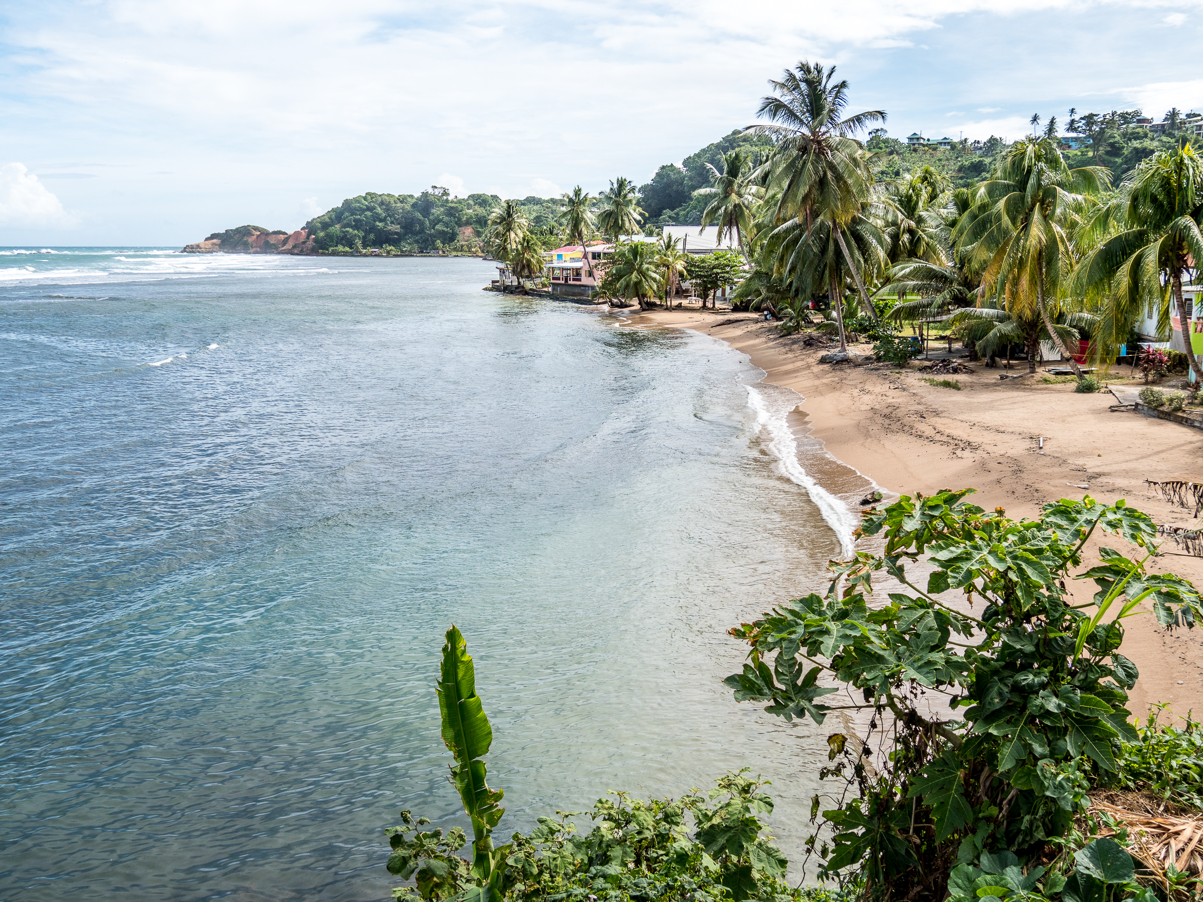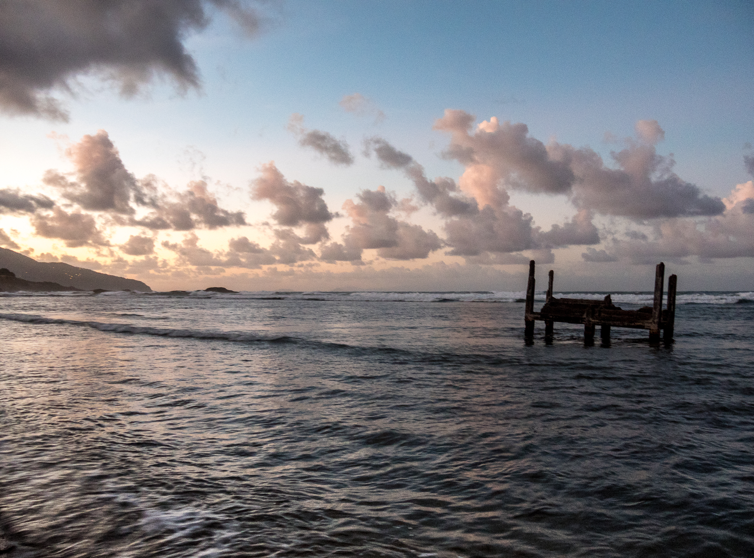 Pourtant, la plage est une déception… d’habitude, j’aime beaucoup les plages de sable noir… elles ont un petit air de mystère et au soleil, les grains brillent comme de minuscules diamants sombres. Sauf que la plage est à présent très érodée et mal en point, du moins sur un de ses côtés. Et plutôt que fascinante, elle a juste l’air d’avoir été maltraitée par les assauts des éléments. Couplez à cela la météo qui se gâte de plus en plus, nous ne nous sommes pas attardées à Number One et c’est sous une pluie battante que nous allons attendre le mini-bus pour rentrer à Calibishie.