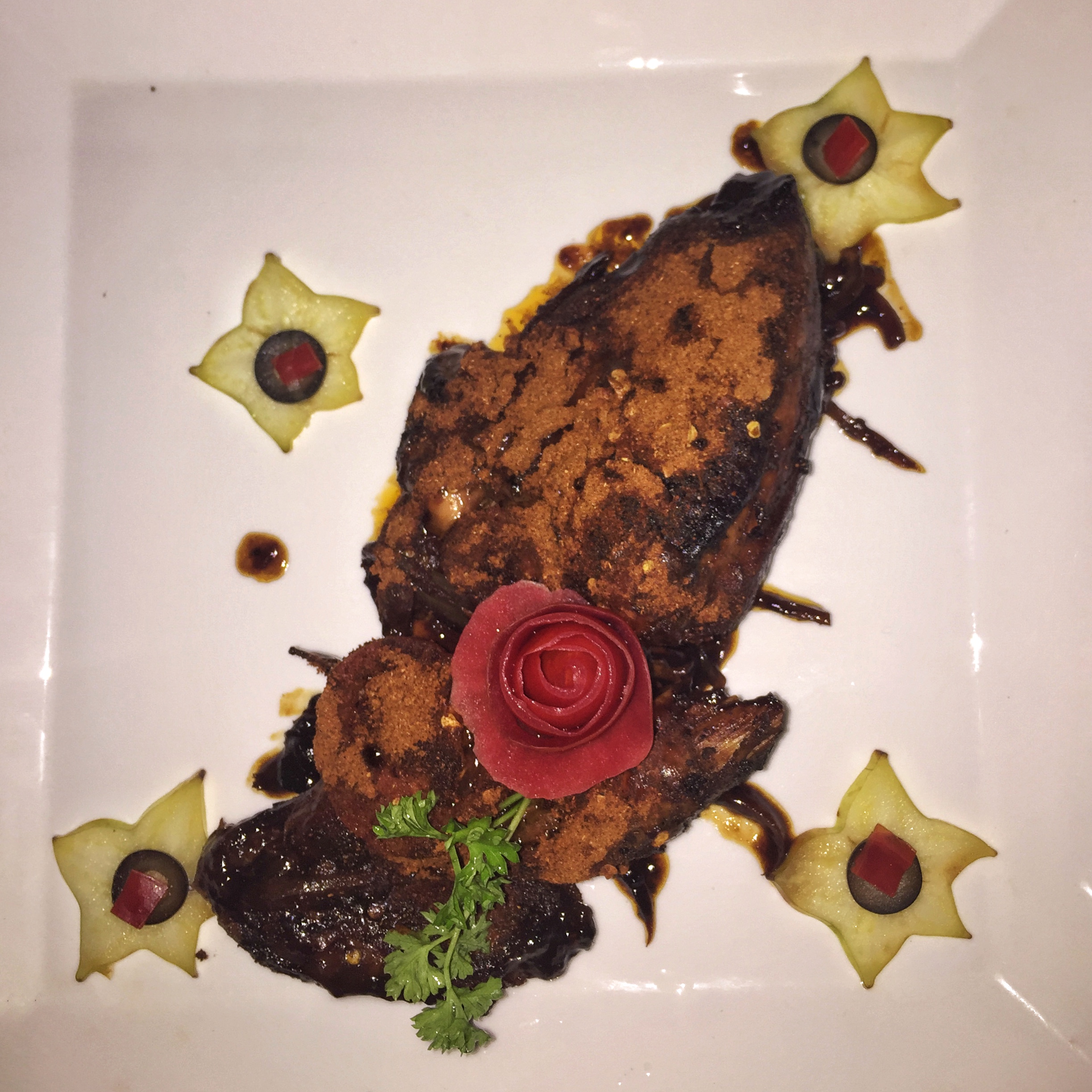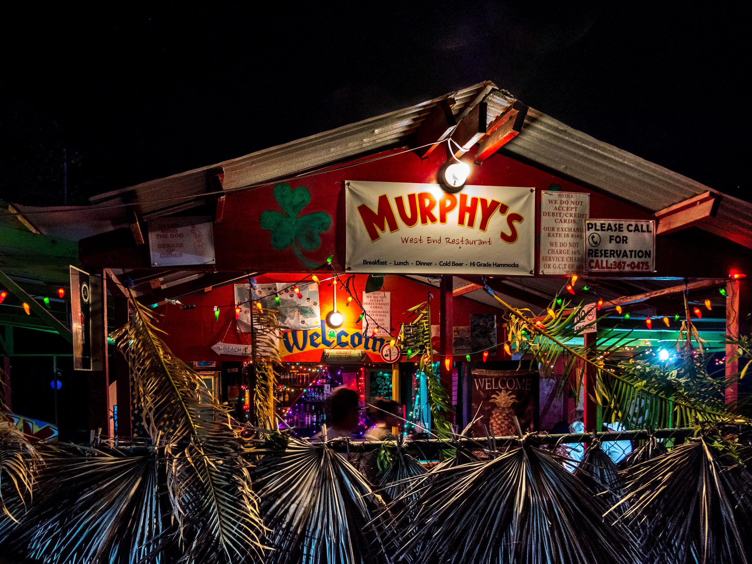 Murphy’s : Lui aussi situé à West End, Murphy’s est un peu plus sophistiqué que Shark’s. Avec ses loupiotes et son toit en taule, ça a l’air d’une garrotte mais en fait, il y a des artistes en cuisine. Mes brochettes arrivent avec une rose faite en pelure de tomates et des caramboles sur lesquelles sont disposées des olives. Original !