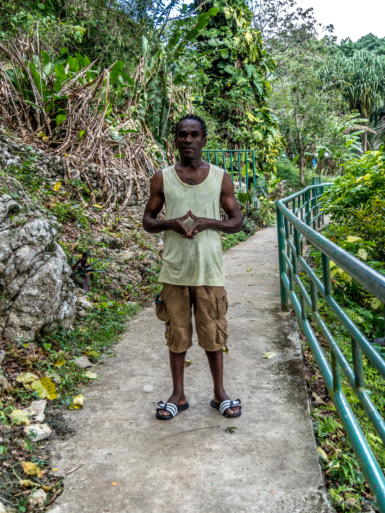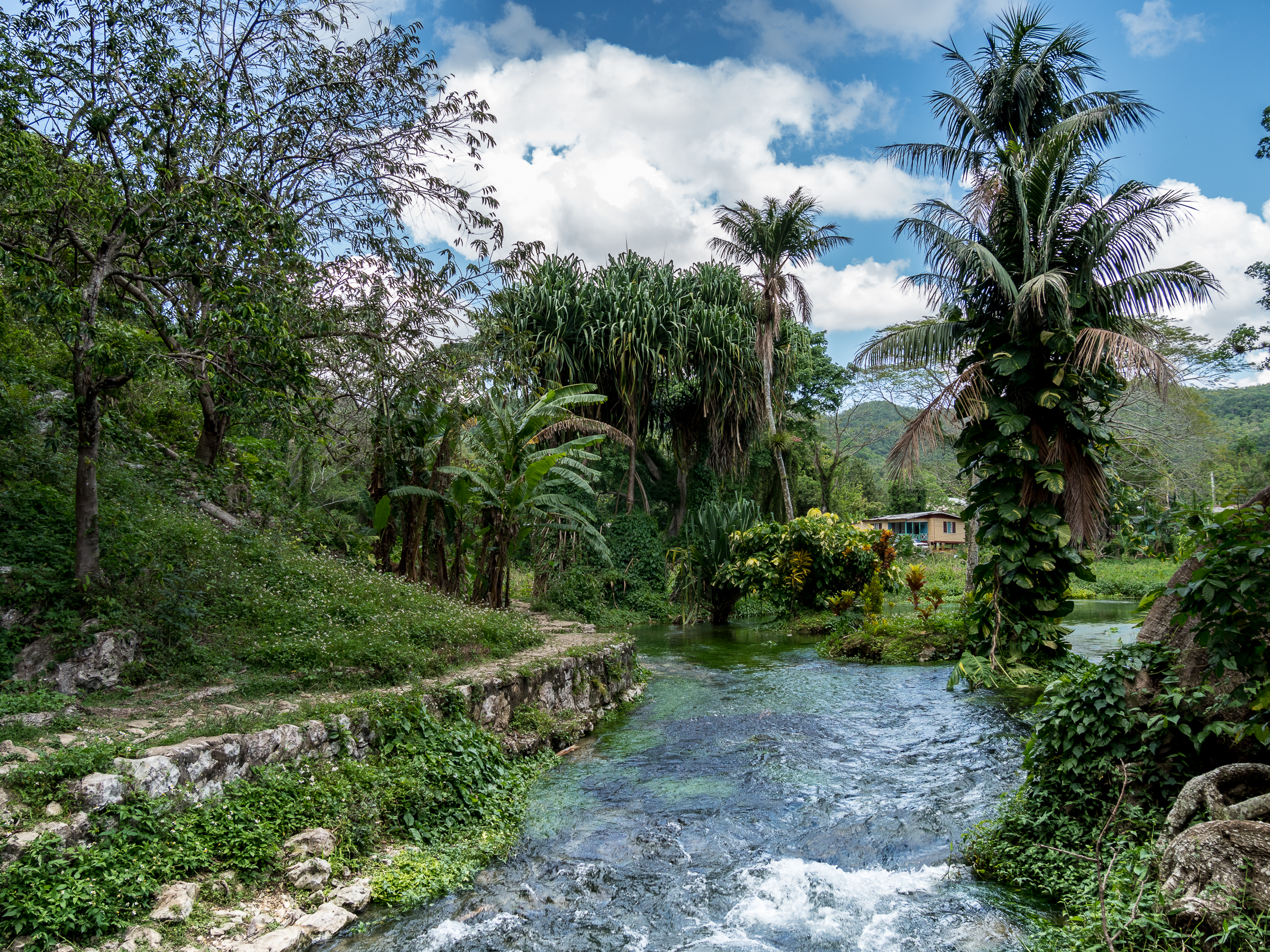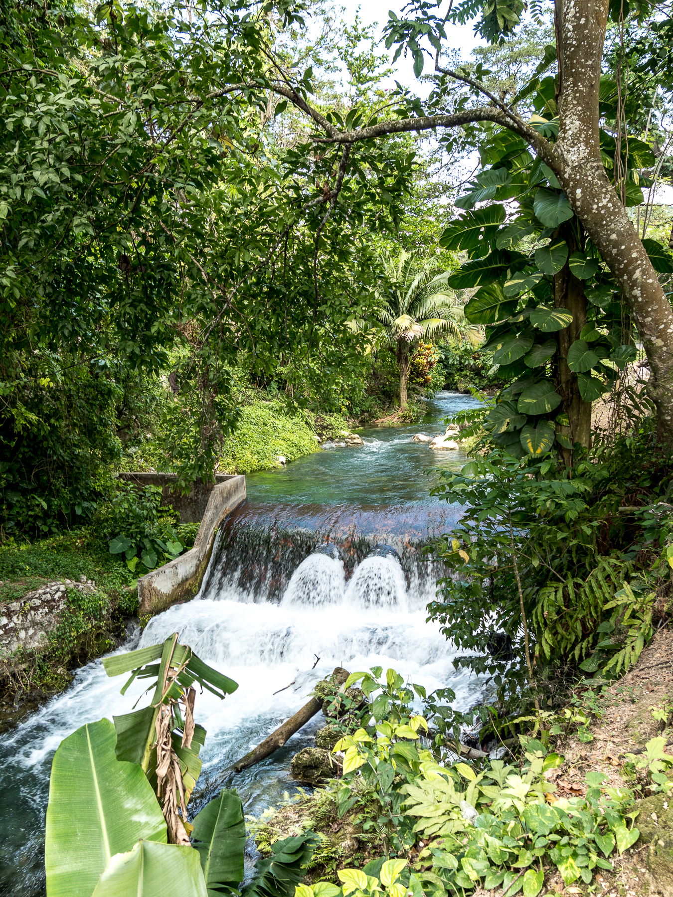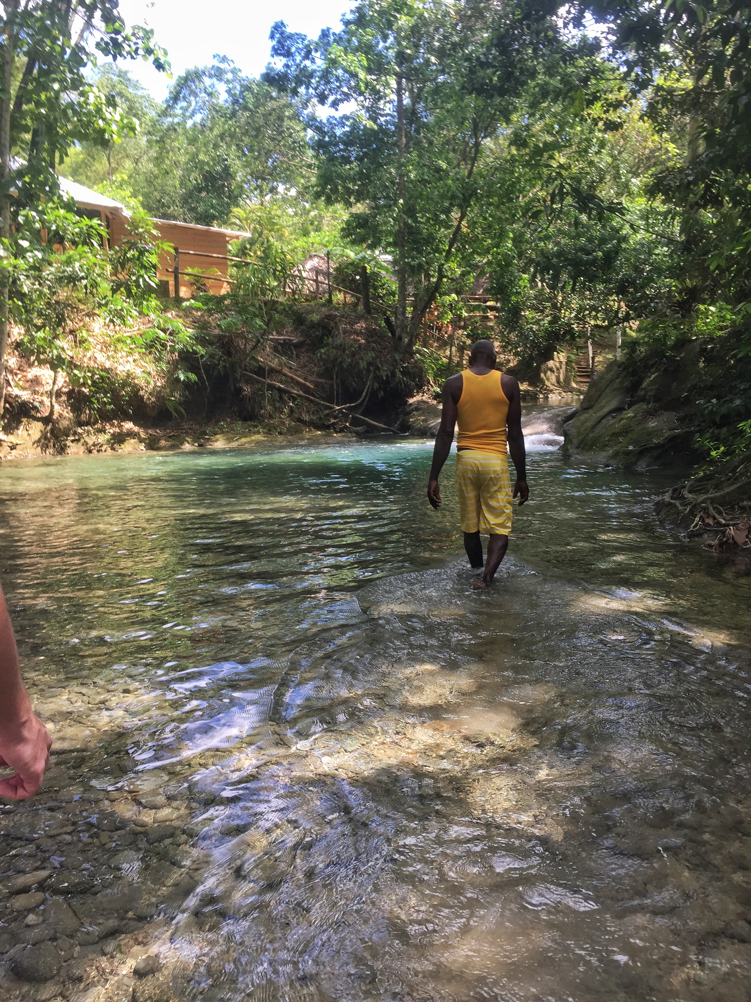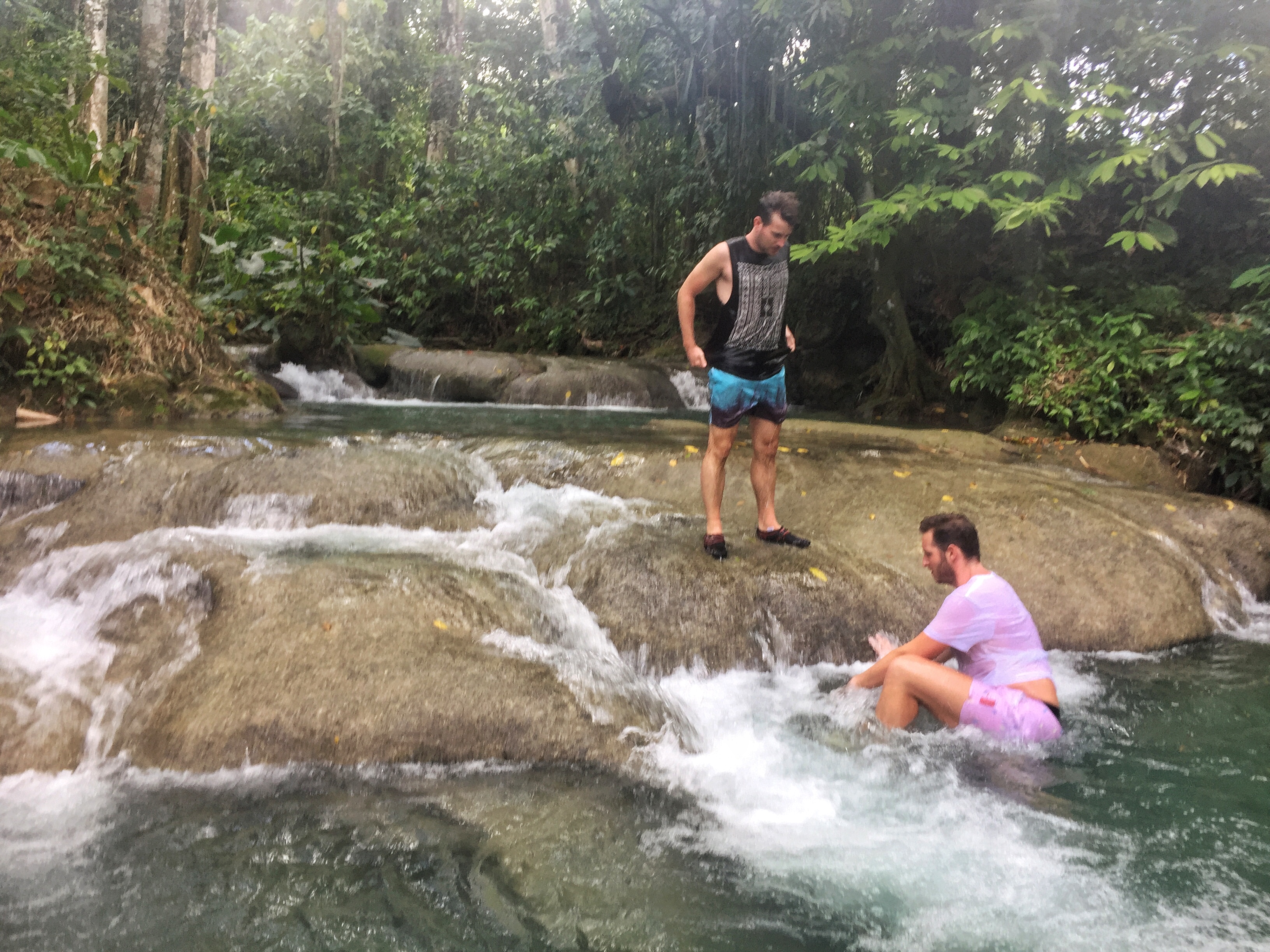 En Jamaïque, il n’y a pas que la plage : l’intérieur de l’île avec ses montagnes vertes et ses rivières n’attendent que d’être explorées. Le lendemain de notre sortie en mer, c’est cette Jamaïque là que nous allons découvrir : en route pour Mayfield Falls ! Et que va t’on y faire ? De l’aqua-rando ! C’est à dire que l’on va remonter une rivière et ses mini-cascades dans l’eau ! Petit conseil préalable : si nous n’avez pas de chaussures waterproof, n’hésitez pas à louer les chaussons et sandales (7 USD) car Lectrice, Lecteur, tu risquerais de ruiner tes chaussures des randos pour de bon ! L’aqua-randi, c’est une manière bien agréable de profiter à fond d’un endroit enchanteur : on marche dans l’eau, on nage de piscines en piscines sous une voûte verte faite de bambous géants, de palmiers et autres plantes tropicales. Un vrai bonheur ! Et pour se remettre de ses émotions, n’hésitez pas à prendre le déjeuner au restaurant de Mayfield Falls (le poulet au coco est un régal) !