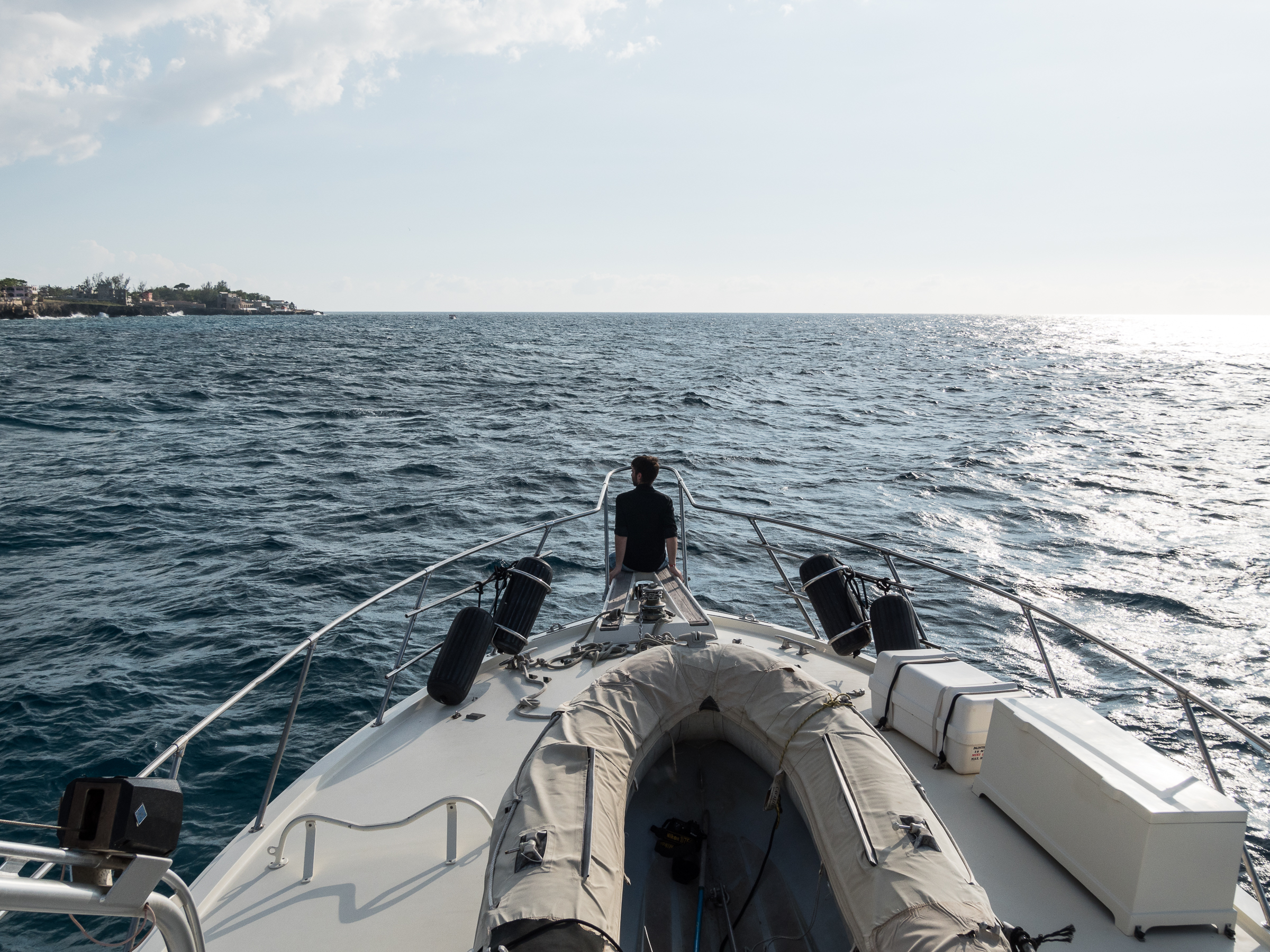 Le mieux pour profiter de la magnifique côte de Négril, c’est de faire une balade en bateau et nous voilà parti à bords d’un mini-yacht pour une sortie en mer ! On va le dire tout de suite, j’ai toujours voulu une fois dans ma vie naviguer sur un yacht, histoire de voir. Un mini-yacht, ça s’en rapproche ! Certes, il n’était pas très luxueux mais avait un vrai salon et deux chambres. Et je me verrais bien parcourir toutes les Antilles à son bord. Détail amusant, à l’arrière du bateau, une chaise de dentiste a été installée et customisée pour en faire un super-siège de pêcheur ! Le lieu idéal pour déguster sa Red Stripe au soleil. BLESS !