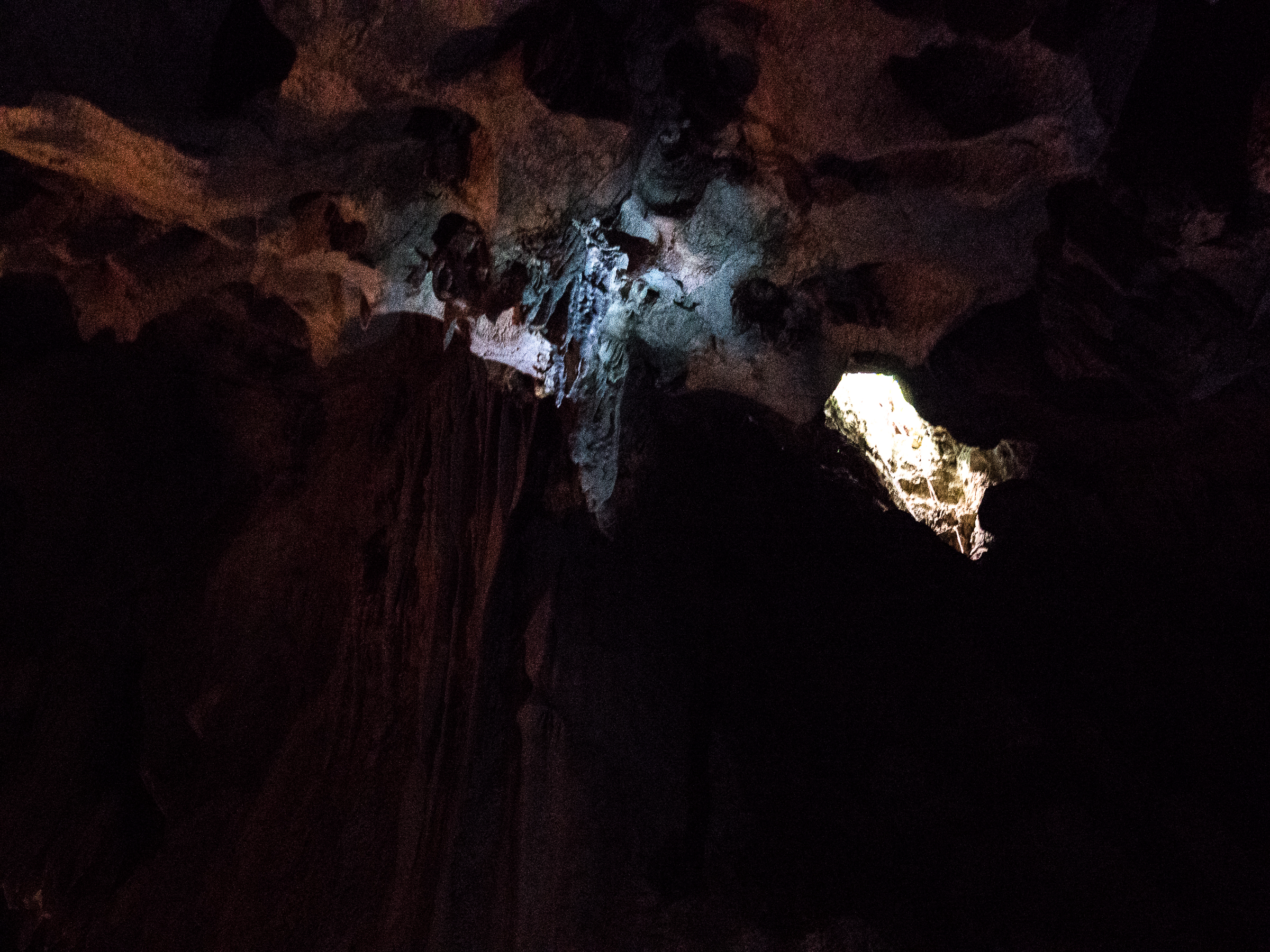 Un autre endroit qui vaut le détour se trouve dans la Paroisse de Westmoreland. C’est Colin qui sera notre guide. Un grand type a l’air sérieux mais qui a côté jouette que nous allons découvrir… Roaring River Park est le genre d’endroit idyllique de l’intérieur des îles des Caraïbes. Un endroit d’un vert étincelant, sous un ciel bleu orné de ces gros nuages que l’on ne peut voit que sous les Tropiques, où coule une rivière et la vie, doucement. Nous sommes les seuls visiteurs et notre groupe a l’air d’attirer l’attention. C’est ici que la rivière sort de terre après un parcours dans des caves de calcaire. Colin va nous guider dans le noir, avec une simple lampe torche, de salles en salles, illuminant les formations calcaires et cristallines auxquels les habitants ont donné des noms comme : le crocodile, la princesse indienne ou la tortue. Et comme final de la visite, Colin nous fait un petit saut dans une grotte noire que la rivière traverse quelques mètres plus bas.