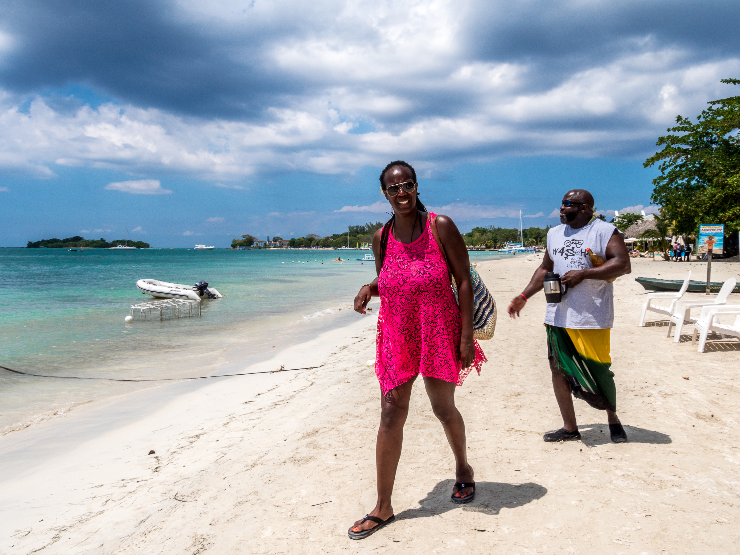 La principale attraction de Négril, ce sont ses plages. A côté de Bloody Bay, où se situe le Riu Negril, on trouve la plus célèbre plage de Jamaïque : 7 Miles Beach, une des plus belles des Caraïbes et on comprend pourquoi elle a cette réputation : sur cette très longue plage, le sable est blanc, poudreux, l’eau est d’un turquoise lumineux… pas étonnant que de nombreux resorts s’y soient installés (la plage reste publique). Pendant que les vacanciers se dorent la pilule, les vendeurs de plage se succèdent, chacun avec sa marchandise bien particulière : lunettes de soleil, draps de plage, sculptures, chapeaux, T-shirts, ganja… Un simple non et un sourire suffisent « No problem, man ! «