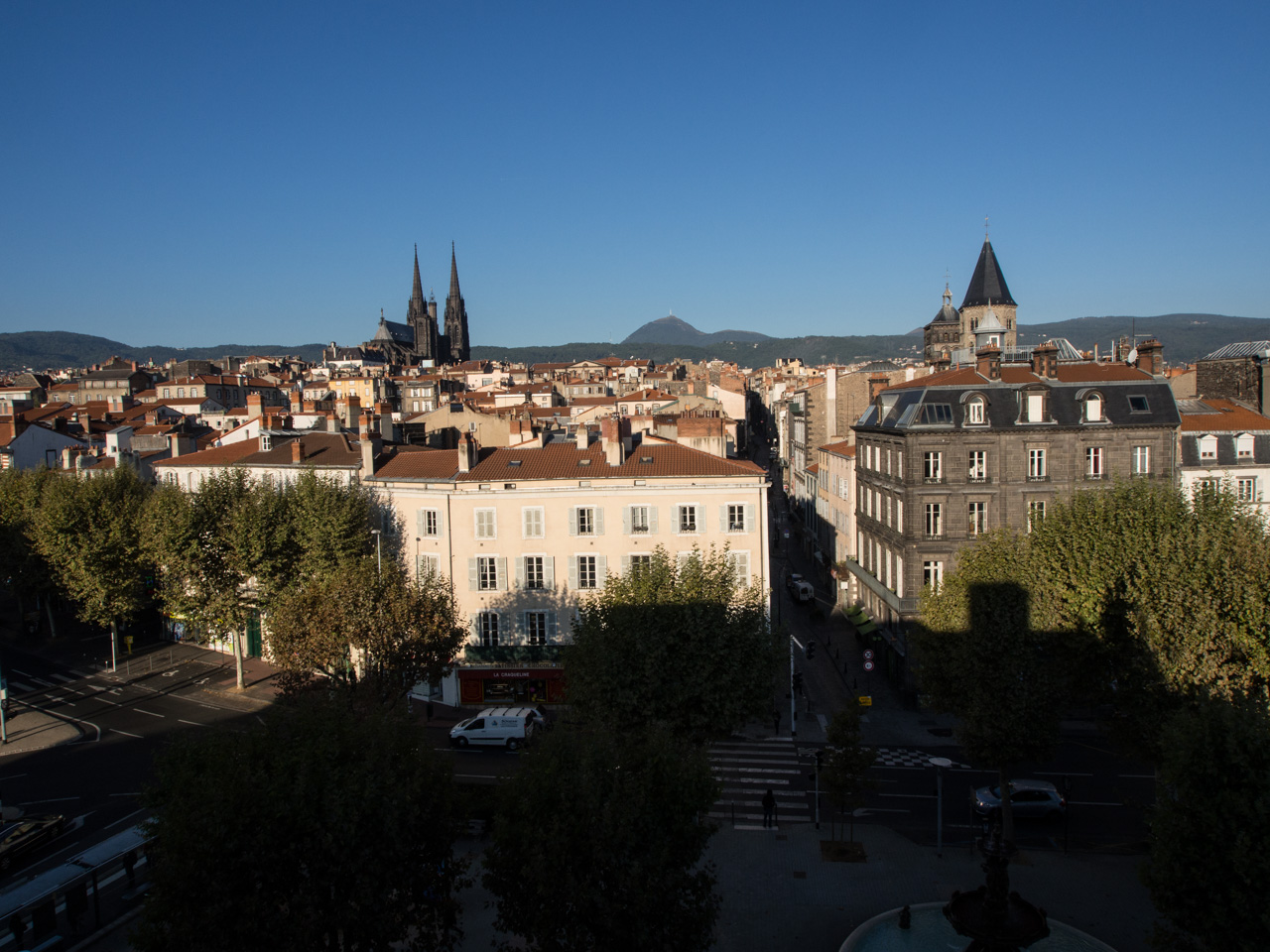 Deux éléments dominent le paysage de Clermont : le premier, c’est le Puy de Dôme, cet ancien volcan au sommet si caractéristique est une présence amie des Clermontois. Dès que la vue est un peu dégagée (par la météo, et par l’habitat), il est là, toujours fidèle.