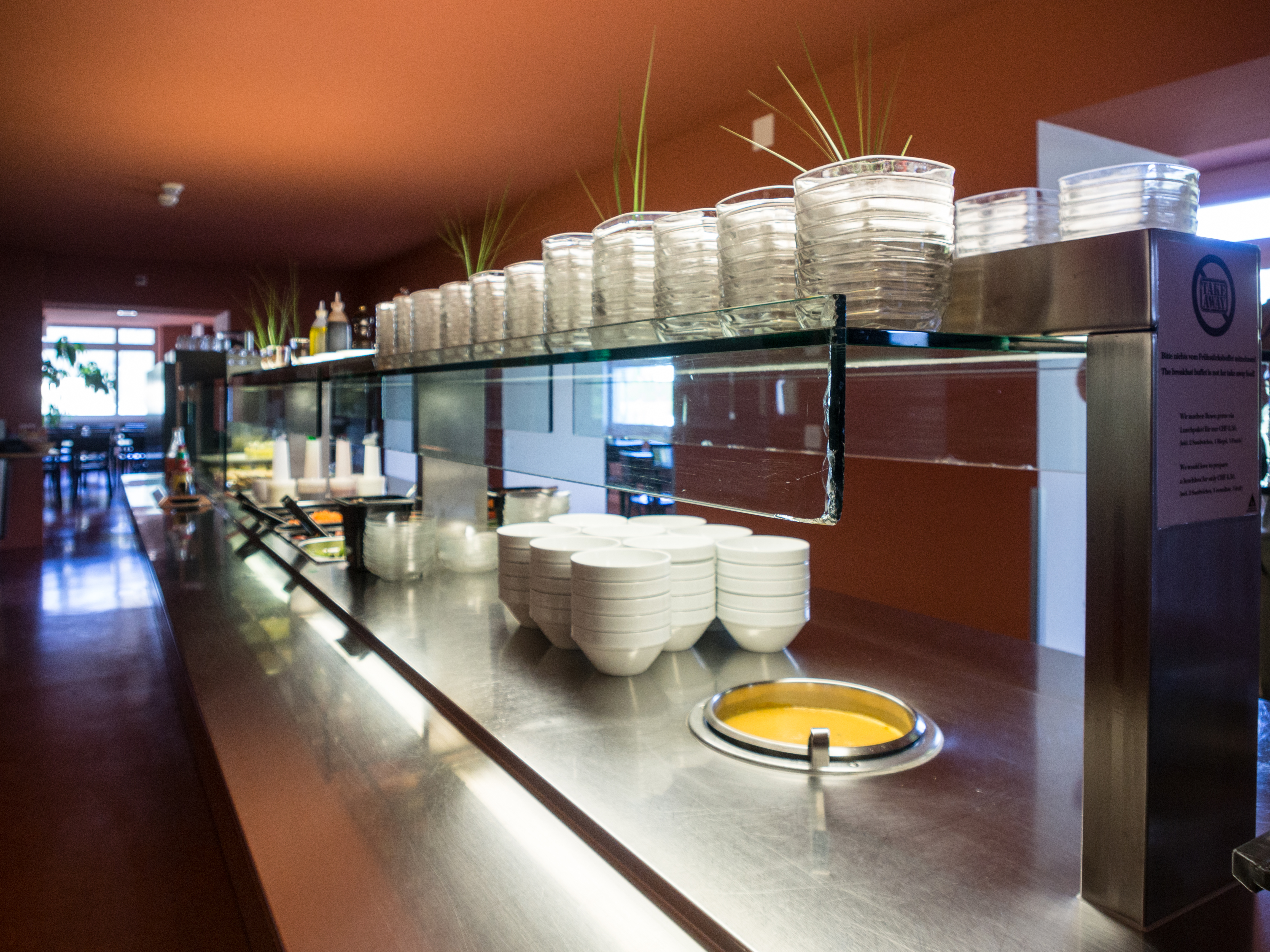 Certes, le but de cette expérience est de garder son budget sous contrôle... si tu restes à l'auberge, lectrice, lecteur, sache que le restaurant offre un repas 4 services (soupe, entrée, plat dessert) pour 18 francs suisses (pas de cuisine à l'auberge) mais si tu as envie de te faire plaisir, pourquoi ne pas prendre une table à Extrablatt. Ne te laisse pas effrayer par le centre de conférence juste à côté. L'endroit est sympa (avec une plongée dans les années Gatsby) et une bien agréable terrasse. Au menu ? Une cuisine du marché, fraîche et inventive avec des classiques comme la viande des grisons, mais servie en petit sandwiches ou un rösti plus léger. Une belle adresse.