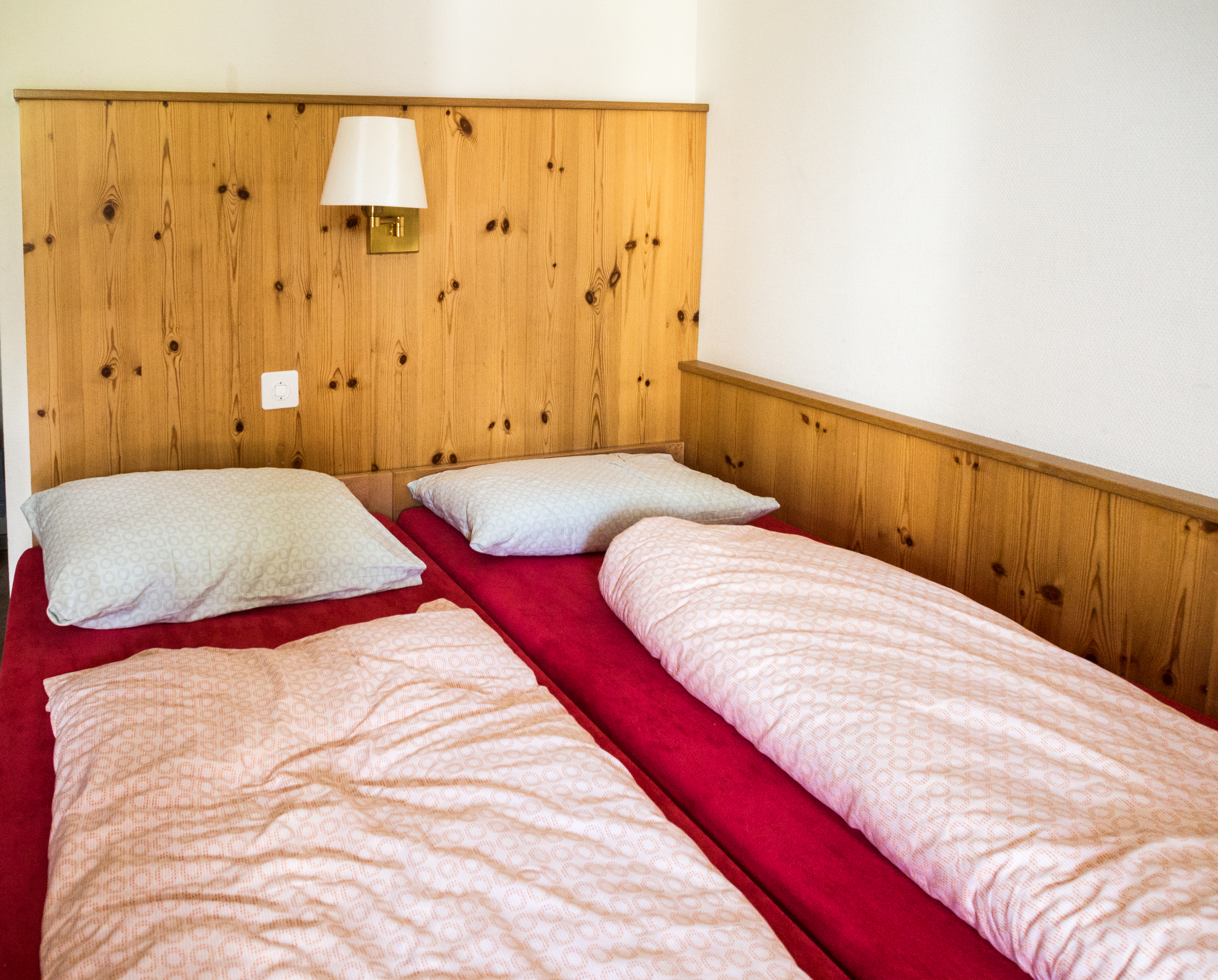 C'est dans les auberges du réseau Youth Hostels International que nous séjournerons et toutes répondent aux mêmes standards et fonctionnent plus ou moins de la même façon, selon les tailles. J'y reviendrai à la conclusion de ce séjour. Le « Davos Youthpalace » mérite bien son nom : cet ancien sanatorium est juste immense et fait partie des bâtiments historiques de Davos, témoin du temps où une clientèle fortunée venait y retrouver la santé. De cette époque, il reste les vitraux de l'arrière de l'auberge. Pour le reste, tout a été modernisé : salle de jeu, bibliothèque, grand restaurant... rien ne manque. L'auberge est un peu excentrée et il faut monter un peu pour la rejoindre : la récompense, je l'apercevrais au moment de découvrir ma chambre !
