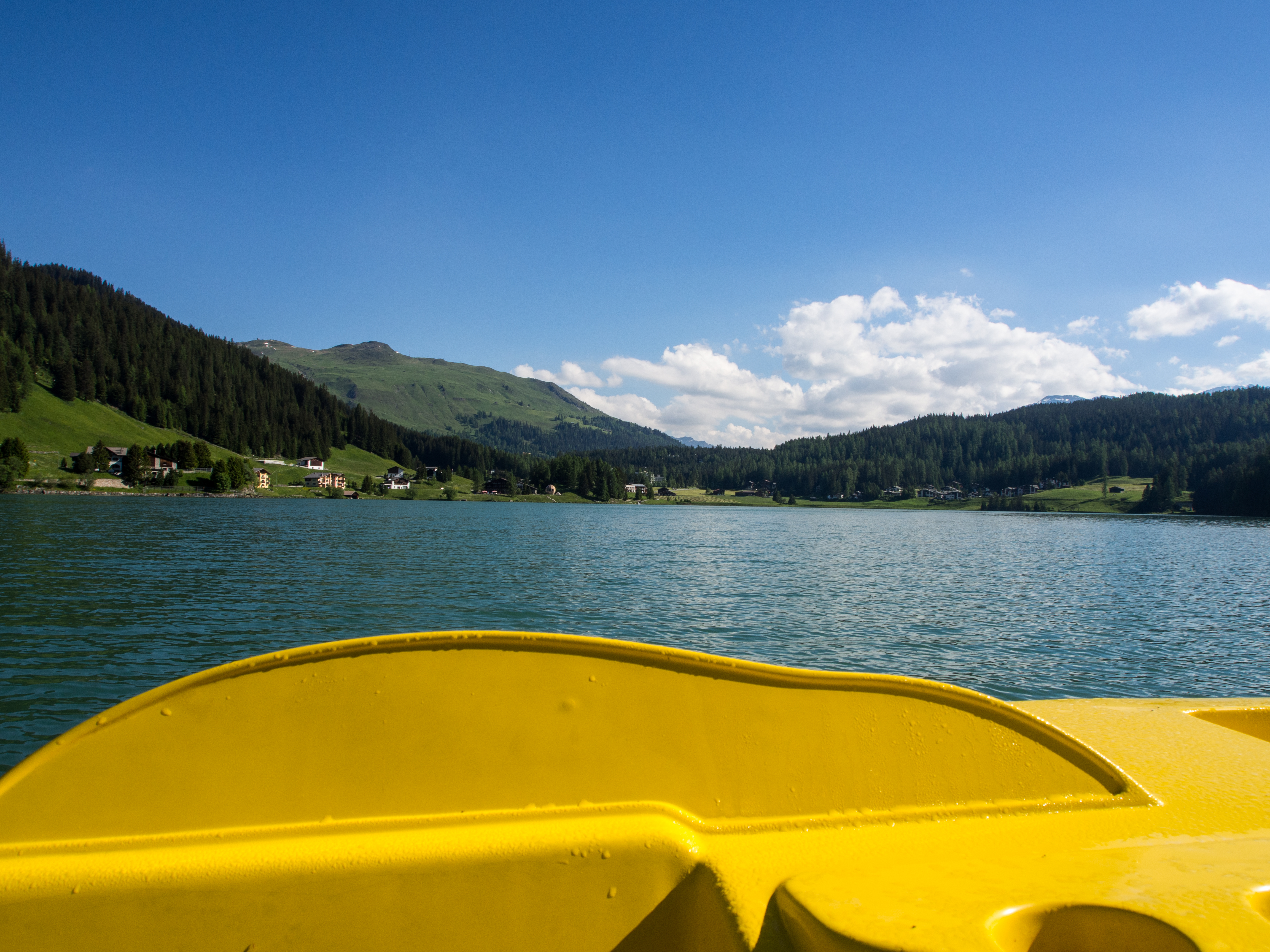 Davos a son petit lac. Je me demande s'il y a une ville de Suisse qui n'a pas le sien ! Il est bien là, étincelant sous le soleil. En faire le tour à pied est évidemment une chouette promenade mais pourquoi ne pas un peu retomber en enfance et faire du pédalo ? Et HOP ! On embarque dans les petits bateaux jaunes et à nous le... euh... grand large. C'est que le pédalo, c'est plus physique qu'on ne le croit, surtout quand il s'agit d'éviter de percuter un cygne ! Pour ceux qui ont envie de plus, le centre nautique permet aussi de faire de la voile et de la planche à voile. Les plus paresseux profiterons du lido et du bar, plutôt sympa.