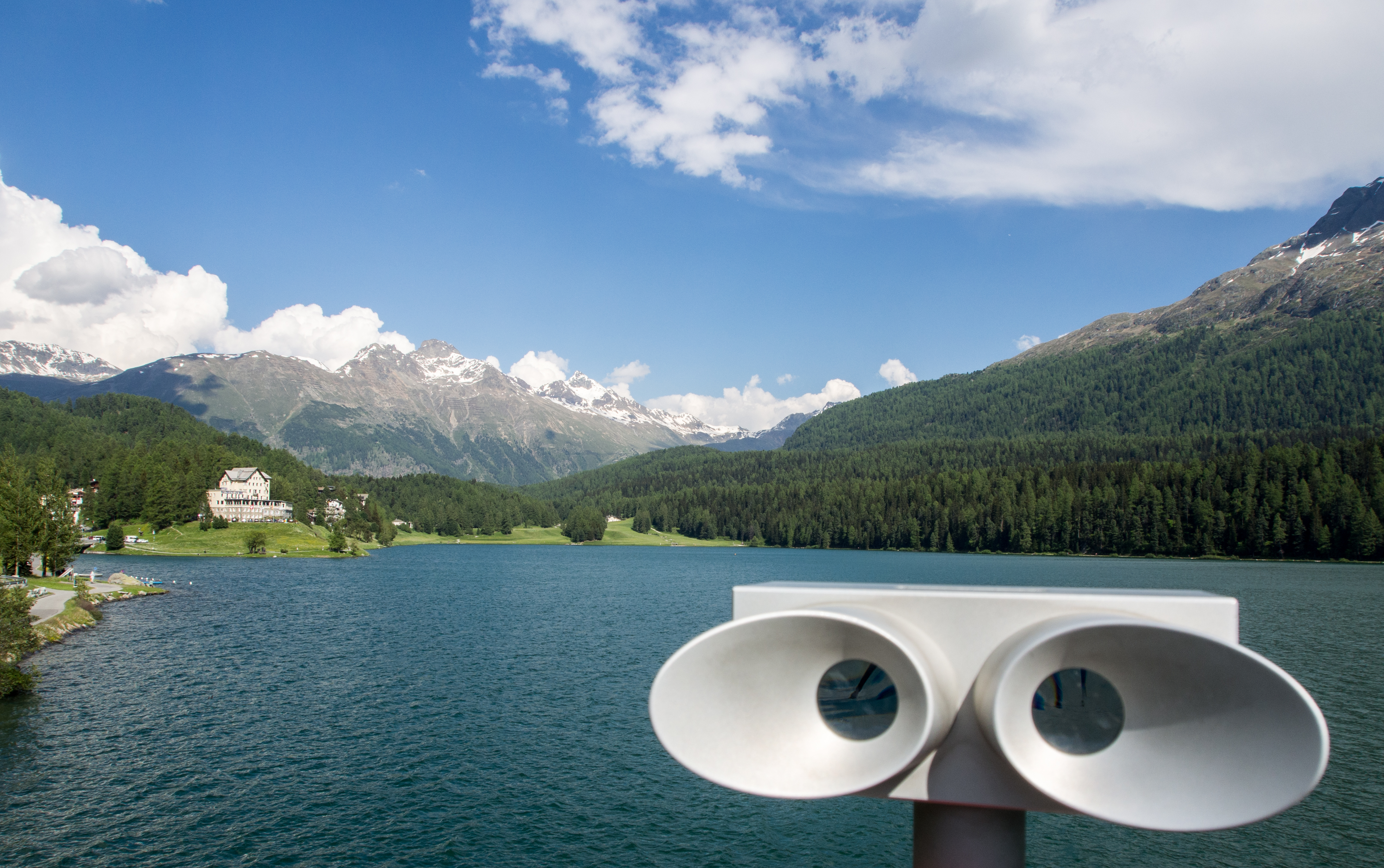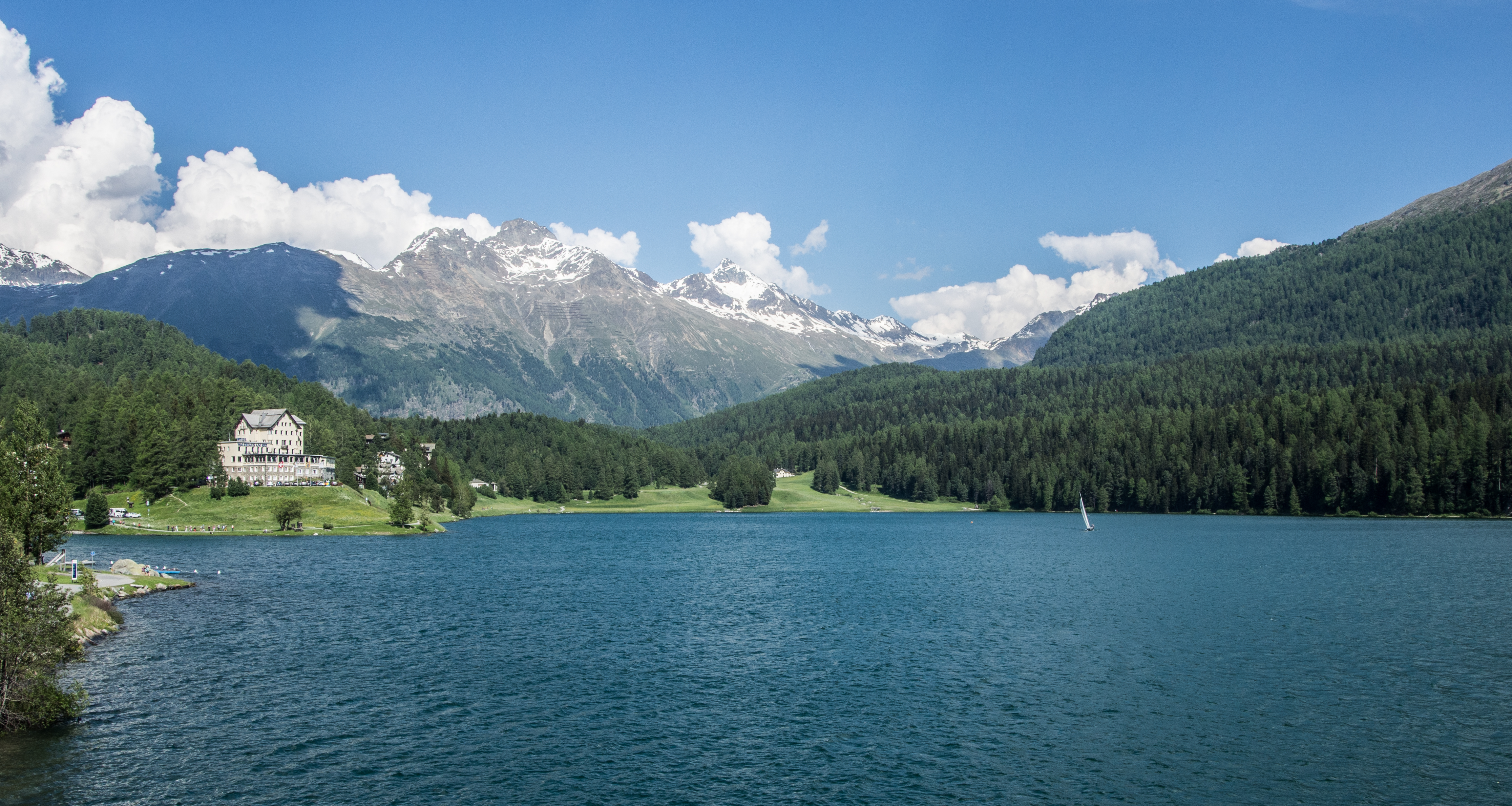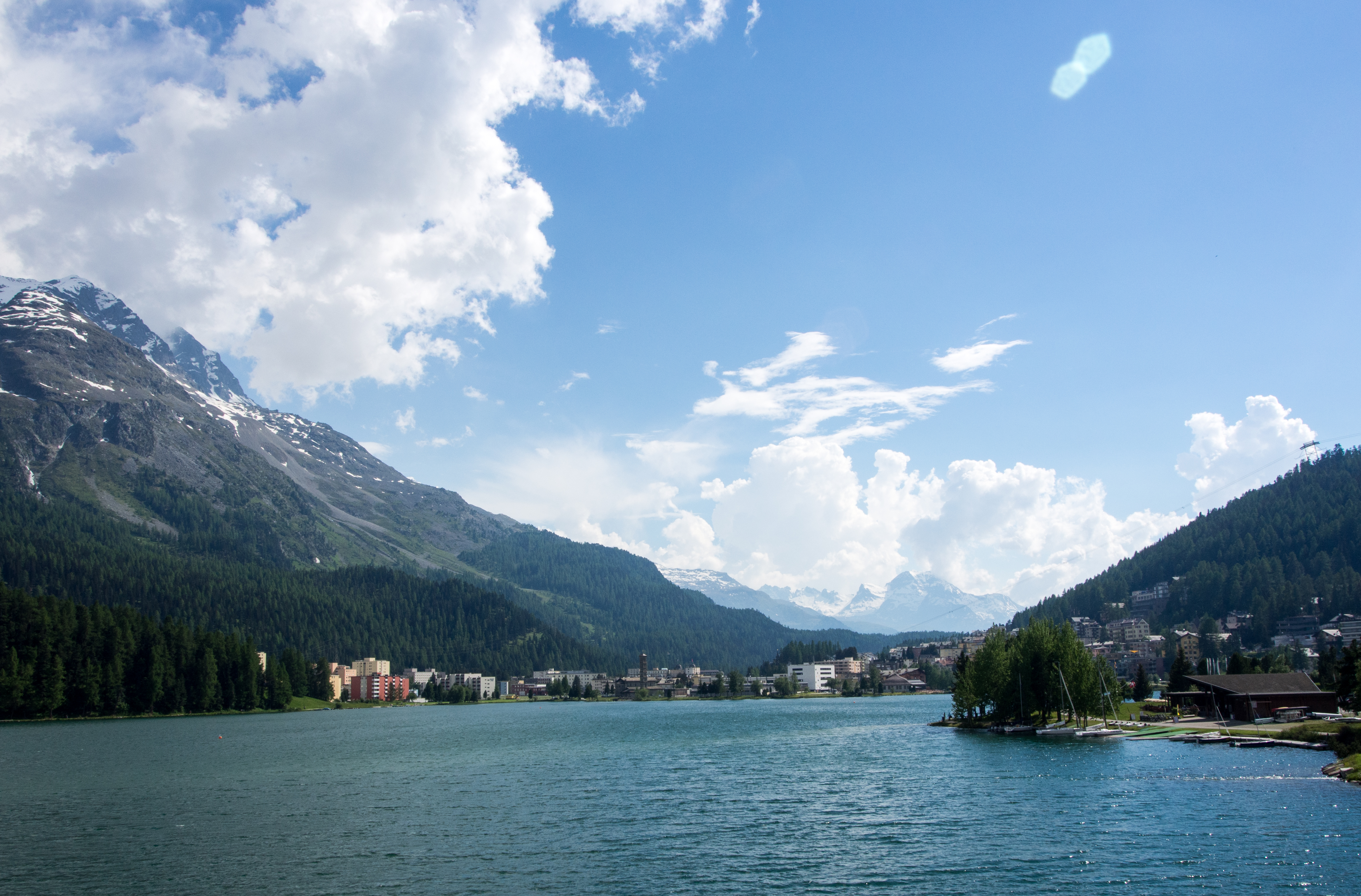 Pas étonnant que cette station soit si prisée. Premièrement, il y a le lac, tout au pied de la ville, d’un bleu étincelant. Avec les années, St. Moritz s’est étendu jusqu’à ses rives et St. Moritz-bad est presque un petit monde bien différent qui garde le souvenir de la belle époque, de ses palaces et de ses bains ! L’eau de source ferrugineuse qui y coule était connue depuis bien plus longtemps que sa neige ! On peut d’ailleurs aller la déguster gratuitement au Heil Bad St. Moritz, pas très loin du très stylé Hotel Kempiski.
