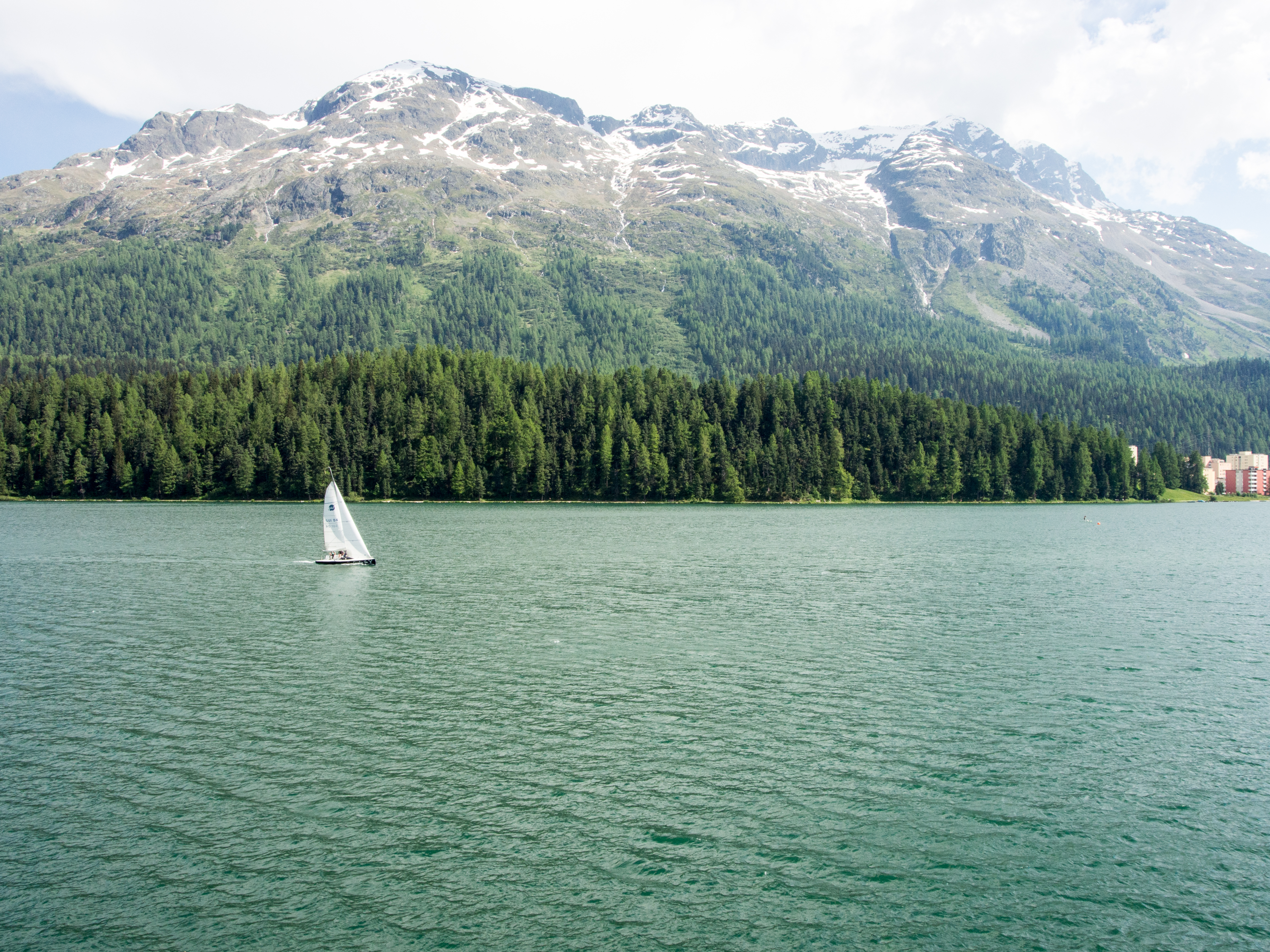 Dernière matinée dans mes Grisons, ce ne veut pas dire que nous allons simplement attendre l’heure de prendre le train, non, non… levés tôt (misère, un samedi), nous prenons le bus pour le joli village de Silvaplana, a à peu près vingt minutes de St. Moritz, toujours gratuitement avec la carte Mountain Railways Inclusive.