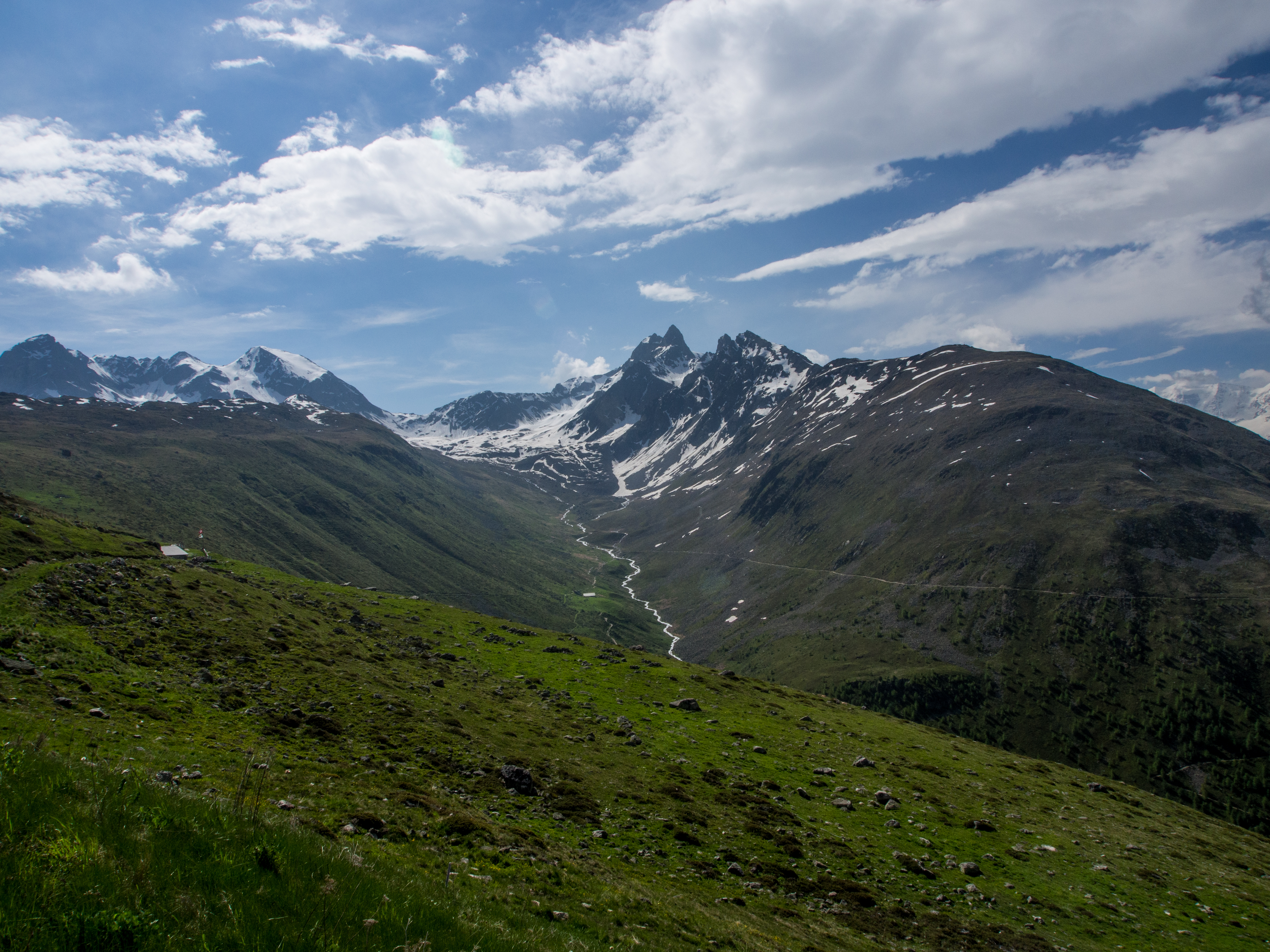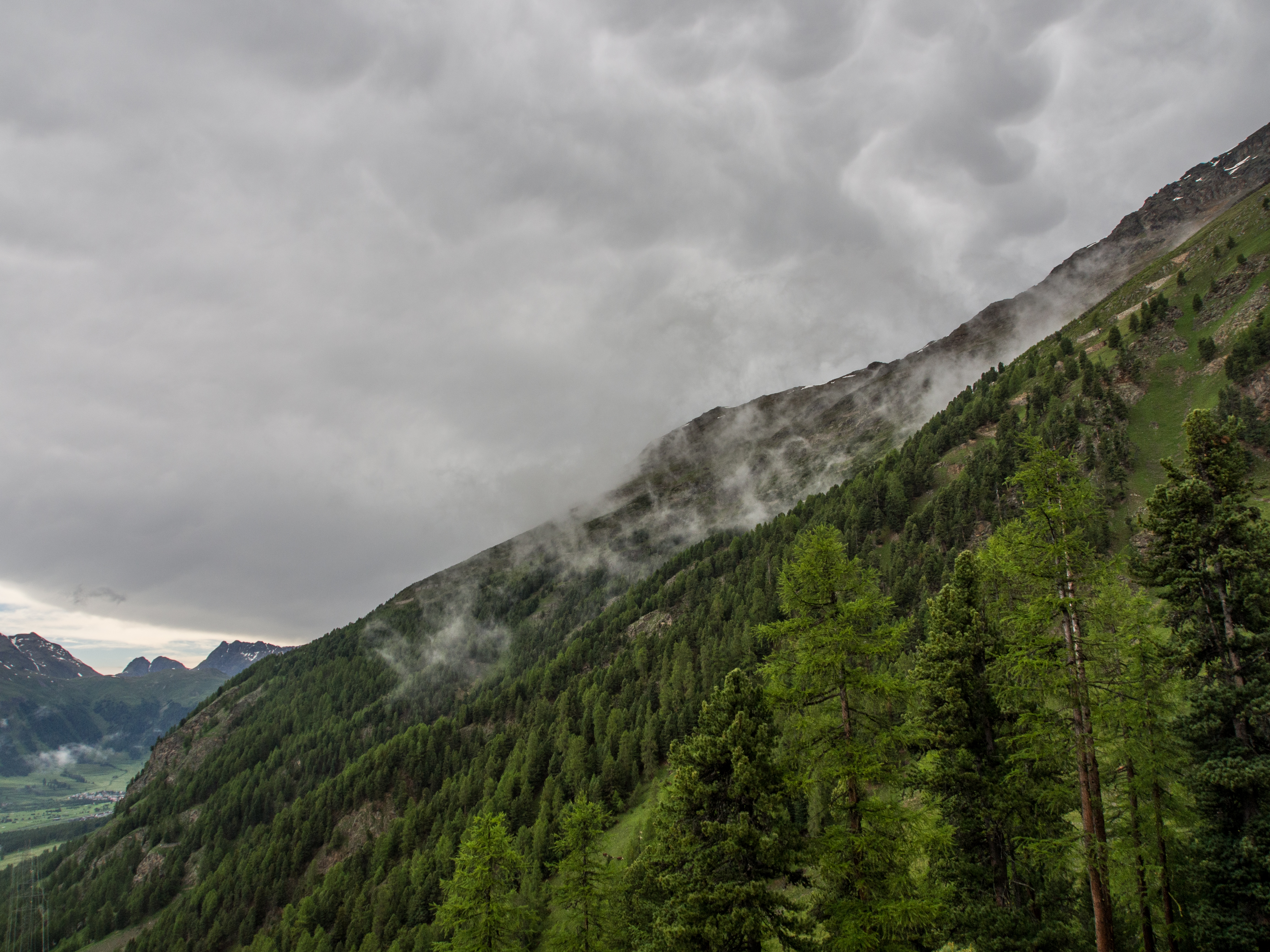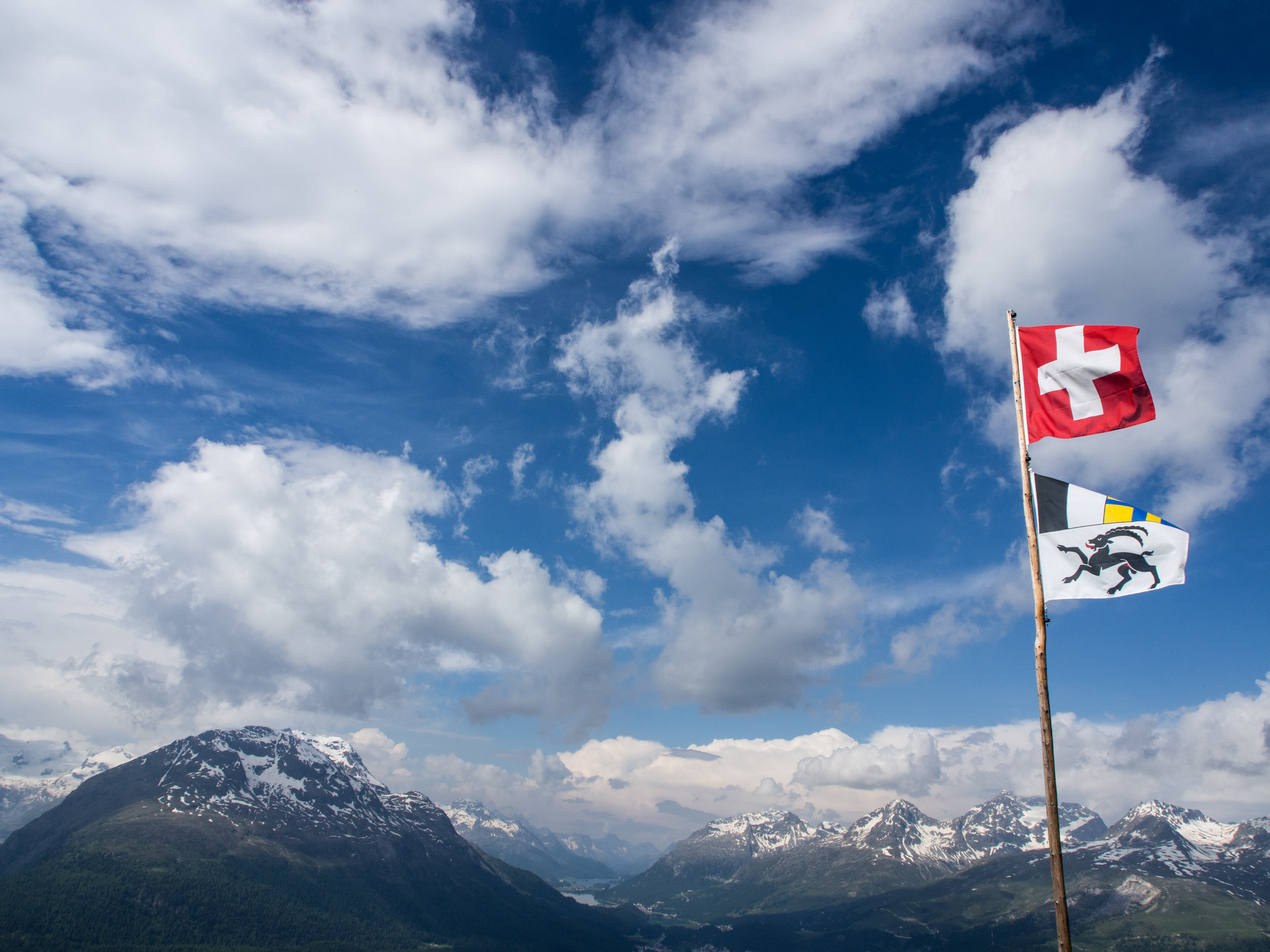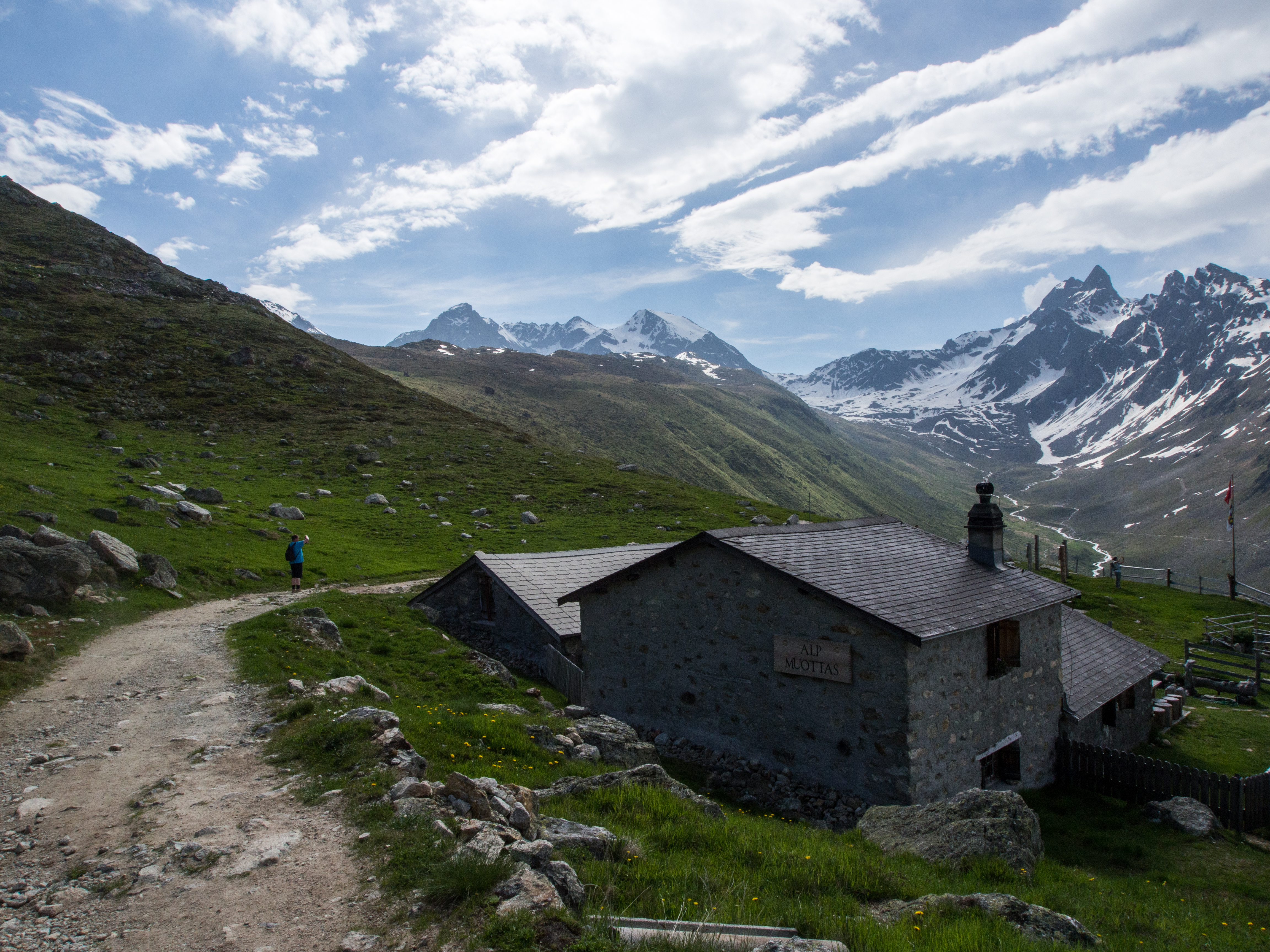 L’Alta Via est une randonnée panoramique, en terrain relativement plat, sur les hauteurs de l’Engadine. Pour arriver au point de départ, il suffit de prendre le funiculaire à la station Punt Muragi et c’est parti pour l’ascension ! Les moins sportifs pourront s’arrêter là et profiter du restaurant et de la plateforme d’observation de Muottas Muragi mais pour notre petit groupe, la montagne et le panorama sur le massif de la Bernina nous appellent ! Avec un temps plus tourmenté et des montagnes un peu plus hautes, le paysage est plus sévère : moins d’herbes et de fleurs, plus de rochers, pas d’arbres. Le paysage est minéral et la vue, plongeante sur la vallée et pas moins de 4 lacs. Notez que si vous séjournez dans un hôtel participant au programme « mountain railways inclusive« , différents funiculaires (dont celui-ci) et lifts sont gratuits.