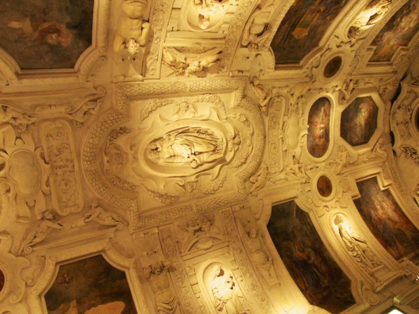 La structure essentiellement romane de l’ensemble donne à la fois une impression d’austérité et de sérénité. Les fenêtres sont rares et hautes : a part le ciel, on ne voit quasi rien. Sans doute pour se rapprocher de Dieu ? Tout cela est un peu oppressant, malgré la douceur de la lumière qui semble quasi tamisée à l’intérieur ! La salle qui fait entrer le plus de lumière, c’est l’ancienne salle des copistes où les moines s’attelaient à la patiente tache de l’écriture et de l’enluminure, bien avant que l’imprimerie ne soit implantée en Europe.