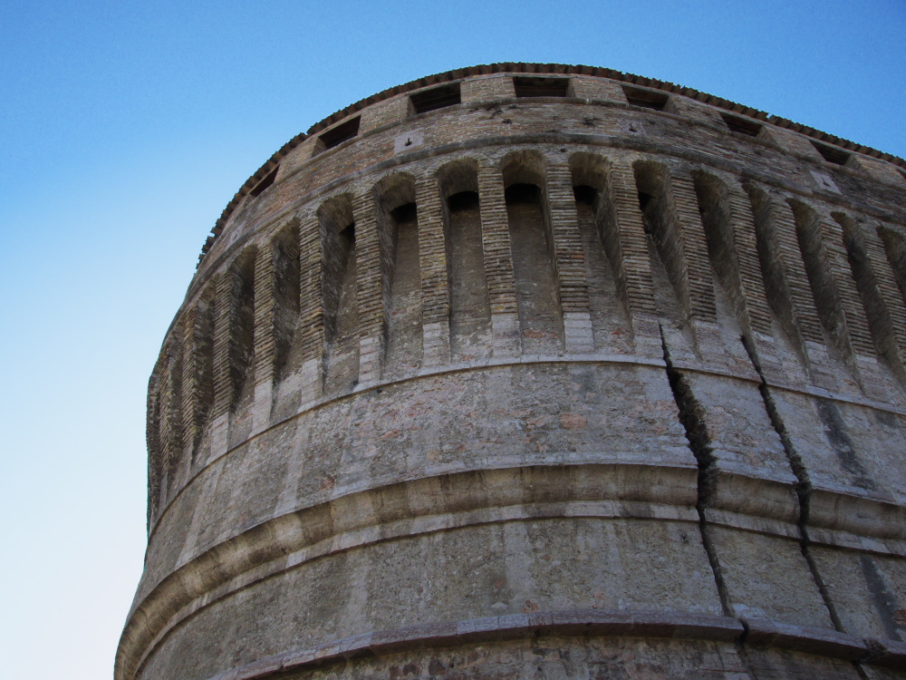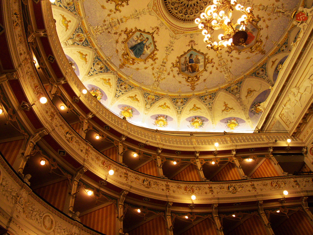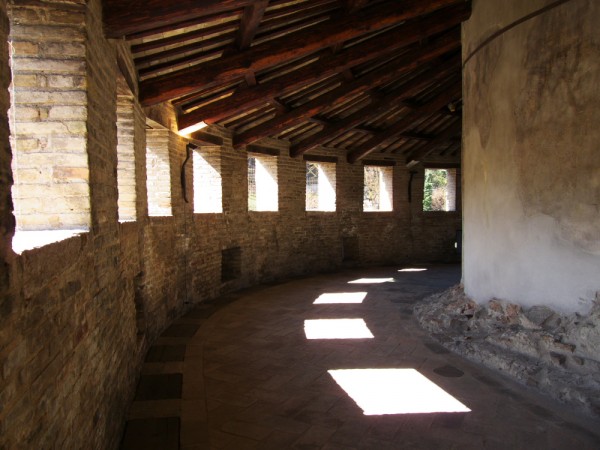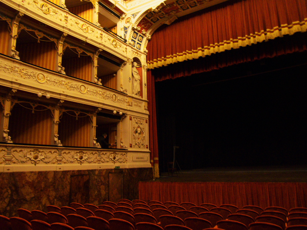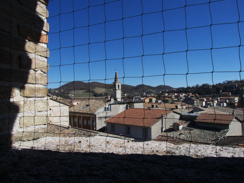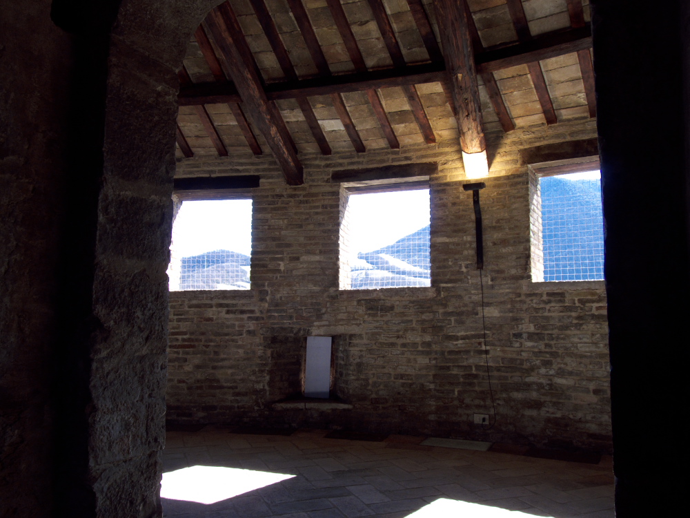 Mais ce qui la distingue des autres bourgades du coin, c’est sa tour… le « Torrione », une énorme tour de garde qui d’un côté, surveille la ville en un seul regard et de l’autre, tout ce qui peut arriver devant. La tour est en cours de restauration et même si la vue depuis son sommet est magnifique, c’est dans ses entrailles que se cache le plus intéressant : de nombreuses sculptures d’artistes contemporains mais surtout, un passage secret ! Un long et étroit corridor de 300 mètres lui aussi en cours de réfection et qui mène vers un des palais de la ville. Je n’ai pu en parcourir qu’un petit bout mais je reviendrai rien que pour le faire en entier. Cerise sur le gâteau, Cagli a son théâtre ! A peine restaurée, cette bonbonnière d’opéra est toute pimpante et frivole…
