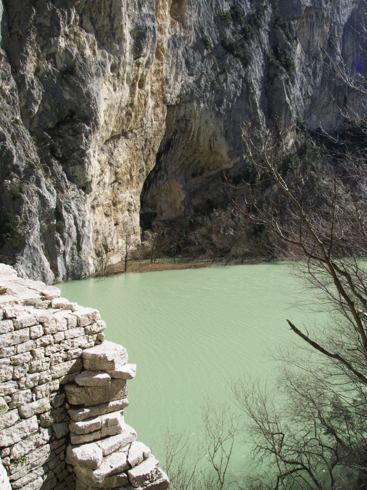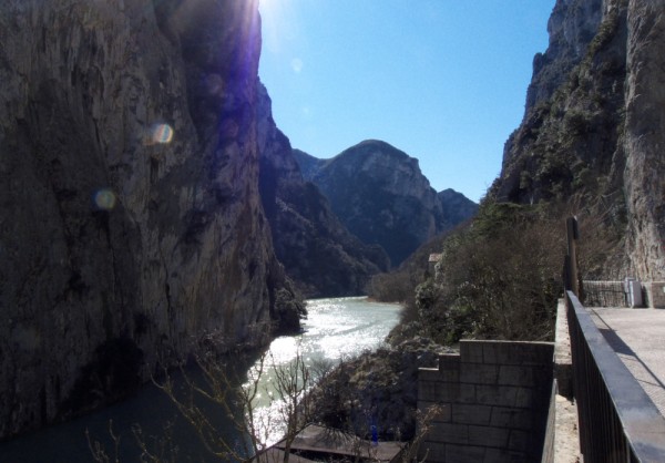 La visite de la ville finie, nous nous dirigeons vers la « frontière » avec l’Ombrie. Le paysage est de plus vallonné… et bientôt, nous nous engageons dans une vallée encaissée, suivant une rivière… Le paysage est digne d’un film… Ce sont les Gorges de Furlo et sa réserve naturelle. L’eau bleu-verte du fleuve coule paisiblement entre deux énormes falaises. J’ai un flash ! On dirait un paysage du « Seigneur des anneaux ». J’en verrai presque les barques de la « communauté de l’anneau » glissant sur l’eau, admirant les statues géantes d’Argonath. Malgré le beau temps, personne n’a eu envie de faire un petit tour en kayak. Peut-être la proximité de la centrale hydroélectrique ? Mais on peut également parcourir les sentiers du parc…et peut-être tomber sur un loup, qui en train de recoloniser cette partie des Apennins.