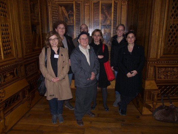 Le troisième artisan, nous le rencontrerons dans le Palais Ducal. Comme je le disais en début d’article, Gubbio est une vieille aristo avec énormément de beaux restes et de cadeaux conservés de ses amants, notamment le Duc Frederic III de Montefeltro qui initia la construction de ce qui est à présent la boite à bijou de la ville! Dans ce bâtiment rassemblé autour de son élégante cour intérieure, on y trouve des œuvres d’art mais surtout, un endroit extraordinaire où nous attend Mastro Marcello : le cabinet d’étude du Palais. Ce petit espace, entièrement marqueté en trompe-l’œil est en fait une reproduction réalisée par l’atelier de Mastro Marcello et de sa famille. L’original se trouve au-delà de l’océan, au Metropolitan Museum of Arts à New York, suite à une histoire rocambolesque. Le studiolo, déjà passé par plusieurs mains, fut acquis par un juif italien et expédié en Suisse alors que le fascisme contraint son propriétaire à fuir le pays. Le studio entier fut finalement acheté en 1039 par le MET. La copie fut inaugurée à son endroit d’origine, après un travail long de sept années, travaillant parfois des fils de bois de la taille d’un cheveu !