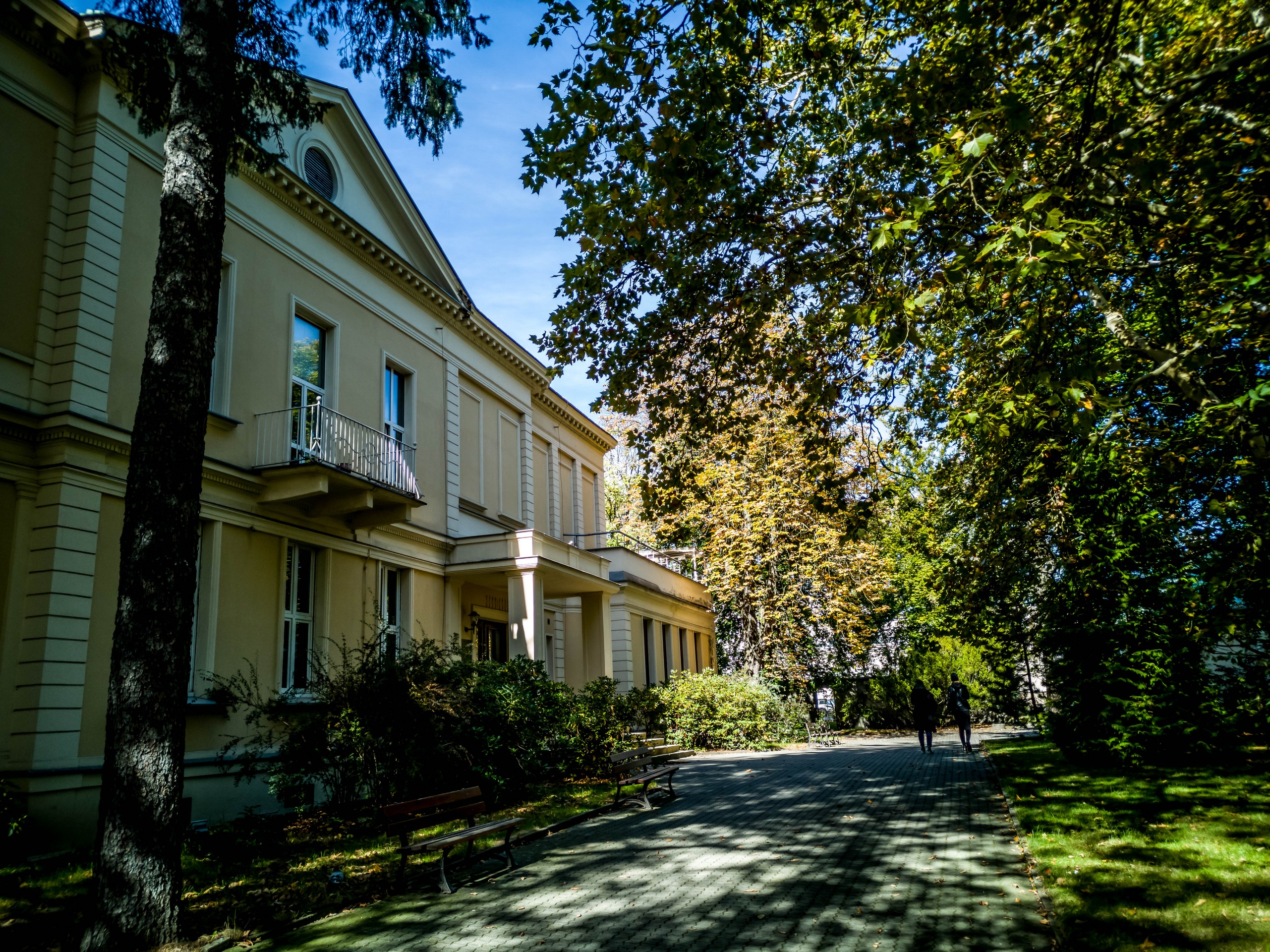 La Pologne est un vrai pays de cinéma et la ville est le siège de la plus prestigieuse de ses institutions de formation : l’Ecole nationale du cinéma de Łódź. Parmi les anciens étudiants : Roman Polanski, Krzysztof Kieślowski ou encore Andrzej Wajda. Pardonnez du peu ! Nous allons passer quelques instants à nous balader à travers le campus de l’école (qui forme aussi des acteurs et au théâtre) sous les nombreux visages d’alumni dont on a suspendu les photos un peu partout. Comme c’était un dimanche, le campus était assez calme mais nous avons pu voir une espèce de petite piscine, siège d’une anecdote sur le plus célèbre des étudiants de l’école. Profitant d’une petite fête entre potes, Roman Polanski avait décidé de filmer pour un court-métrage. Le scénario prévoyait une invasion de la petite fête par des personnes extérieures… sauf que Polanski avait fait appel à de vrais voyous qui ont déclenché une bagarre générale. Ce qui a failli coûter cher au futur réalisateur, il fut à deux doigts du renvoi.
