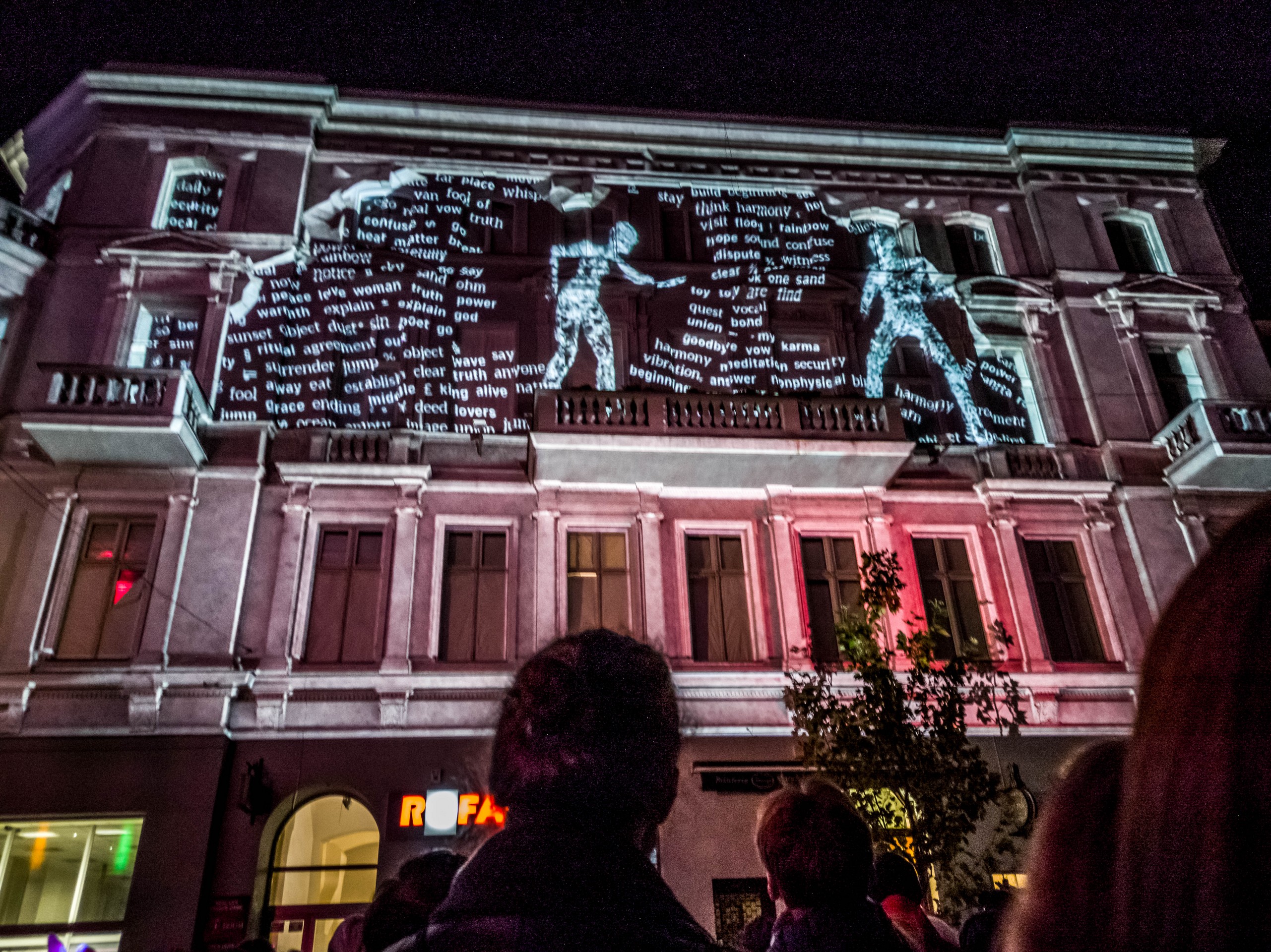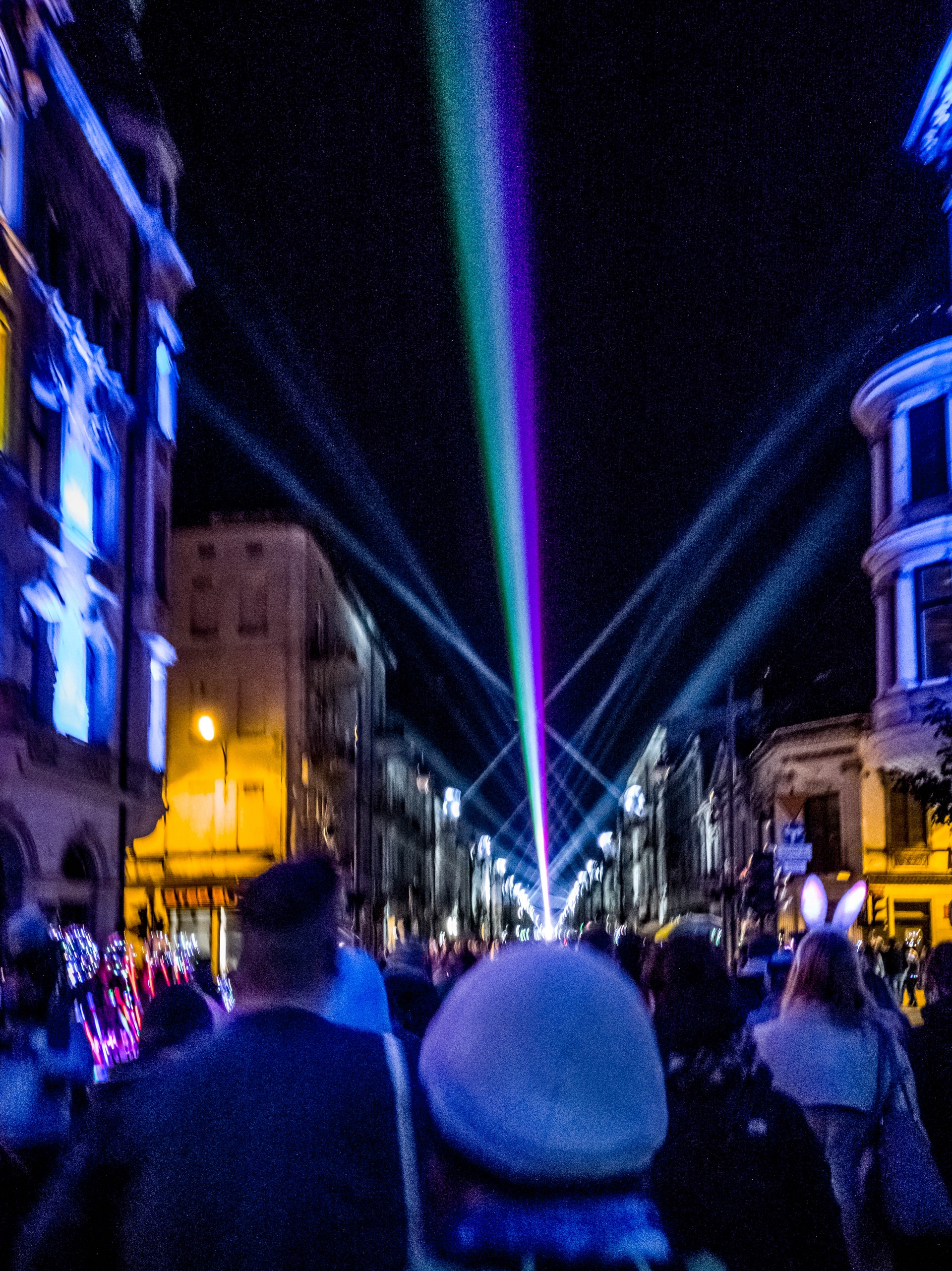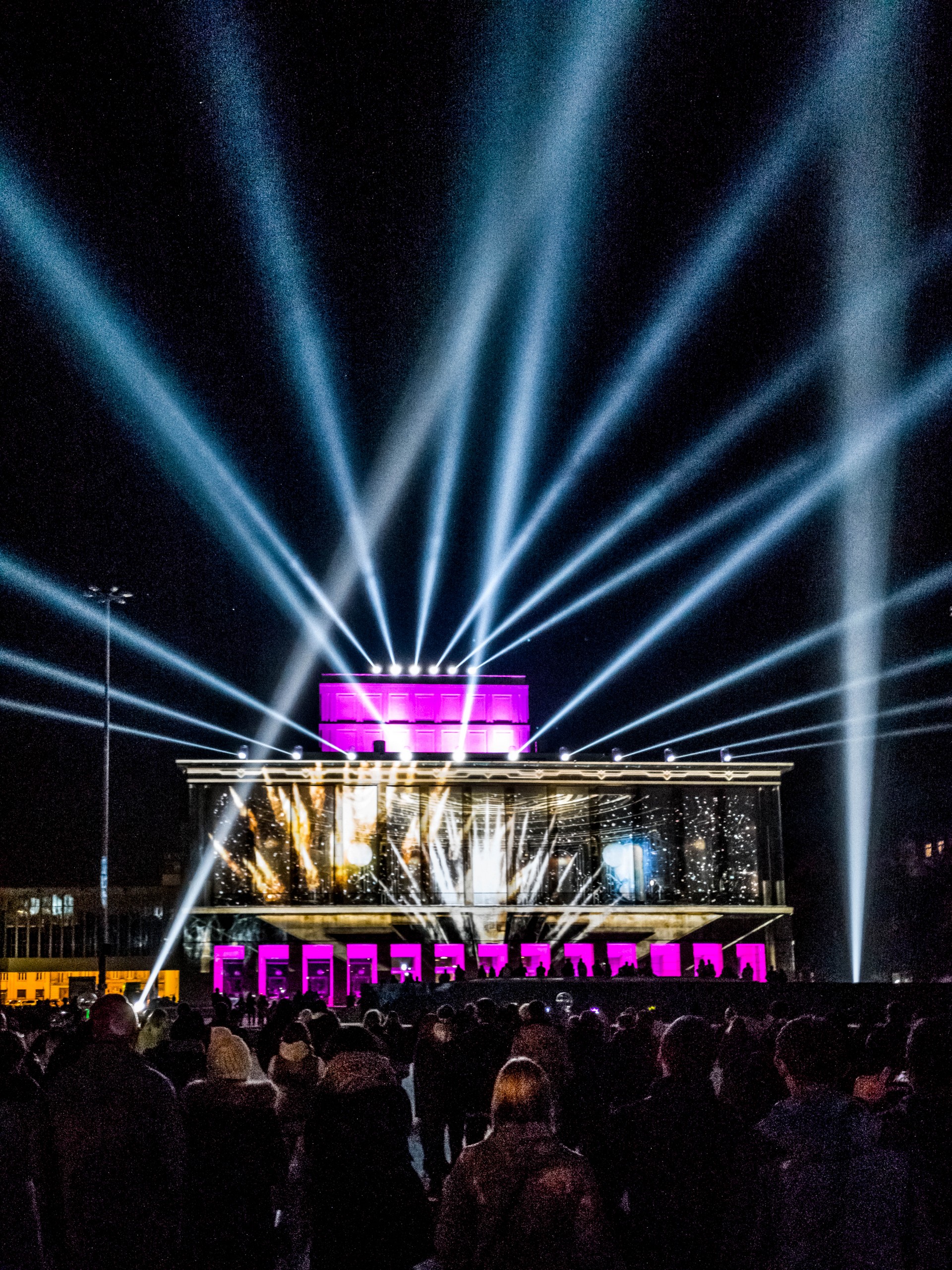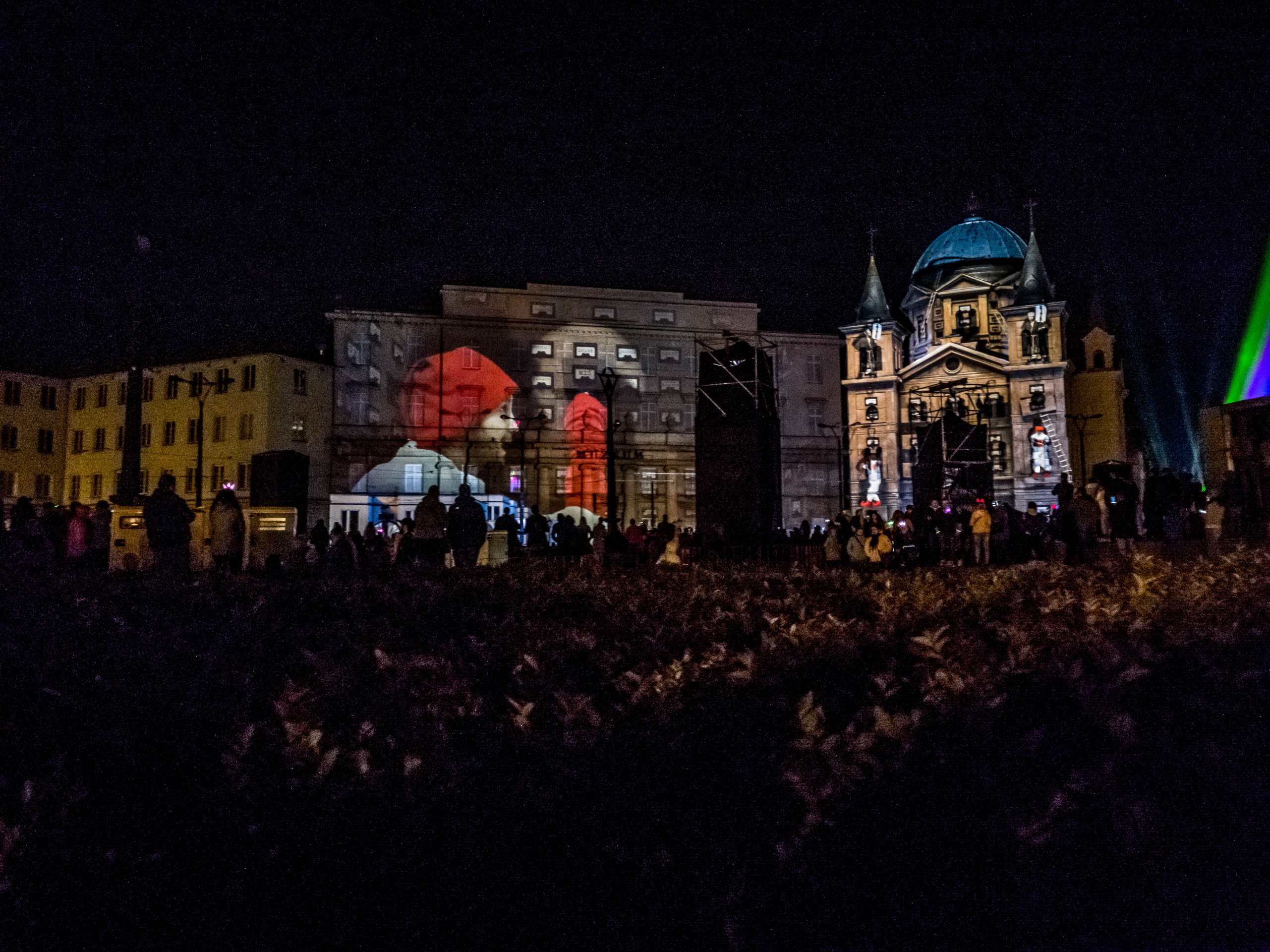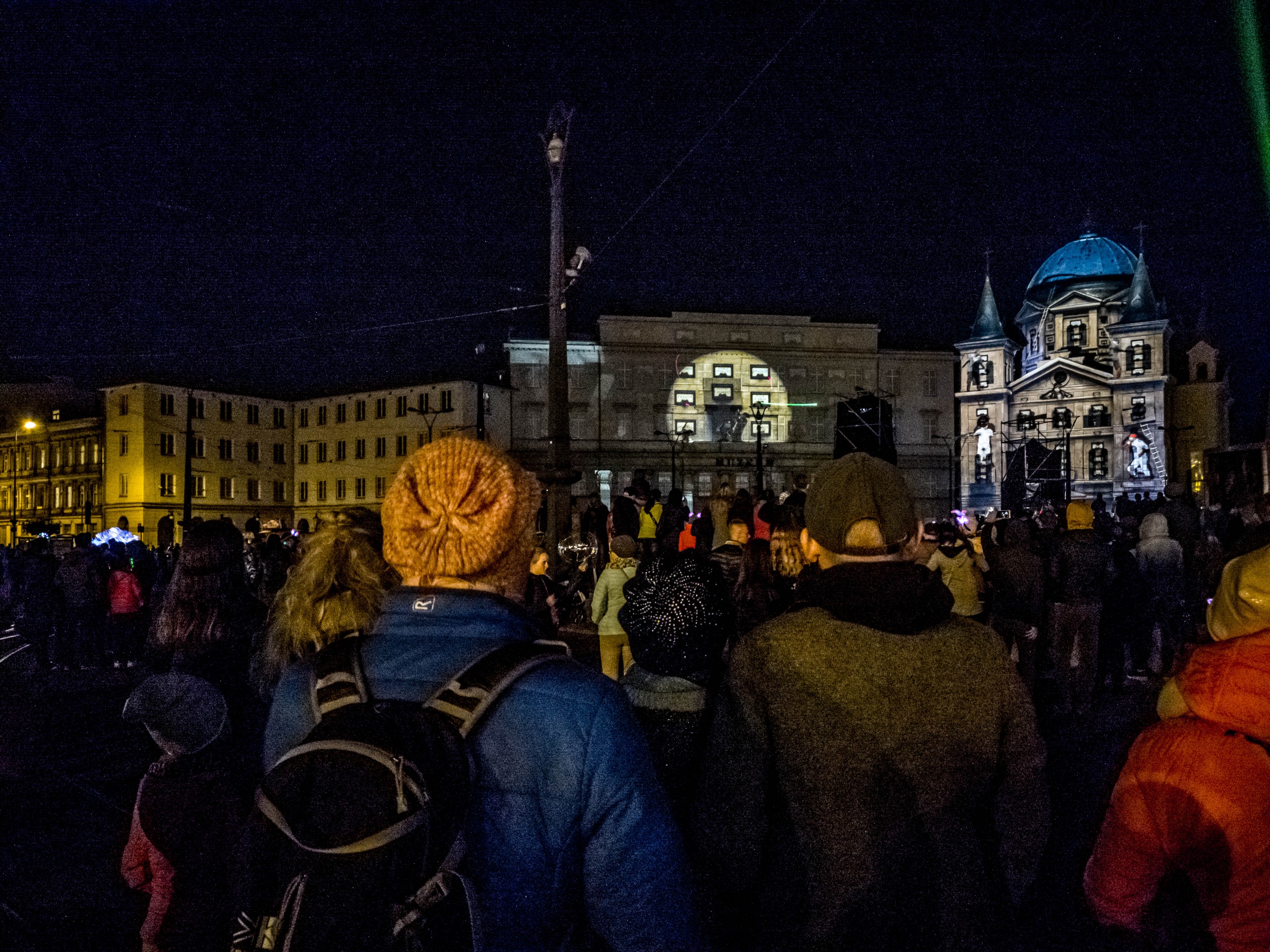 En parlant de féerie, Lectrice, Lecteur, je vais conclure sur ce qui est le festival le plus important du calendrier des activités de Łódź : le Light Move Festival. Ce petit frère du Festival des lumières lyonnais (les deux événements collaborent d’ailleurs) rassemble pas moins de 650.000 personnes sur l’espace d’un week-end. Illuminations de bâtiments, installations et projections lumineuses, 3D-mapping, spectacles laser bref, tout ce qui se fait de plus spectaculaire en la matière, viennent éblouir les badauds dans une ville plongée dans le noir. Mentions spéciales au 3D-Mapping (on en a vu quatre) à la fois impressionnant, émouvant, poétique, ou interpellant. Une bonne raison de venir à Łódź pour y passer le week-end, à condition de réserver bien à l’avance.