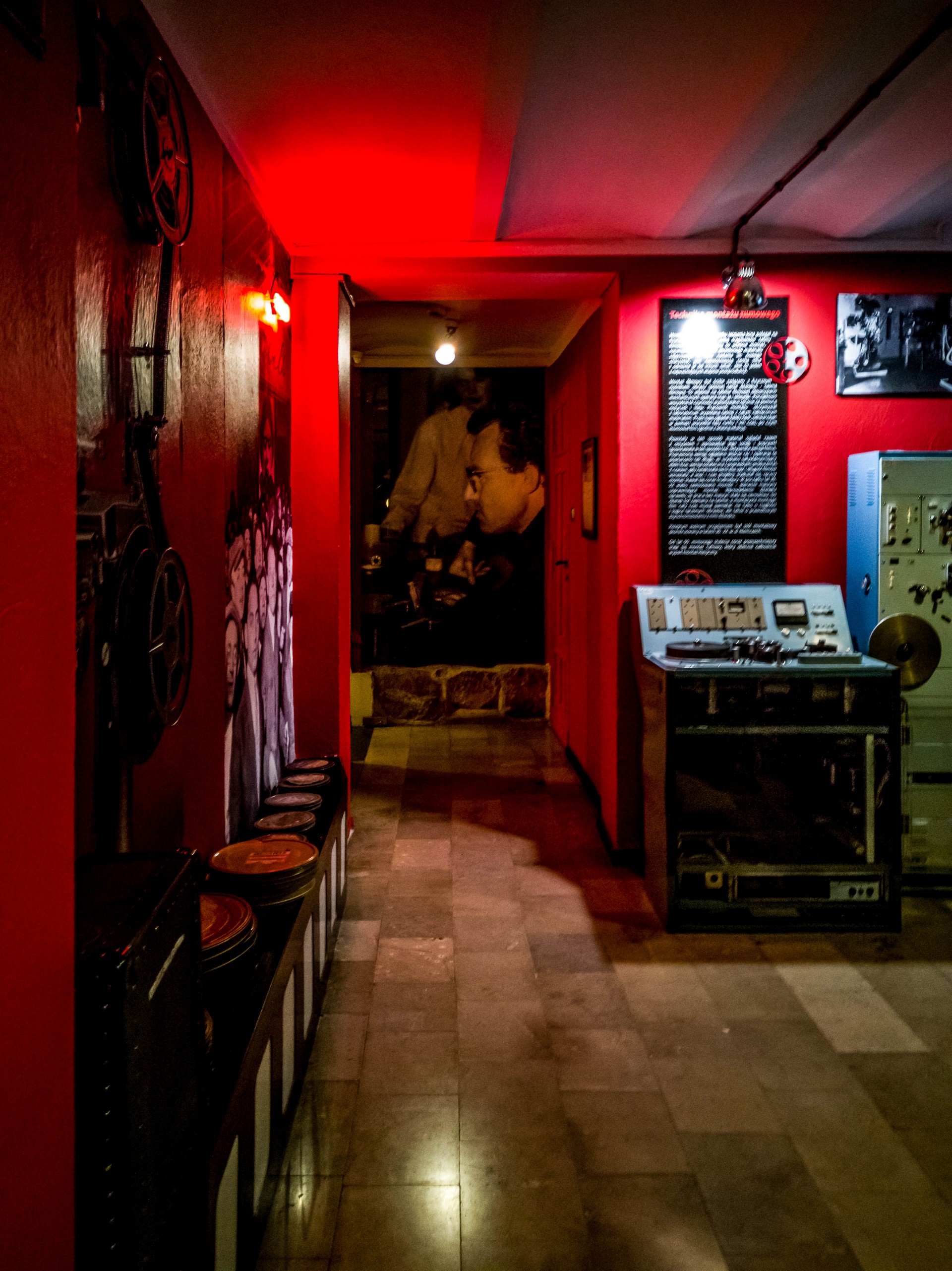Et c’est dans le Palais de Scheibler que nous allons mieux faire connaissance avec le 9ème art polonais au Musée du cinéma (Kinomuzeum). En fait, le Palais Scheibler est un double musée : en plus du cinéma, toute une partie a été gardée en l’état et montre comment vivait le plus riche des industriels de son temps. Mais premièrement, nous allons déambuler entre les vieilles affiches, les projecteurs et les antiques tables de montage. Il y a aussi une partie spécialement dédiée au cinéma d’animation (la Pologne était particulièrement productive dans ce domaine). Vous pourrez même faire coucou à l’ours Colargol et voir un mini-set qui représente une rue de Paris ! Le clou de la visite de la partie « cinéma », c’est le photoplastikon, une énorme machine où l’on s’assoit, plante les yeux dans des lunettes et à l’intérieur, défilent des images qui donnent une étrange sensation de relief. Ce sont des scènes de grands classiques du cinéma polonais qui vont défiler pendant quelques minutes.