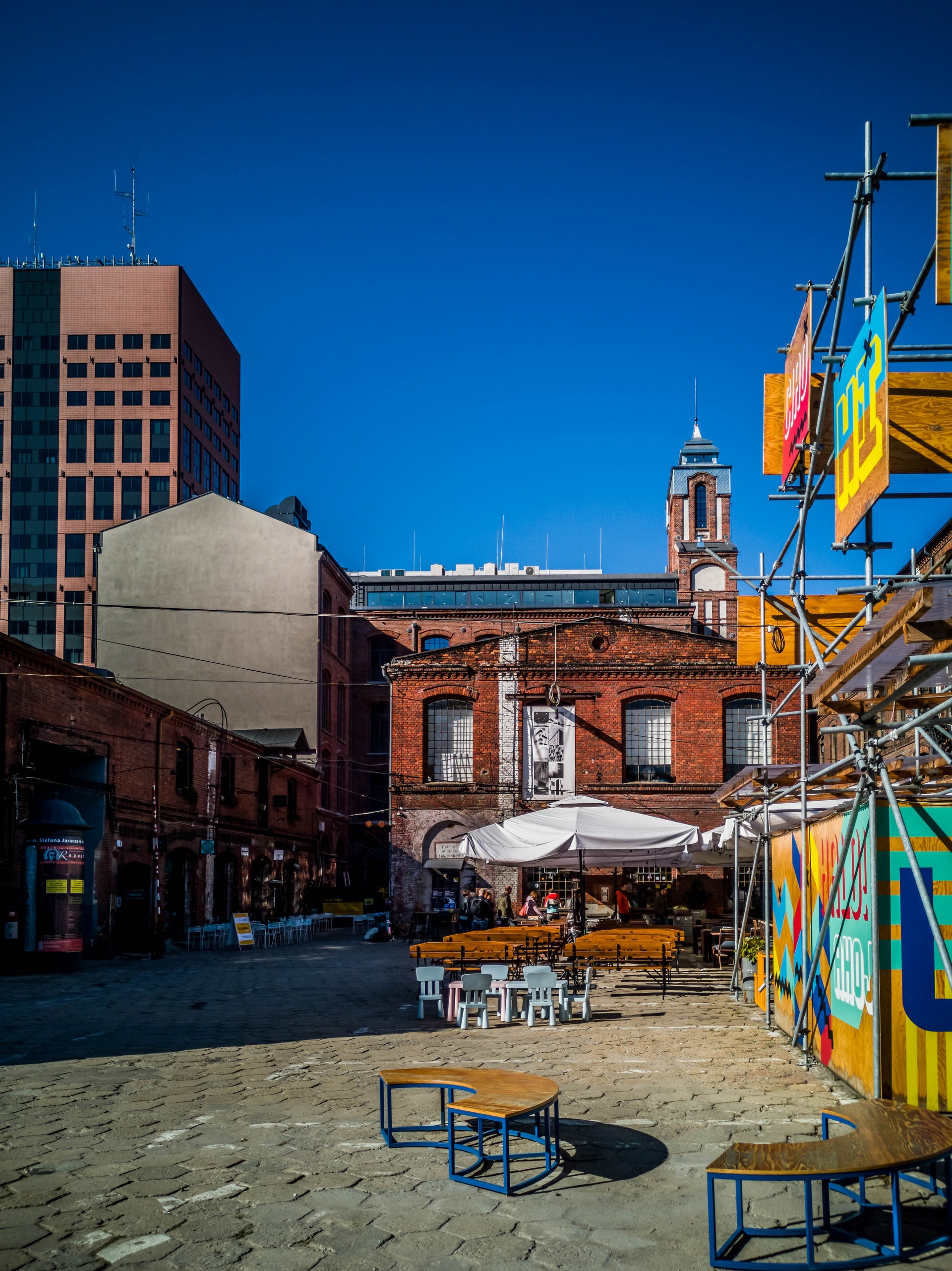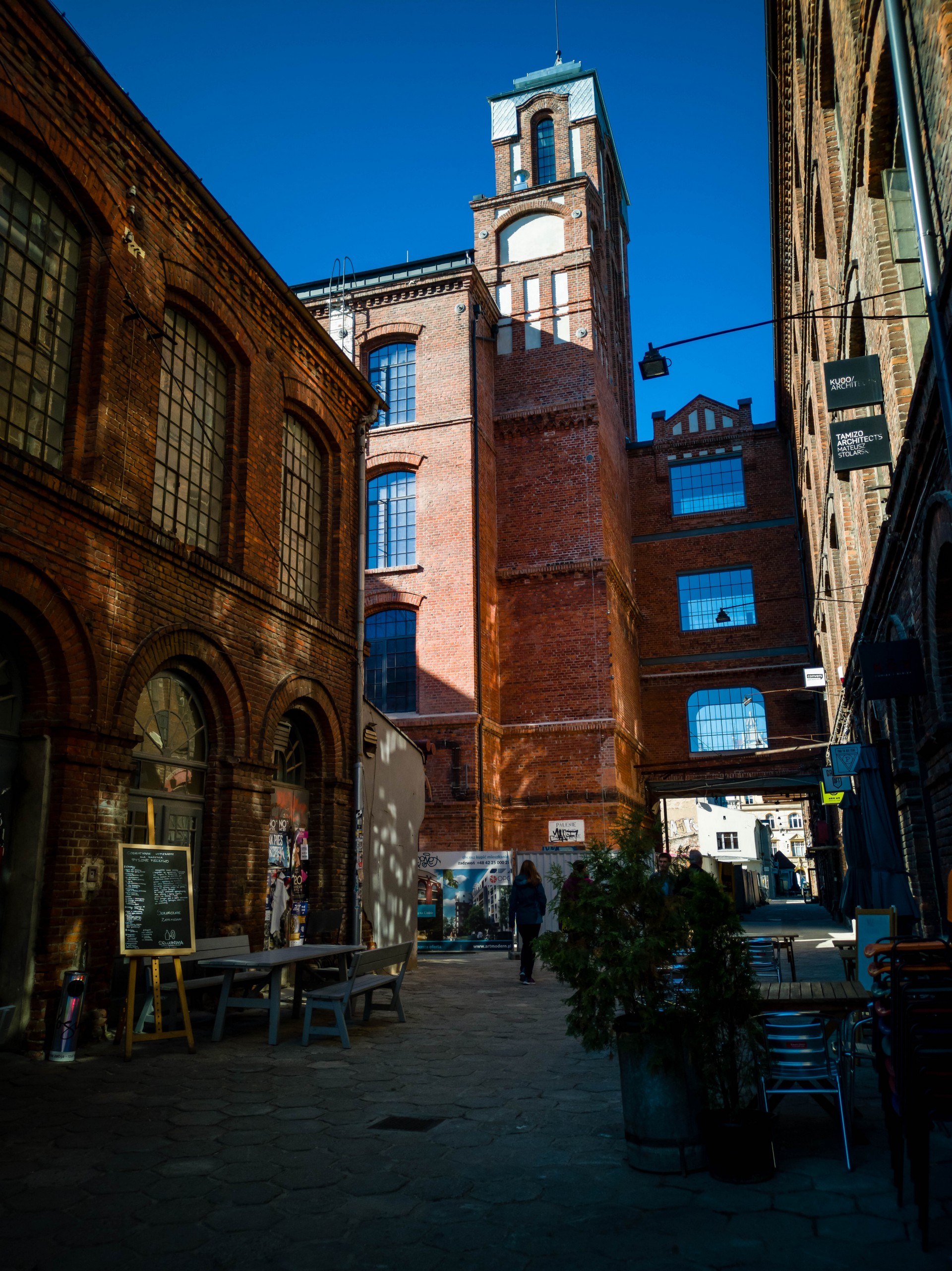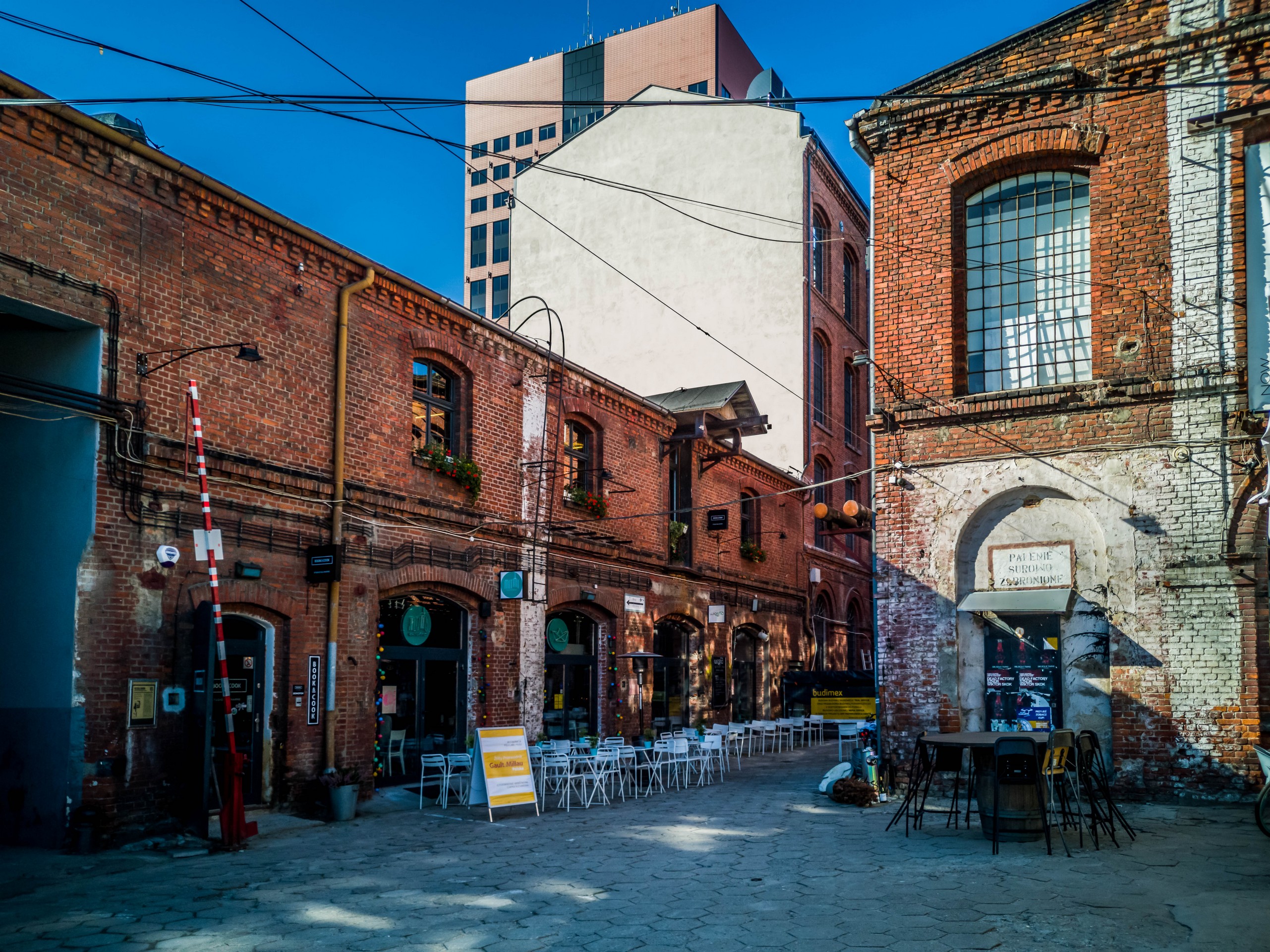 Il est difficile d’imaginer qu’il y avait une usine en plein centre-ville et pourtant… c’est dans l’ancienne usine de Franciszek Ramisch que nous avons un des plus chouettes exemples de réhabilitation : Off Piotrkowska. C’est aussi une des plus petites. Dans les anciens ateliers de coton, on trouve des magasins de design, des bars et des restaurants, le tout dans une ambiance relax et colorée. Le genre d’endroit qui invite à s’attarder en terrasse et qui stimule la créativité.