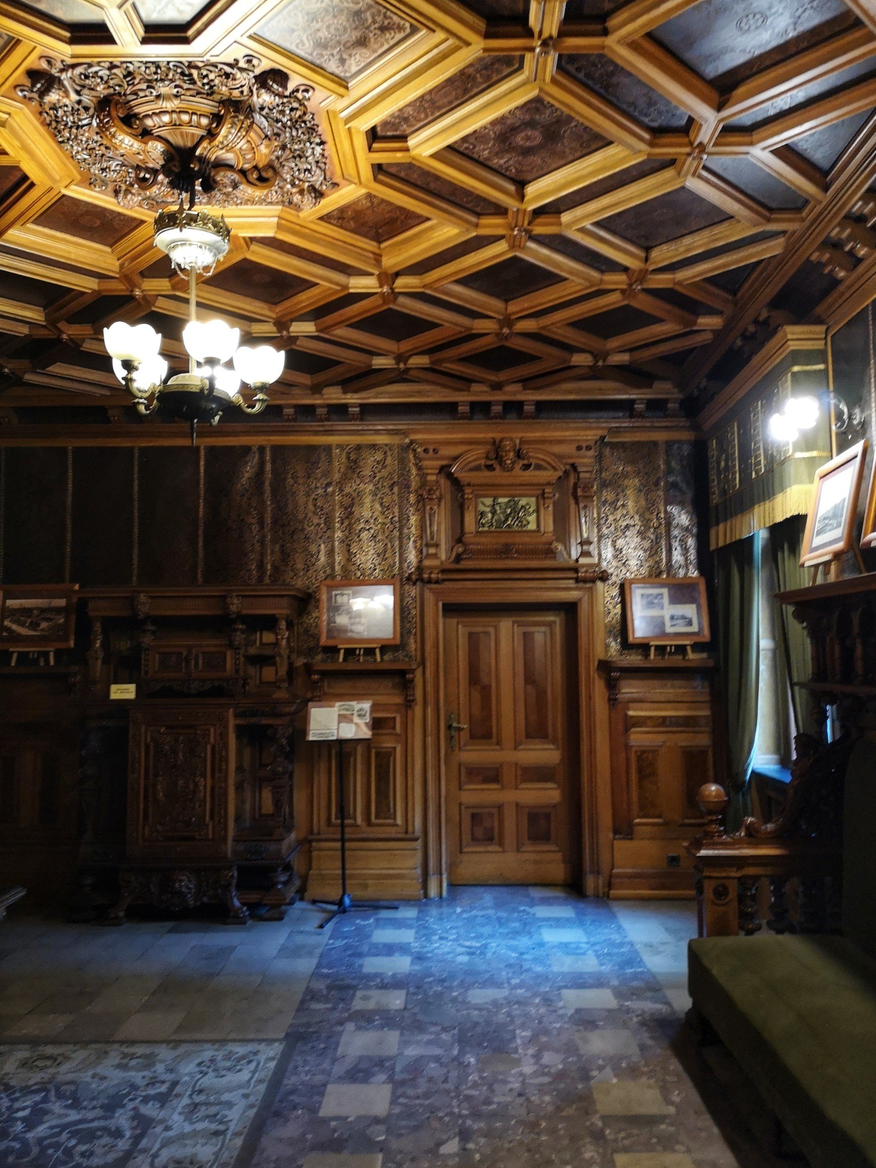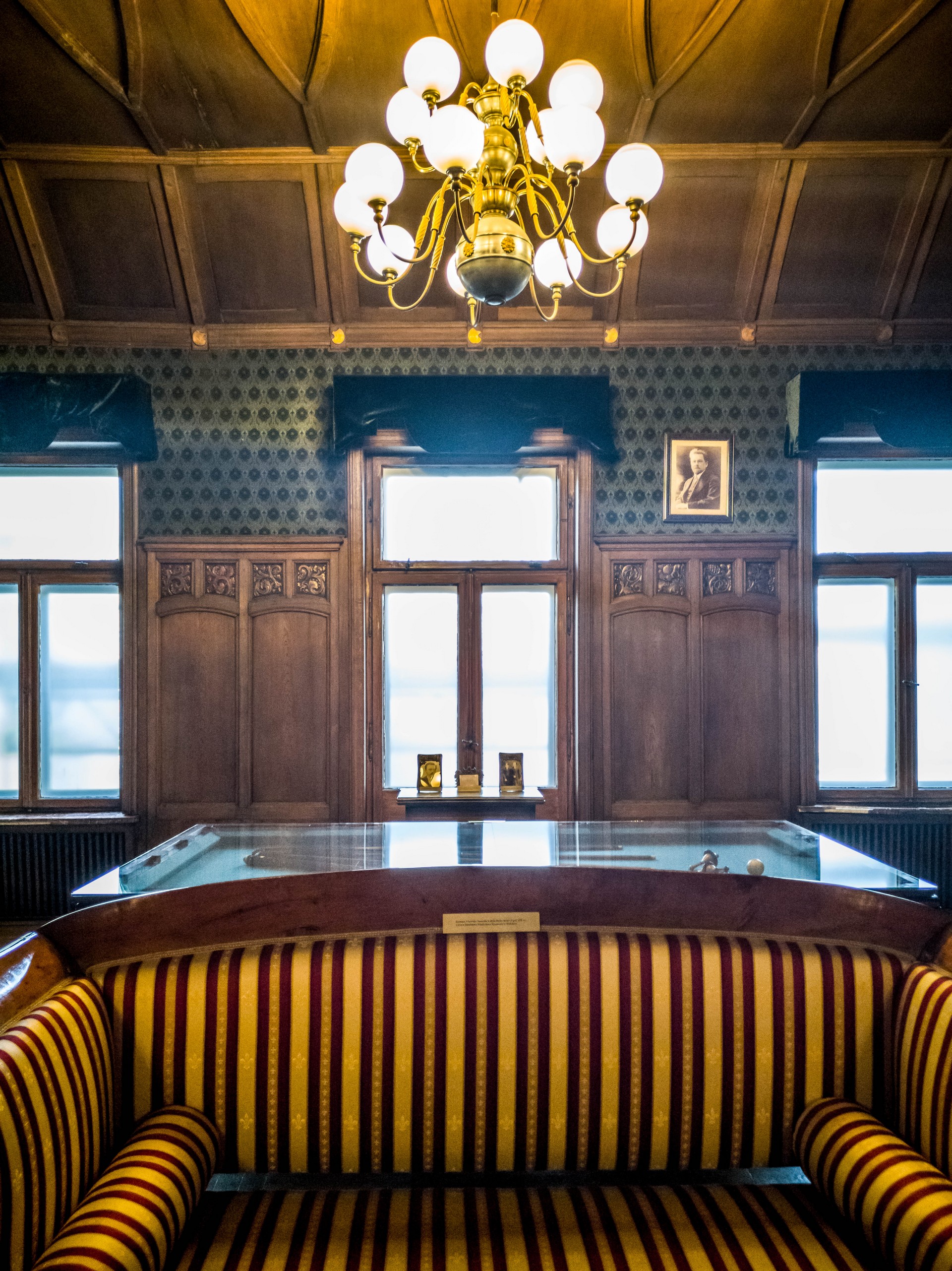 Une jolie transition entre la partie « cinéma » et la partie « patrimoniale » du Palais Scheibler. Si le Palais Poznanski avait bien montré le côté un peu « m’as-tu-vu » du propriétaire, ici, c’est plutôt l’impression de confort et de bourgeoisie opulente mais tranquille qui domine. Mobilier, décoration, luminaire… tout est de matériaux nobles. On notera les nombreux poêles en faïence, très à la mode au XIXème siècle.