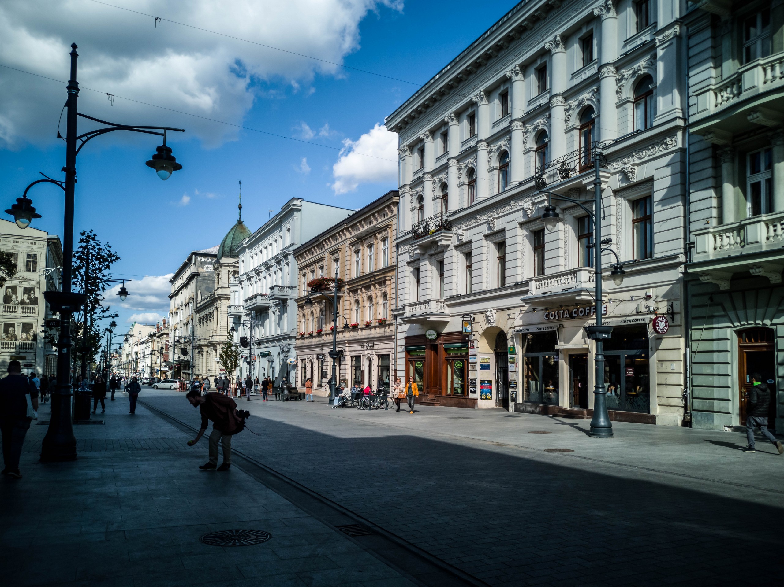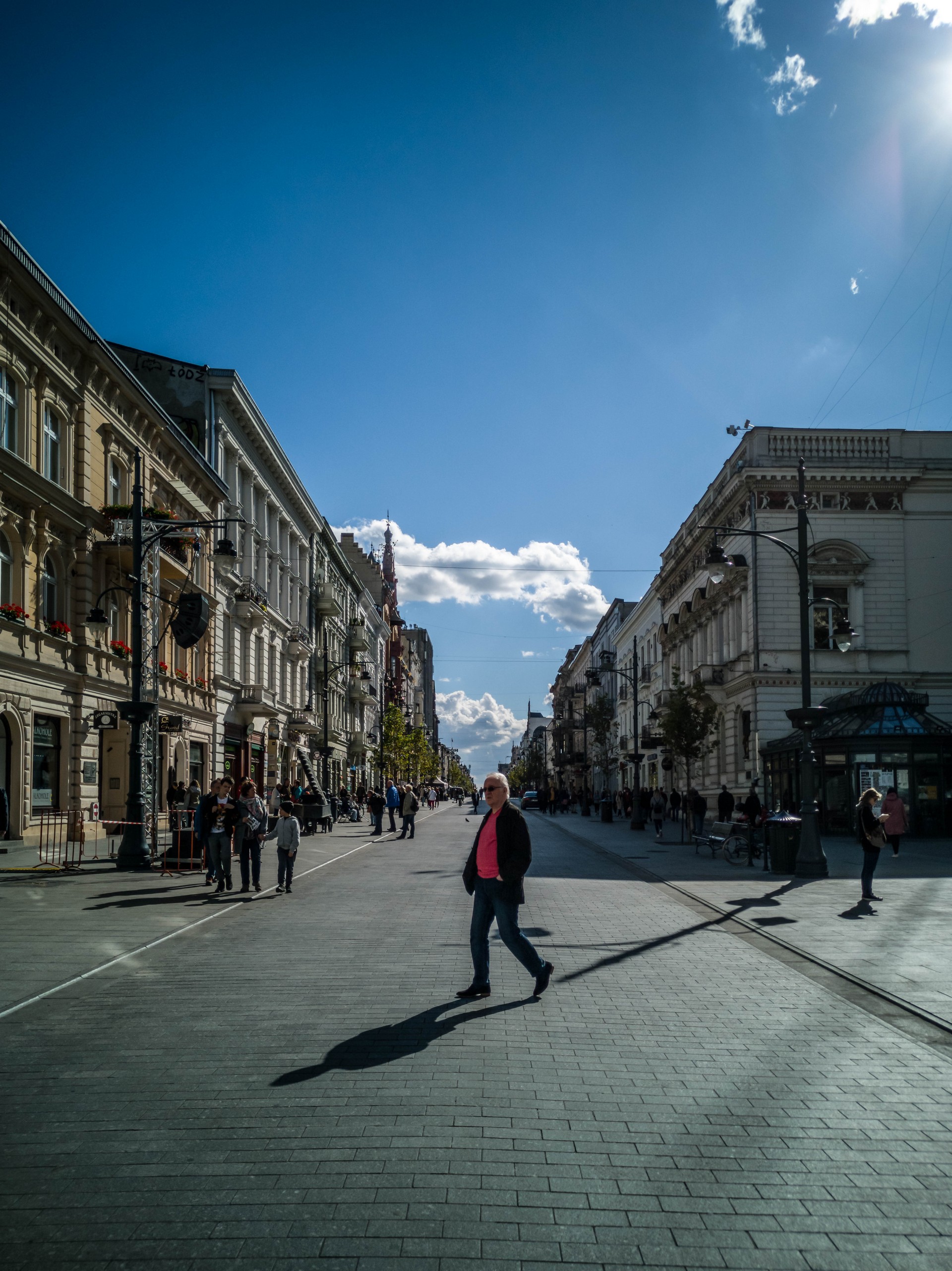 Etant donné que Łódź est dépourvue d’une « grand-place » comme la plupart des autres villes européennes, cette artère remplit une fonction similaire. De belles demeures de styles divers sont sagement alignées et abritent une foule de commerces, de cafés et de restaurants. On pourrait y passer des heures, d’autant plus que les rues perpendiculaires et les cours des immeubles sont aussi occupées par des établissements. Avis aux curieux !