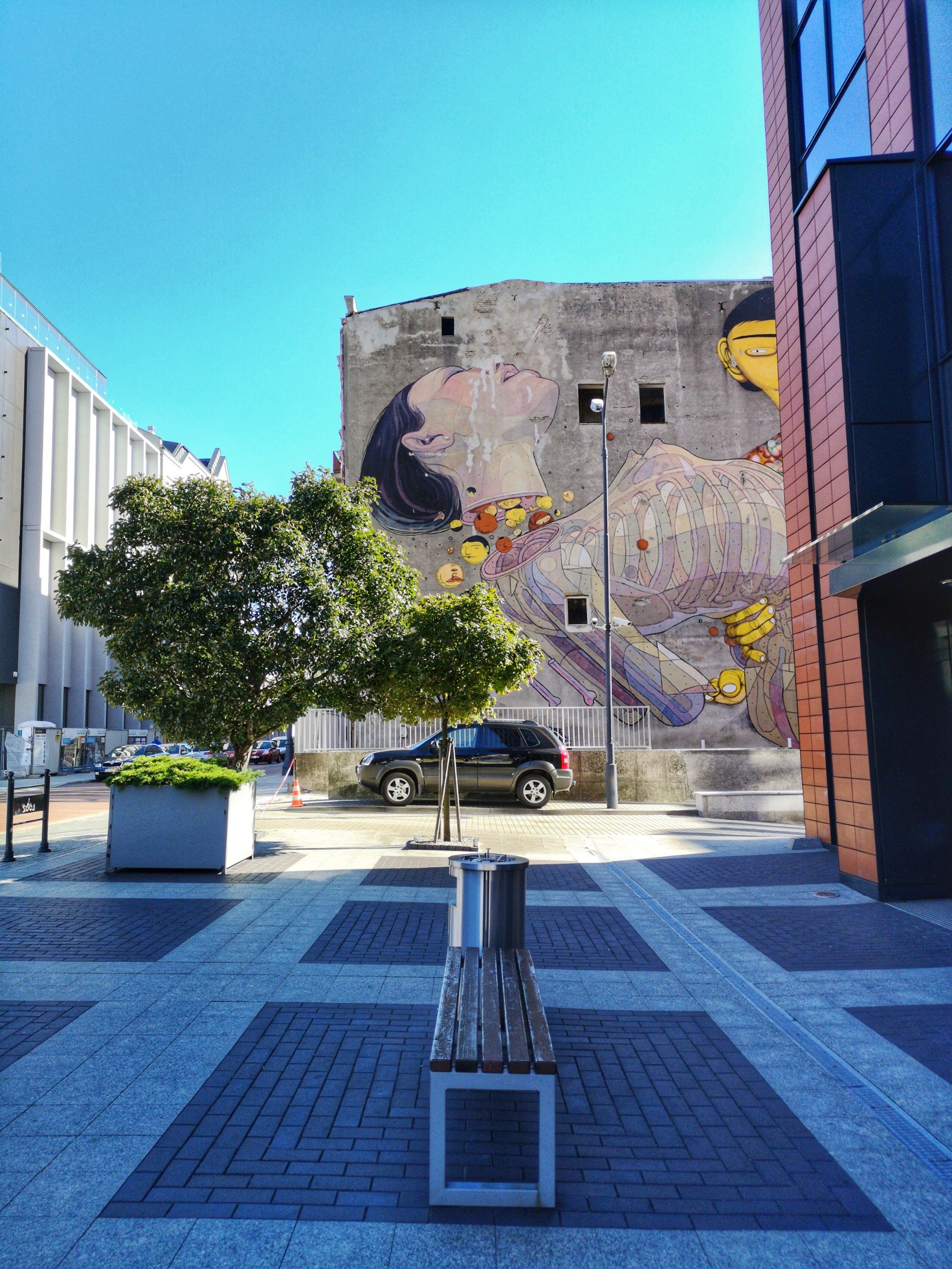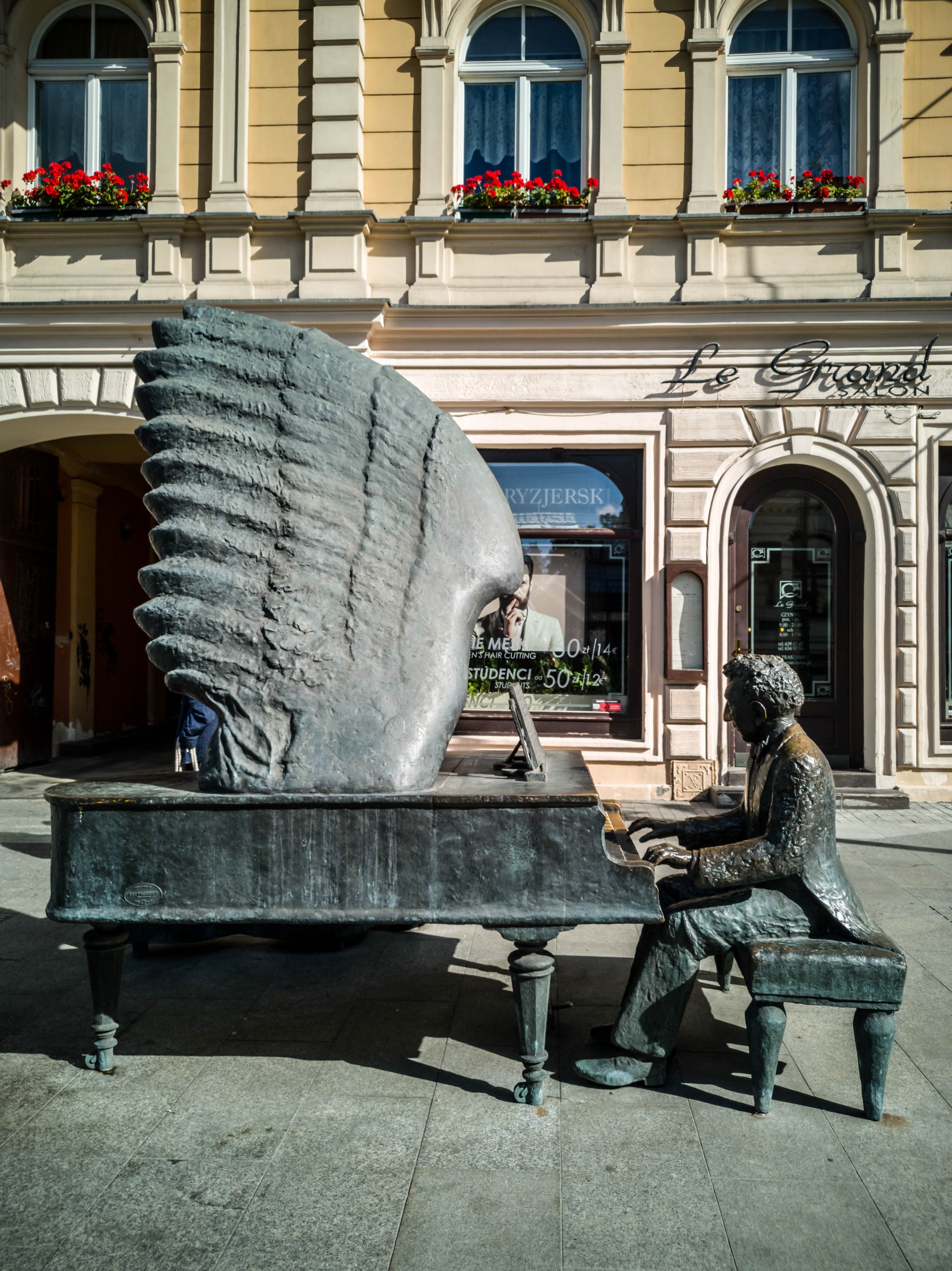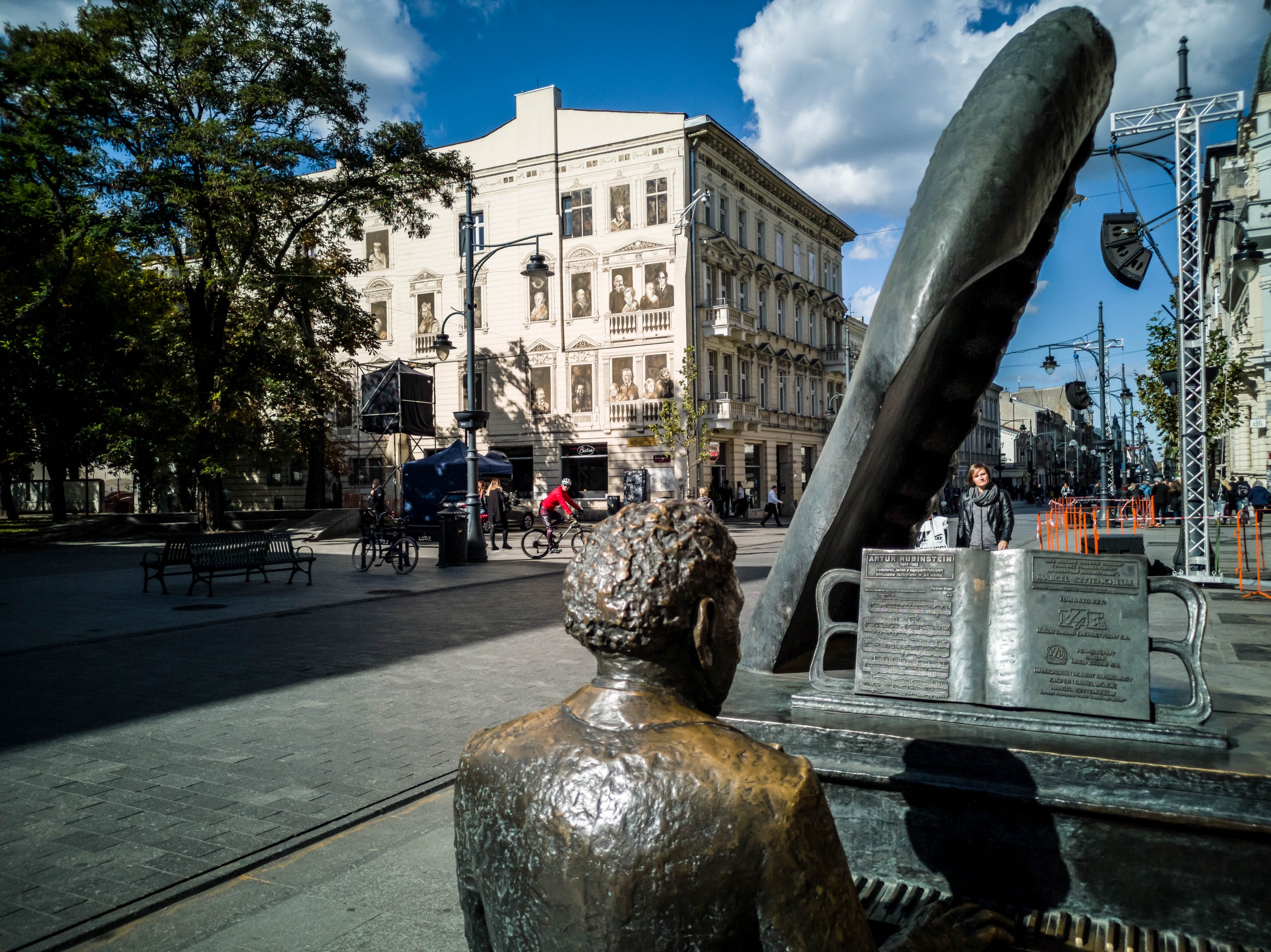 Le long de l’axe, on trouve pas mal d’œuvres d’art public, de nombreuses statues, dont celle du plus célèbre citoyen de la ville : le pianiste Arthur Rubinstein. On le voit partout !