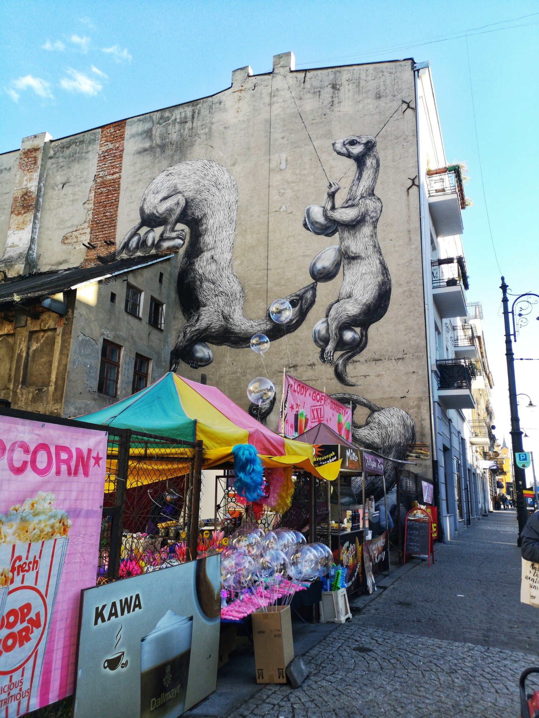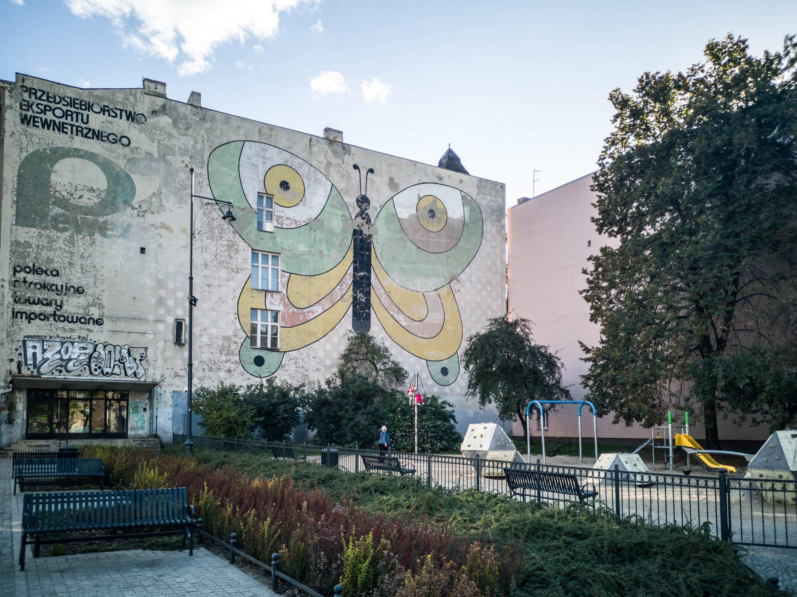 Tu le remarqueras très vite, Lectrice, Lecteur, le street-art ici est roi. Et ça ne date pas d’hier ! Déjà dans les années 60-70, les murs étaient utilisés pour des besoins de publicité des entreprises d’état (comme ce papillon qui fait face au portrait d’Arthur Rubinstein par Kobra sur ul. Sienkiewicza 18).