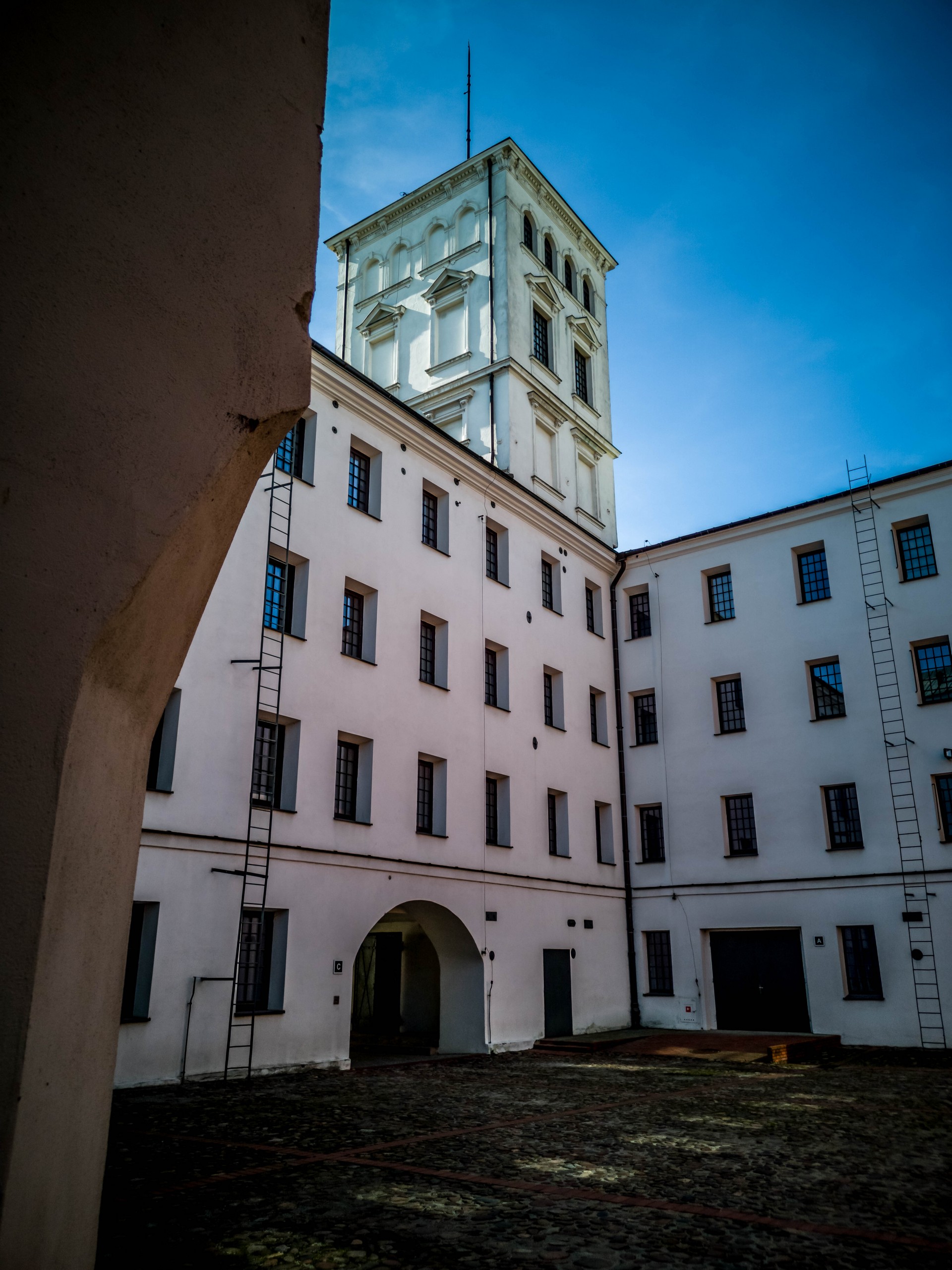 Alors là, on attaque une sacrée pièce de résistance ! La manufacture de Karl Wilhelm Scheibler était la plus énorme de toute la ville. Cet industriel allemand, ayant fait ses classes dans le domaine textile à Verviers en Belgique, a donc atterri à Łódź et en quelques années, est devenu l’empereur du coton et du lin. Plus qu’une usine, c’est une véritable ville que Scheibler a édifié. A côté des ateliers, vous y verrez des maisons ouvrières (composées d’appartements de 40m2… gloups), des écoles, un hôpital… Mais avant d’aller voir tout ça, nous allons faire un crochet à l’Ecole nationale de cinéma.