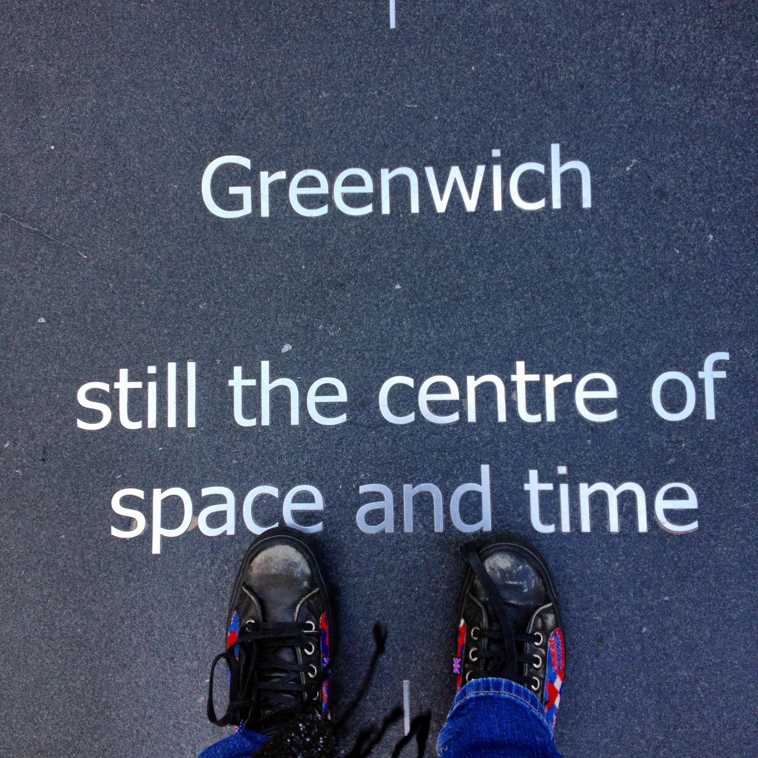 La descente se fait évidemment plus vite et avant de quitter l’O2, nous visitons un peu l’endroit et surprise, c’est quasiment un mini-village avec des restaurants, des magasins qui entourent la salle de concert comme une muraille et à la sortie, laisse exprimer ton côté nerd… tu trouveras une plaque mentionnant que te trouves pile sur le méridien de Greenwich. Eh oui, la longitude 0, et celui qui sert de mesure standard pour l’heure universelle (l’heure au méridien de Greenwich est définie comme l’heure universelle: le temps universel coordonné).