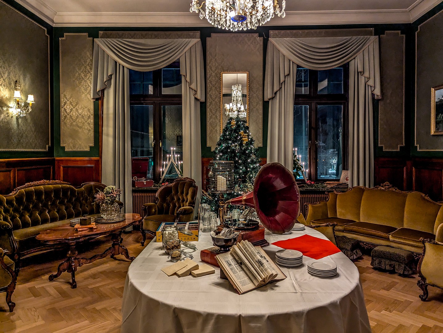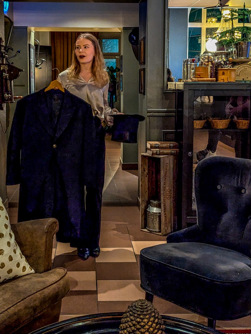 Pendant que je dévore le kannelbullar qu’on nous a servi pour le goûter, je laisse mon esprit divaguer. Même si j’ai aussi pensé à cette soirée Gatsby, mon fantasme, c’est de m’y enfermer un mois pour écrire, au cœur du sombre hiver lapon, et d’y rencontrer une foule de personnages tous aussi excentriques les uns que les autres. On pourrait aussi y imaginer un huis clos à la Agatha Christie, où les résidents et le personnel de l’hôtel seraient coincés par un blizzard, à la merci d’un assassin (ou d’une assassine) qu’il faut démasquer au plus vite. Tout compte fait, je me demande si un réveillon « Murder Mystery » ne serait pas une meilleure idée. En plus, à Haparanda-Tornio, on peut le fêter deux fois… mais cela, je vous en parlerai plus tard.