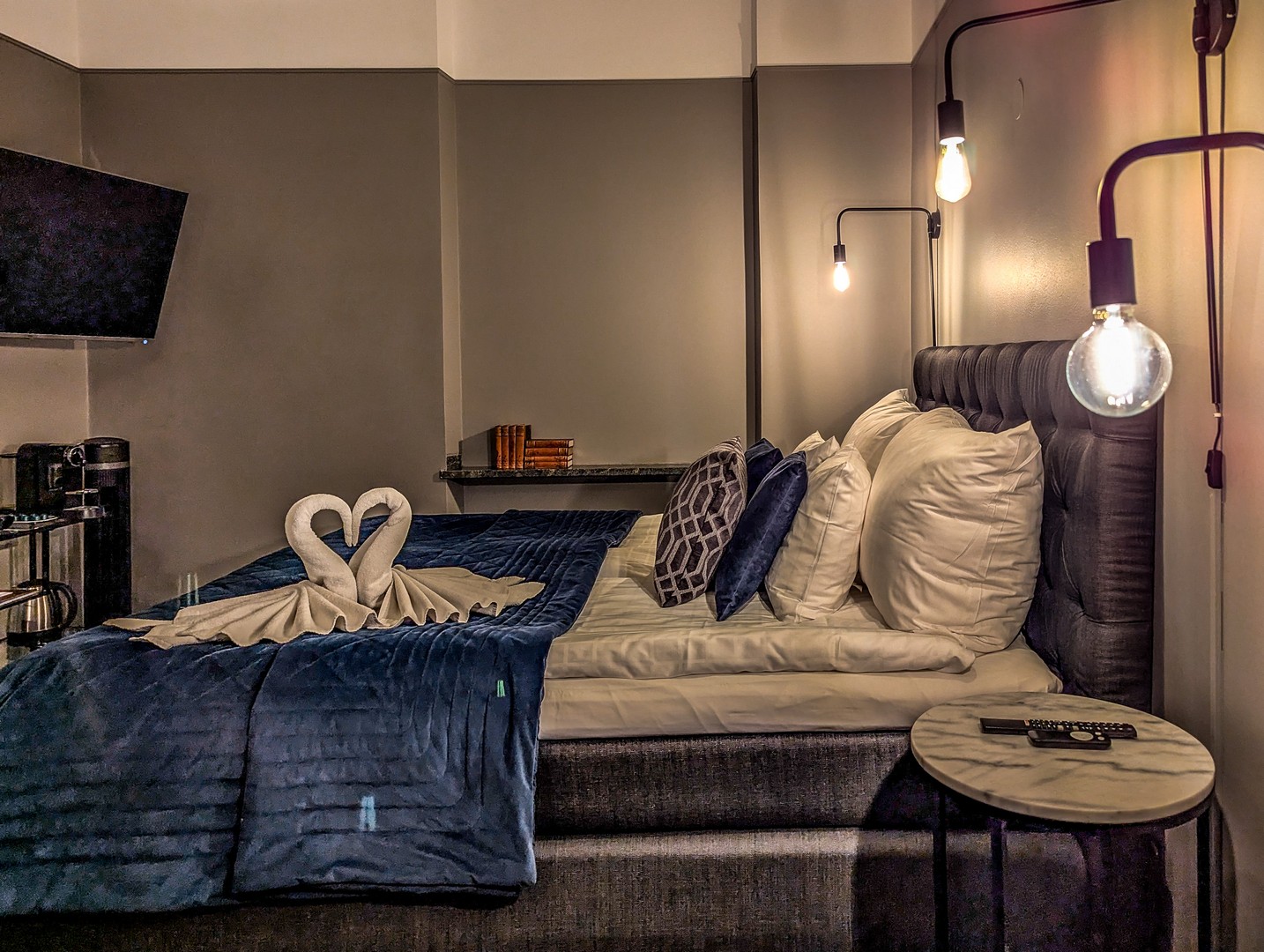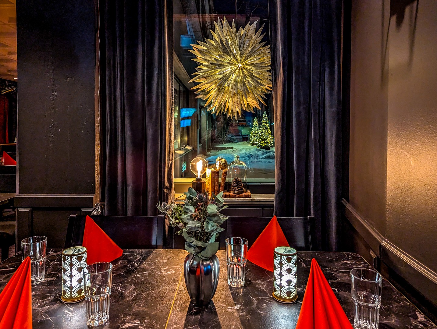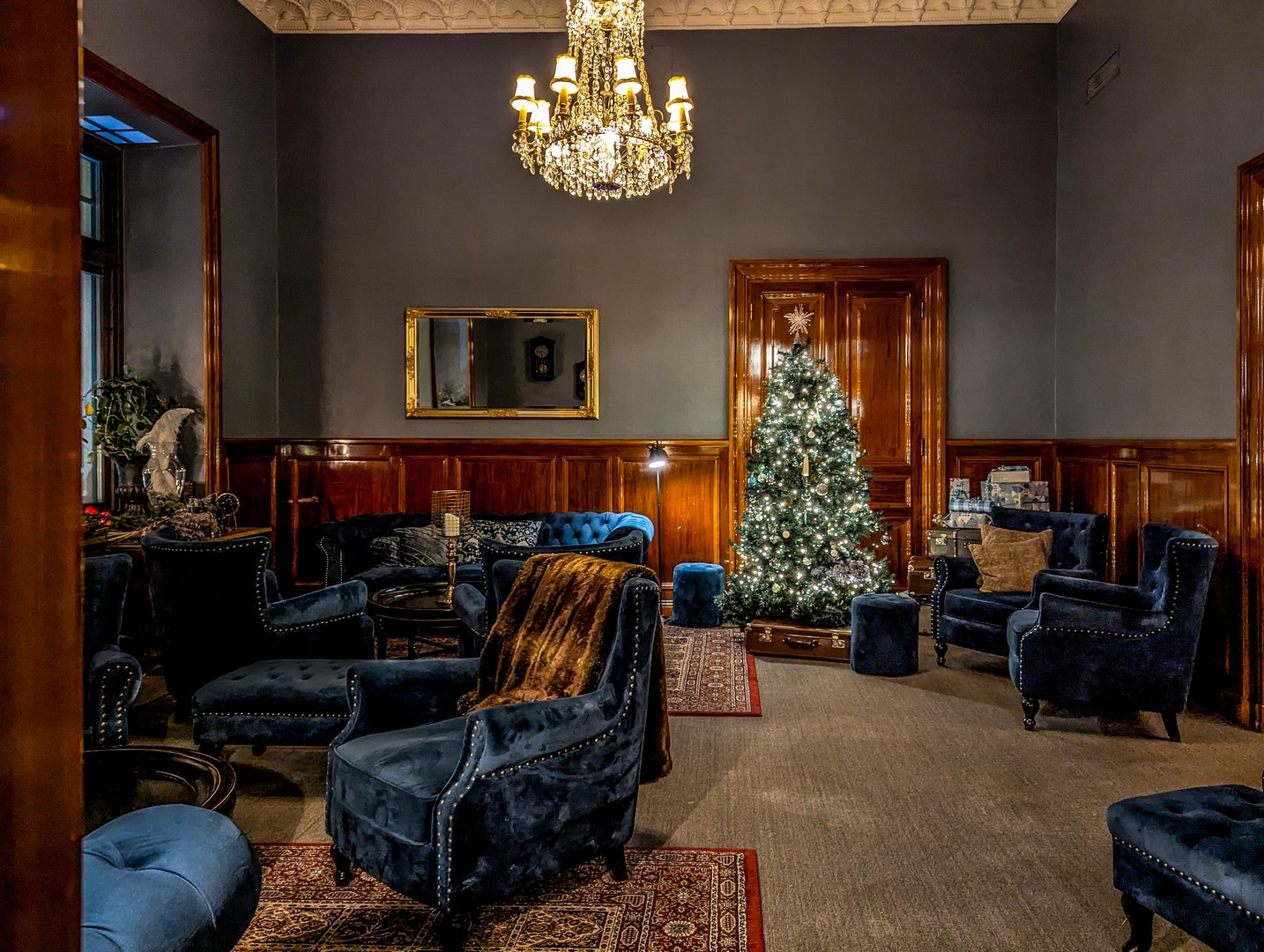 Les chambres sont tout aussi raffinées : tons riches, beaux meubles, baignoire à pied pour les suites… On y a même installé des sapins de Noël pour s’y sentir comme à la maison !
