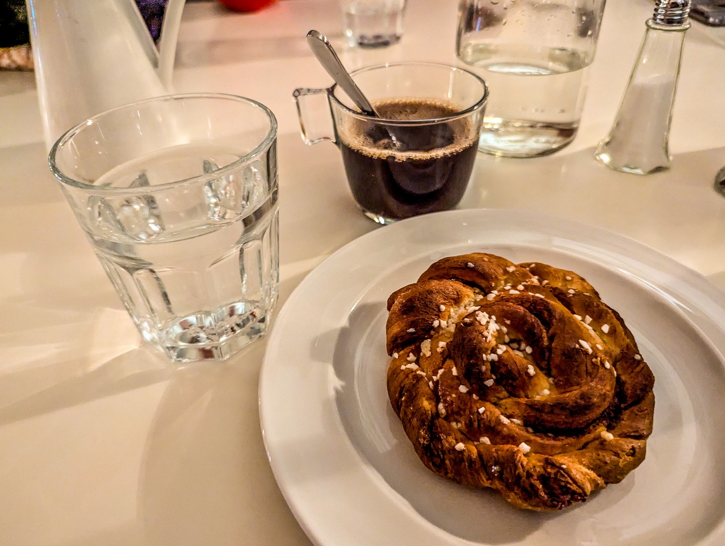 La première chose que l’on remarque, c’est le comptoir à pâtisseries. Comme le nom du café l’indique, le fika, la pause-goûter chérie des Suédois, tient une place importante dans cet établissement. On verra bien si vous pouvez résister, mais pour nous, il est encore un peu tôt : ce sera donc un lunch rapide.