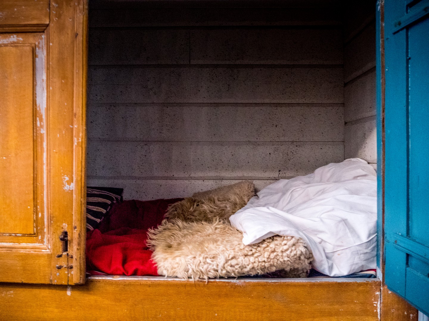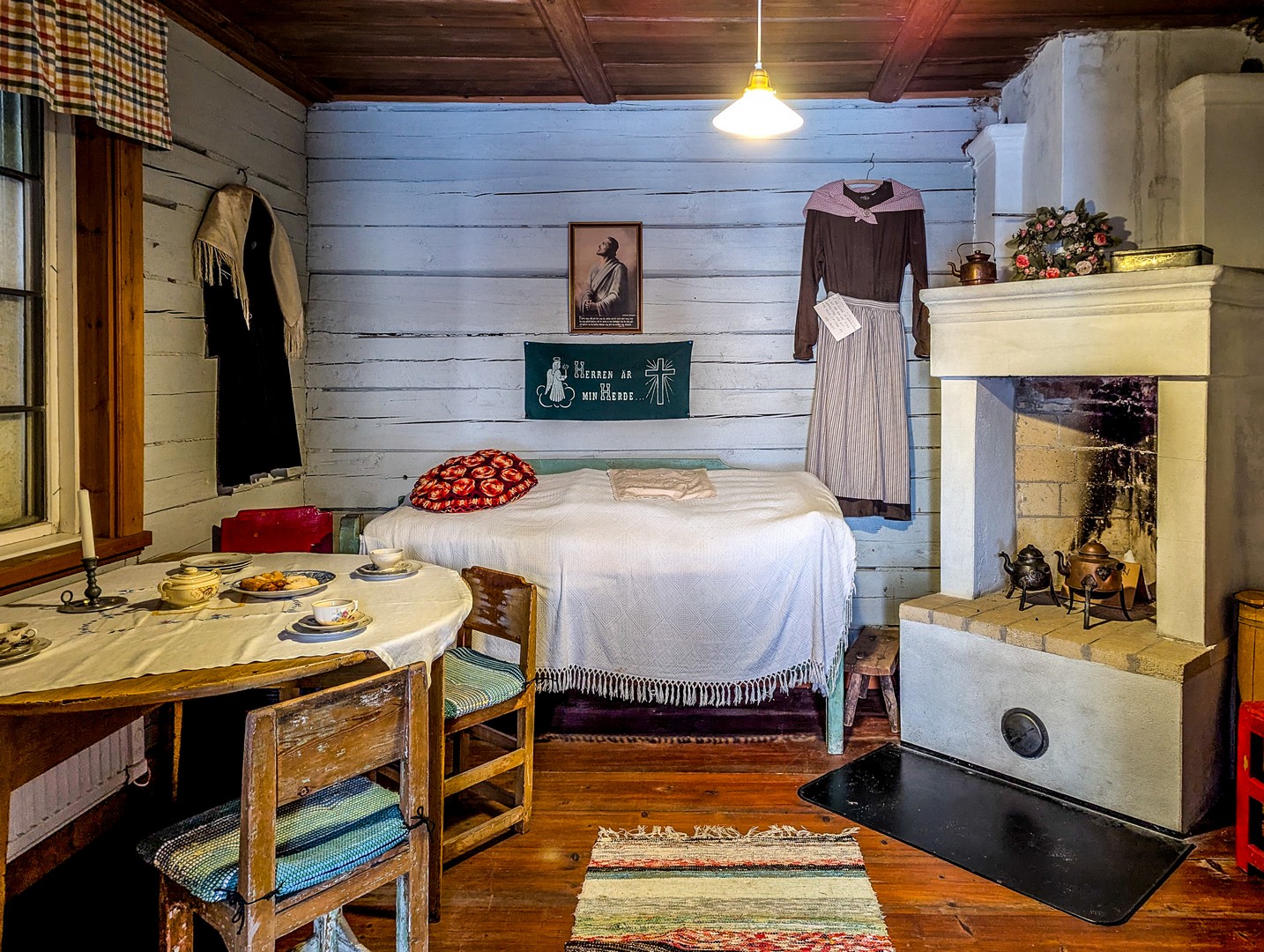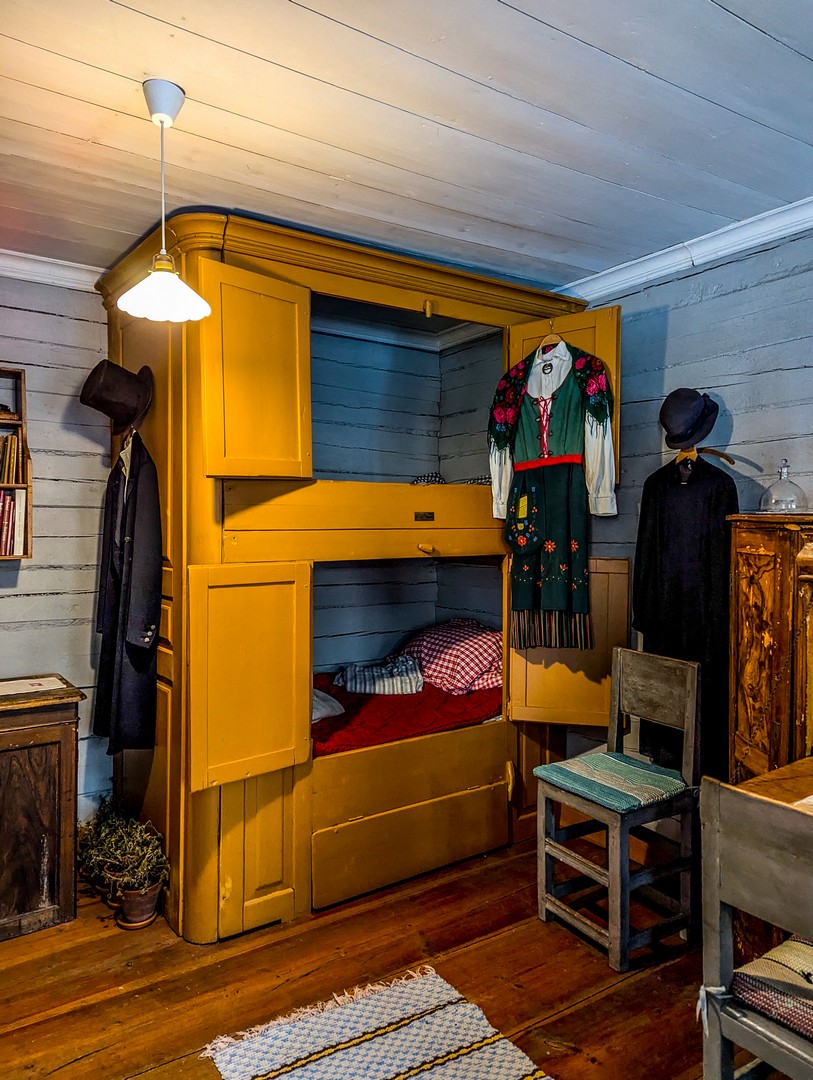 L’aménagement intérieur est sommaire : une seule pièce où tout est optimisé pour l’essentiel (une cheminée pour se chauffer et cuisiner, une table, un coin pour dormir). Ikea ne vient pas de nulle part ! Exemple ? Une armoire contenant deux lits superposés et qui pouvait accueillir une famille de cinq personnes. Très pratique à une époque… jusqu’à ce qu’une épidémie de tuberculose rende leur usage moins populaire. Il n’y a toujours pas d’eau courante dans les cabanes, et il faut se rendre au bloc sanitaire pour se laver.