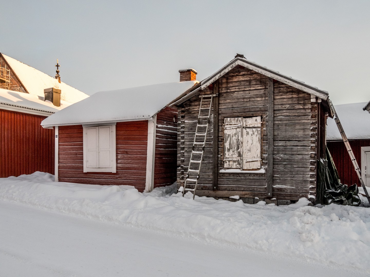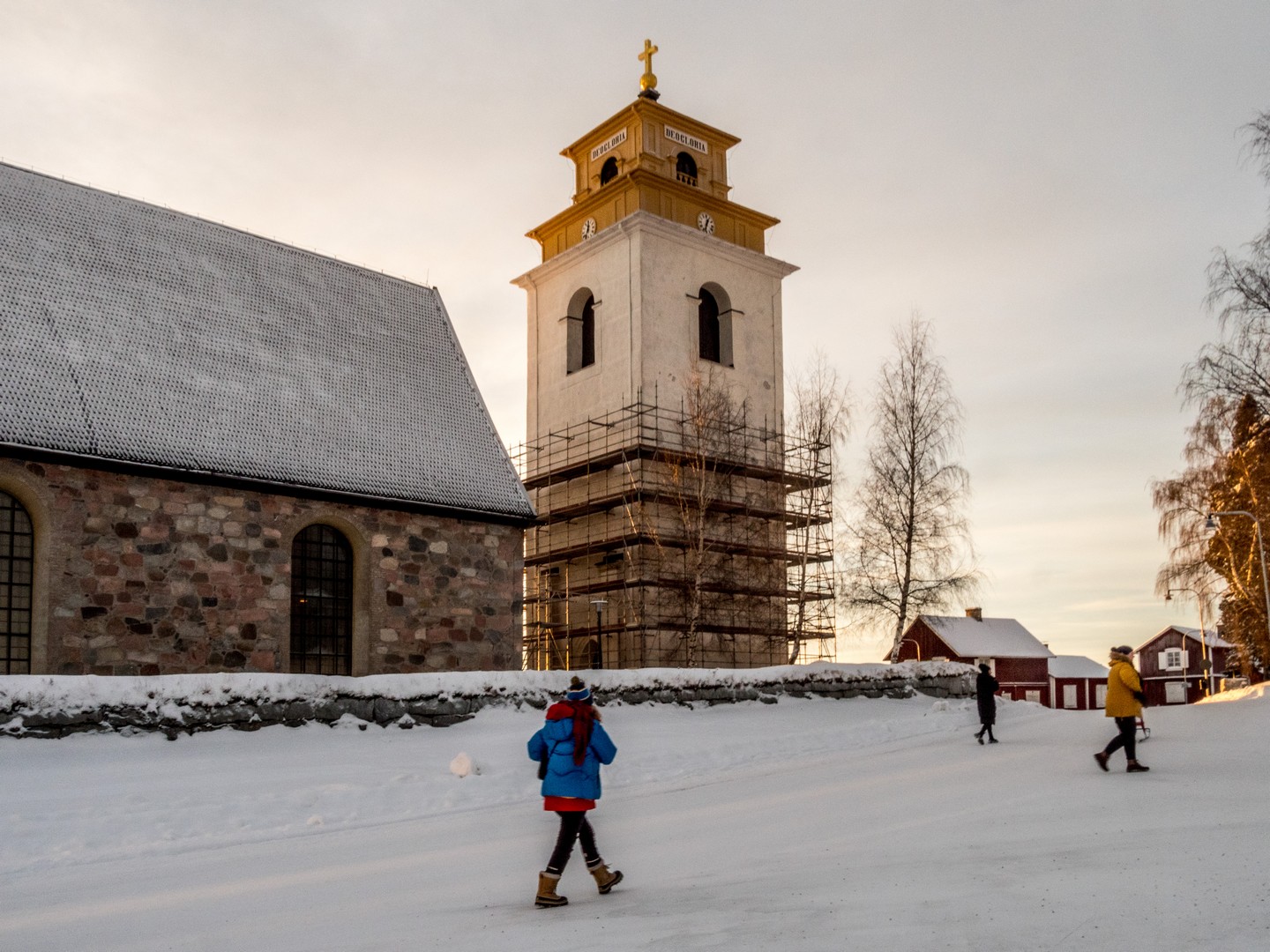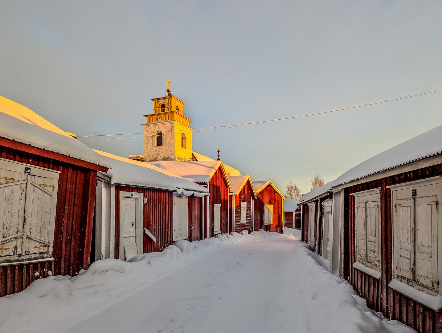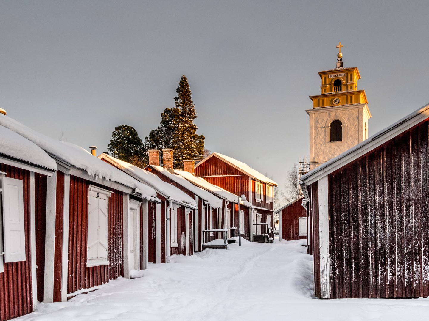 Il est encore tôt lorsque nous quittons Mörön pour rejoindre un des joyaux du nord de la Suède : Gammelstad. En suédois, « Gammelstad » signifie « vieille ville », et pour cause : c’est ici que fut fondée Luleå avant que la ville ne soit « déménagée » plus près de la mer suite à des bouleversements géologiques. À l’origine, simple comptoir commercial, le village s’est transformé en centre religieux avec la construction de l’église de Nederluleå au XVe siècle. La Suède, ayant embrassé la Réforme, imposait alors l’obligation d’assister régulièrement aux services religieux : à moins de 10 kilomètres, tous les dimanches ; à 20 kilomètres, un dimanche sur deux ; à 30 kilomètres, une fois toutes les trois semaines. Mais comment faire en Laponie, où les distances jusqu’à l’église la plus proche étaient bien plus longues ? La solution fut de permettre à chaque famille de construire une maisonnette sur les terres de l’église pour y passer une nuit ou deux. C’est ainsi qu’apparurent les « villes-églises ». On en trouve plusieurs dans le Norrbotten (région nord de la Suède), mais Gammelstad est la mieux préservée avec ses 404 cabanes, ce qui lui a valu d’être inscrite au patrimoine de l’UNESCO.