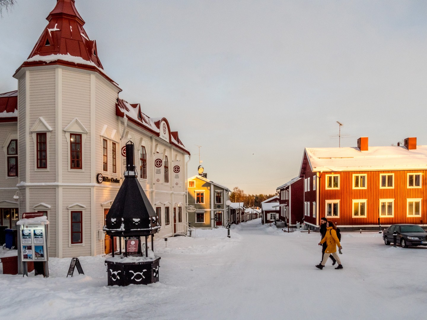 Nous rendre au café nous donnera l’occasion de nous faire une idée de Luleå. La ville semble jeune, et pour cause : une grande partie de la « nouvelle ville », construite après l’abandon de Gammelstad, a été réduite en cendres lors d’un gigantesque incendie au XIXᵉ siècle. Reconstruite sur un plan en damier, Luleå dévoile une architecture simple mais charmante. Un rapide tour en bus le long de la piste de glace m’a d’ailleurs fait réaliser à quel point la ville est entourée d’eau. Construite sur un isthme, elle est cernée par la mer de presque tous les côtés.