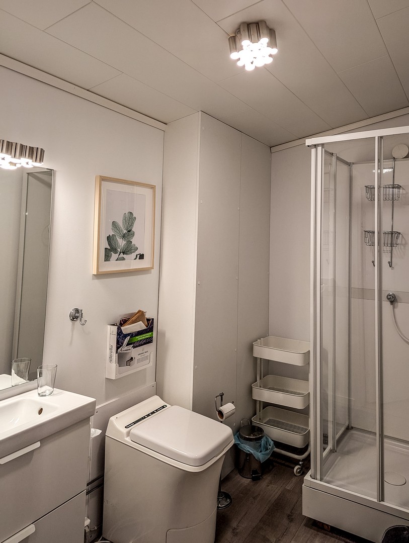 Cependant, il n’y a pas d’eau courante jusqu’à l’igloo. Les toilettes fonctionnent par incinération, un système qui s’avère finalement très simple à utiliser. Pour la douche et le lavabo, chaque unité dispose d’un réservoir, mais la quantité d’eau est limitée : juste assez pour une douche rapide (la douche du sauna, en revanche, n’est pas limitée). À l’extérieur de la cabine, sous l’igloo, un espace aménagé avec un réchaud permet de profiter du paysage sans se transformer en glaçon.