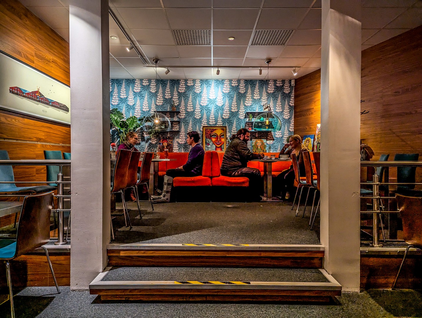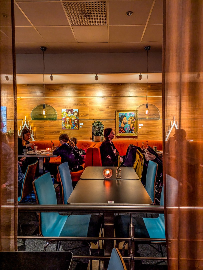 En plein cœur de Storgatan (littéralement la « Grande Rue »), la rue commerçante du centre-ville dont les trottoirs chauffés en hiver permettent aux passants de ne pas se retrouver les quatre fers en l’air – ou pire, avec une jambe cassée –, Friends est un grand café aux multiples coins et ambiances, où l’on peut manger dès le petit-déjeuner.
