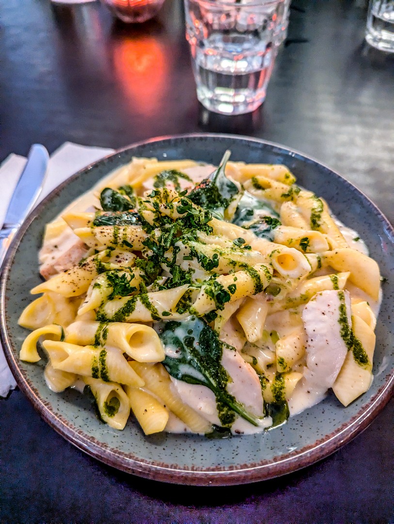 La carte propose des plats simples (sandwiches, pâtes, pizzas, burgers…) à des prix raisonnables, et qui font le taf’ !