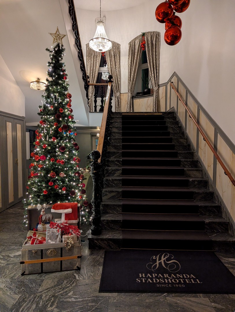 Impossible de ne pas rester un peu stupéfait quand on découvre l’Haparanda Stadshotell. Sa façade est digne d’un palace d’une ville bien plus grande (Haparanda ne compte qu’une bonne dizaine de milliers d’habitants). L’hôtel est une entreprise familiale dirigée par Susanne Wallin avec son fils, Anton qui, avec Andrea la directrice du restaurant, nous ferons le tour du propriétaire et nous raconterons l’histoire des lieux.