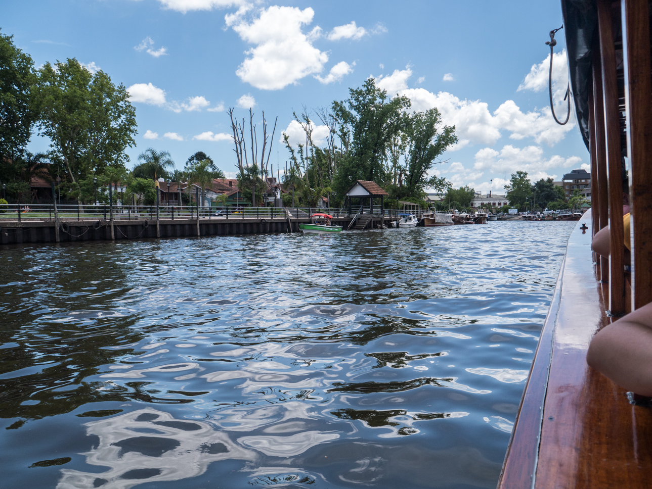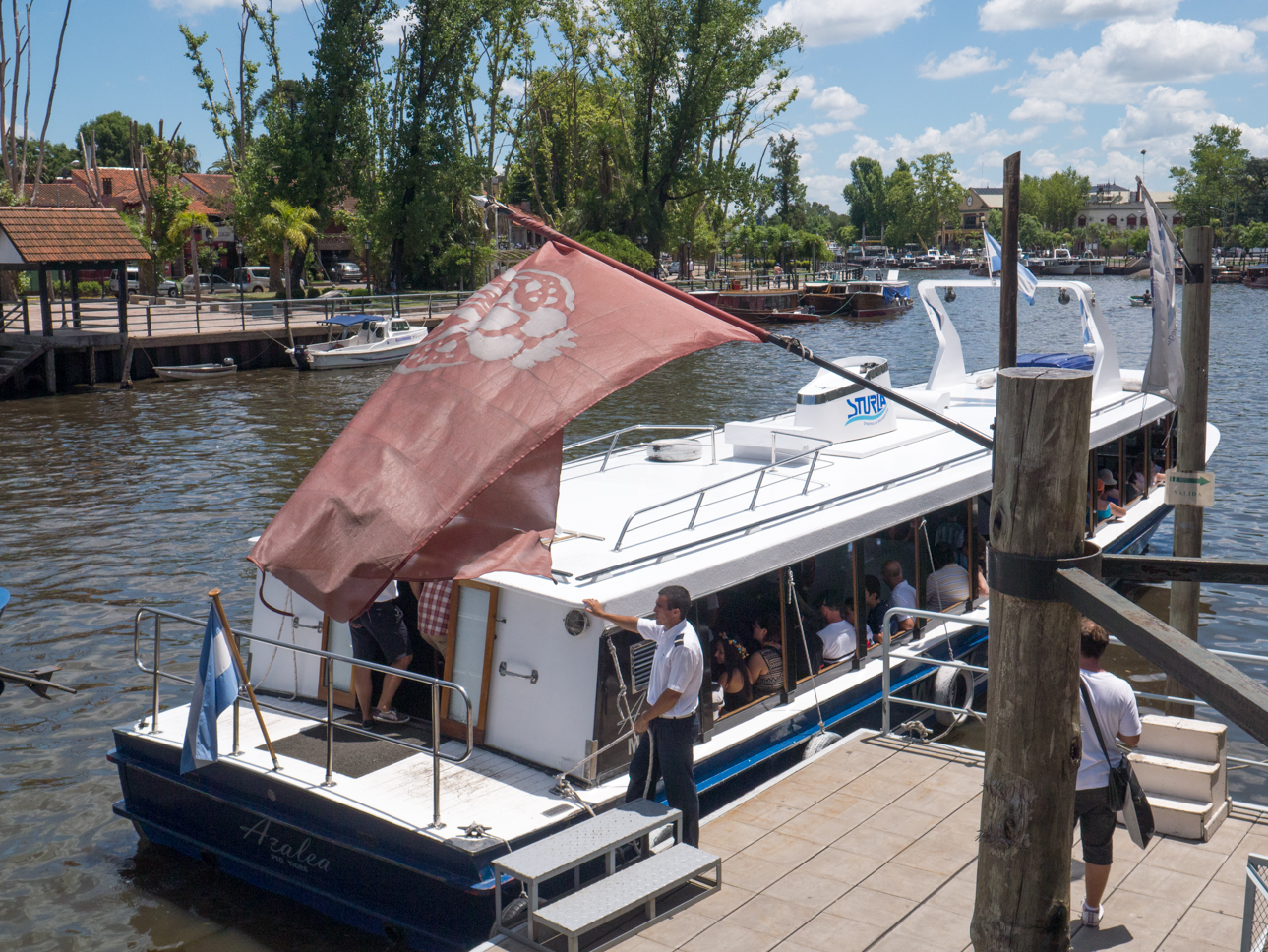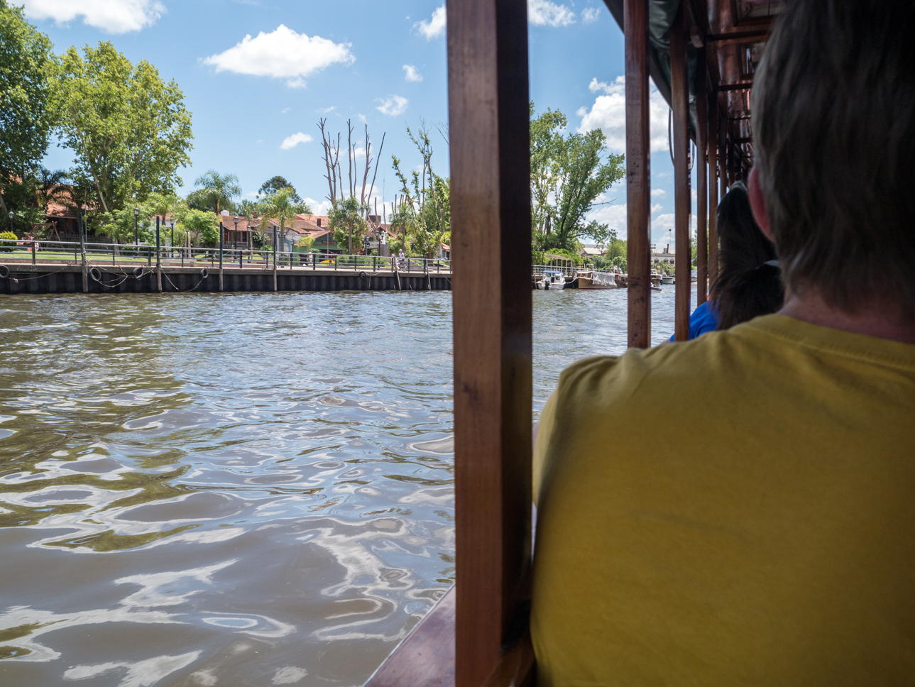Dès qu’on sort de la station, il y a comme un air de vacances ! Tigre est une fille de l’eau, installée sur le Delta du Paraná , un des plus vastes deltas au monde qui se déverse non pas dans l’océan, mais dans le Rio de la Plata. A Tigre, les chenaux et canaux remplacent rues et avenues et au lieu de voitures, on se déplace en barques et bateaux. Le premier arrêt est donc la gare fluviale ! A partir de là, vous avez le choix : soit emprunter les barques qui servent un peu de service public pour visiter les différents « quartiers » de Tigre. Comme il est déjà presque midi, je décide d’embarquer sur un bateau pour une visite express avant de reprendre mon temps.