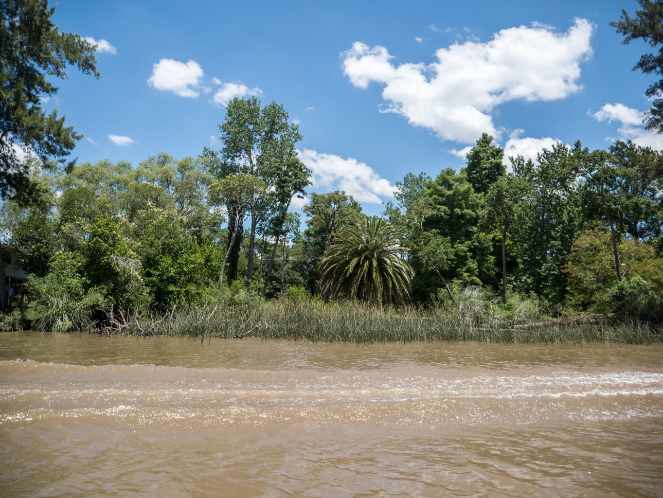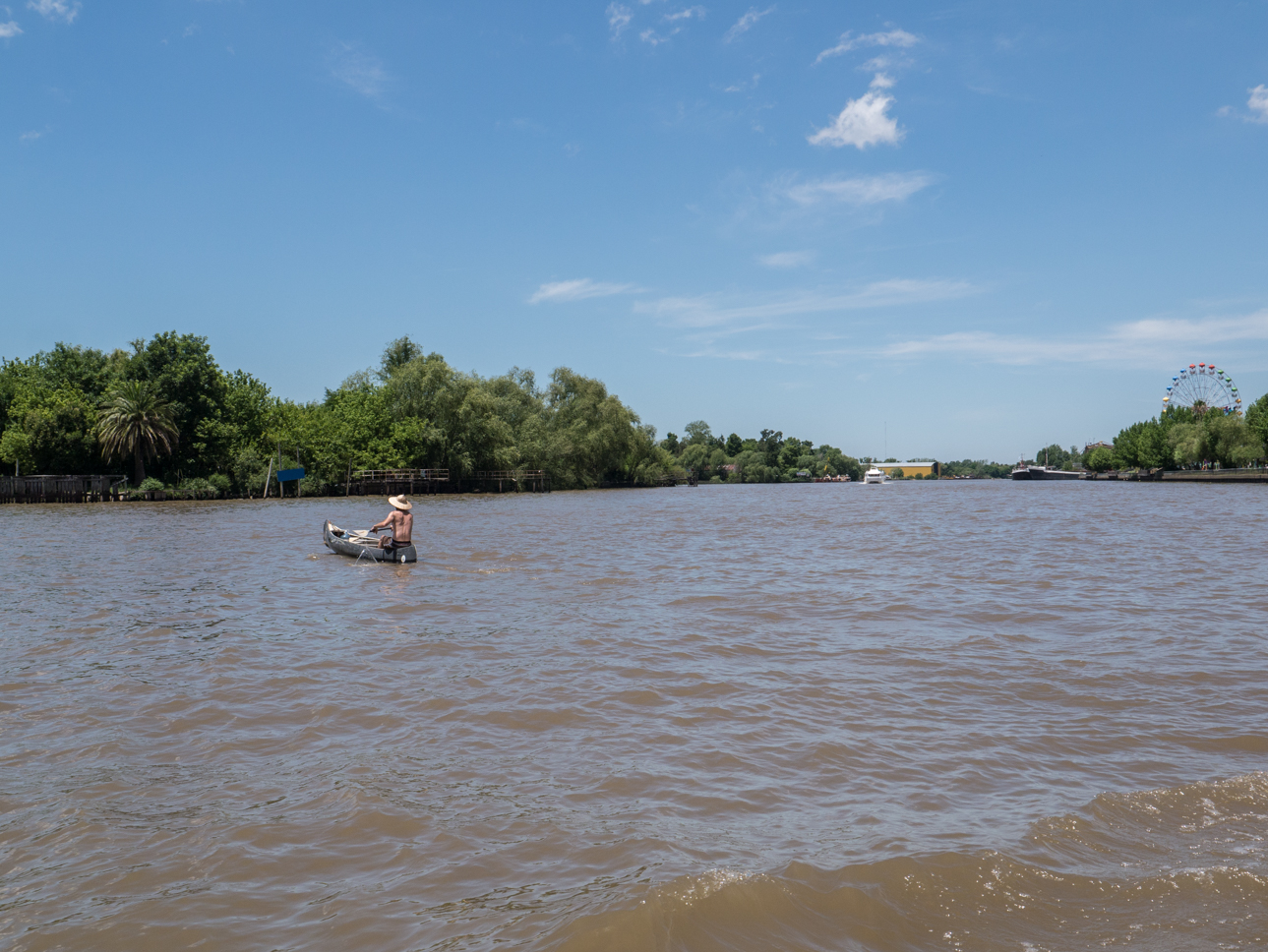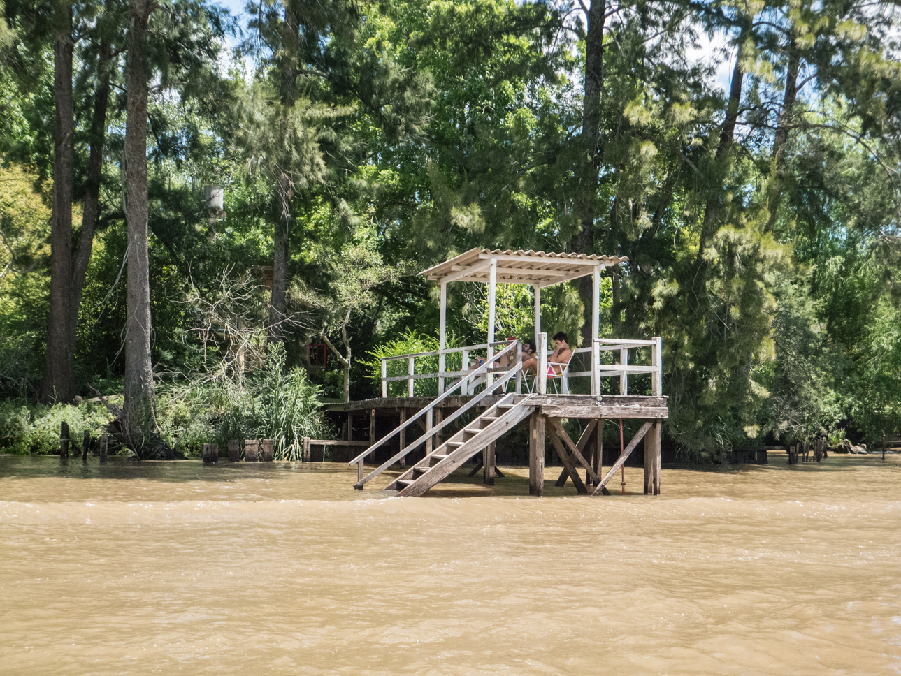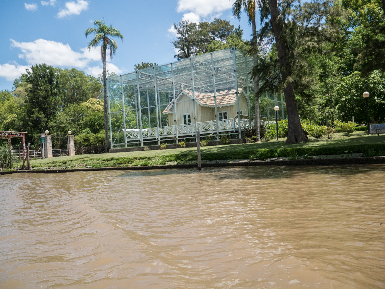 Tigre, c’est un centre-ville en bord de fleuve et des myriades de petites îles à fleur d’eau. Les maisons y sont presque toutes sont construites sur pilotis, et il y en pour tous les goûts : de la grande villa à la modeste cabine de pêcheur. Toutes ont un ponton et une barque à moteur… Comme je vais vite le découvrir lors de cette balade dans le delta, tout passe par la rivière : le courrier par exemple, ou les courses, qui sont acheminées en bateau. Tout un mode de vie bien différent de celle de la capitale, alors que seulement 30 kilomètres les séparent. Parmi les gens qui y habitent à l’année, une bonne poignée d’artistes… et pas mal de familles ! Au début de la balade, ce qu’on peut voir n’est pas très engageant. On passe à côté du port et d’un parc d’attraction un peu décati (le Parque de la Costa). On croise même des péniches chargées de bois (souvenir de l’époque où Tigre était sur la route des exploitations du bois et des fruits). Il y a même quelques épaves qui rouillent sur les rives. Par contre, dès que l’on quitte les voies principales, très soumises au trafic et donc dangereuses, il y a plein d’enfants que l’on voit se jeter depuis les pontons dans l’eau couleur café au lait du Delta. Une eau chargée de limon et de minéraux, venant du fin fond du continent. Elle n’a pas l’air engageante comme çà, mais à voir tous ces gamins s’ébattre dans l’eau, ça donne envie !