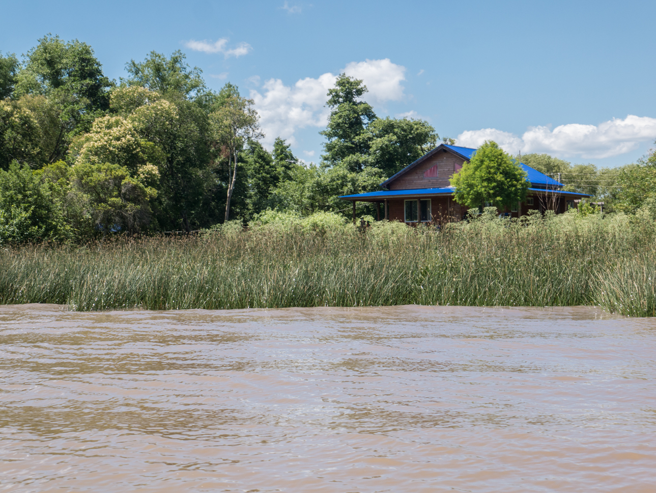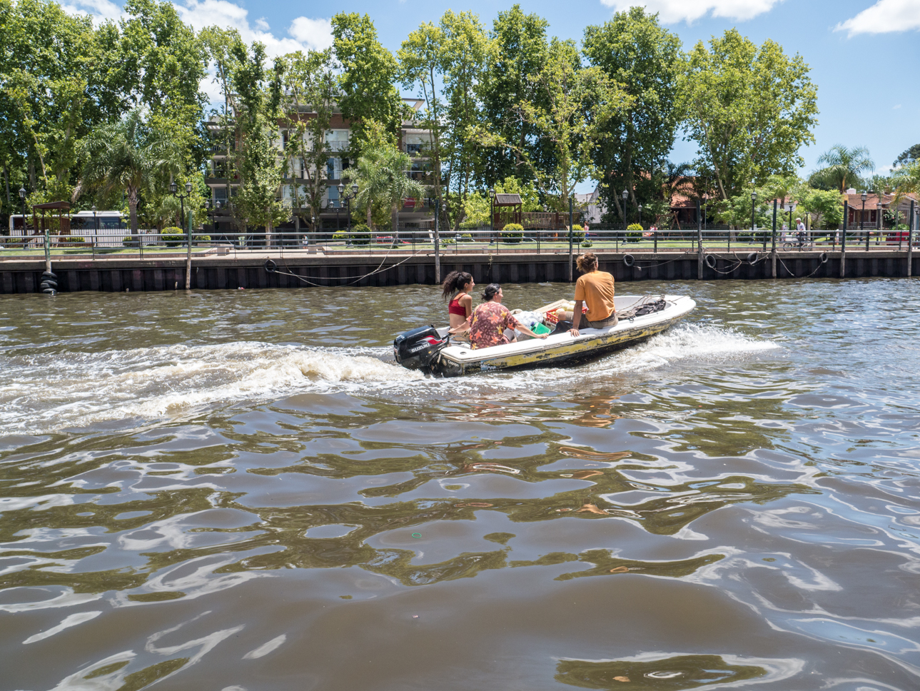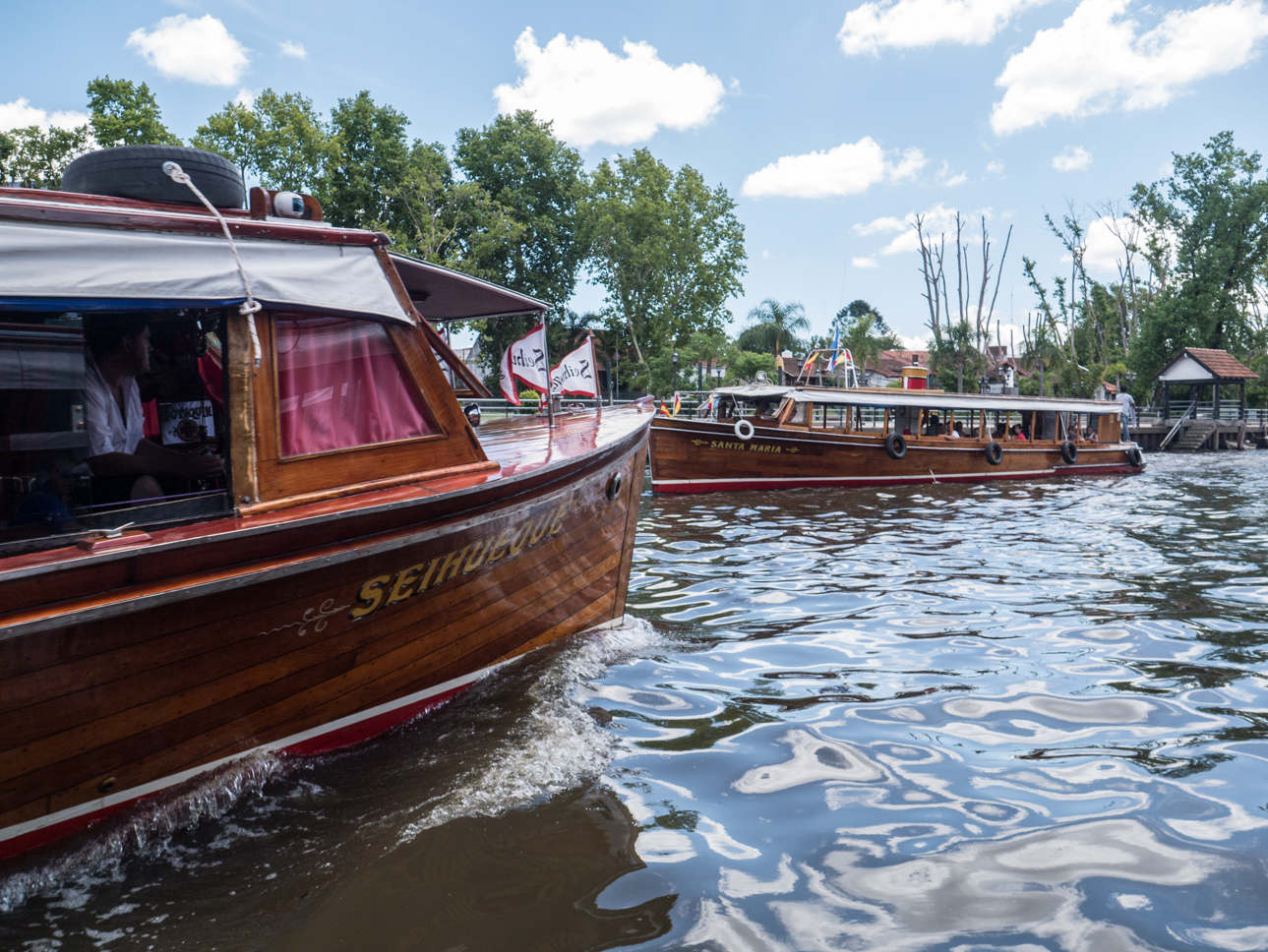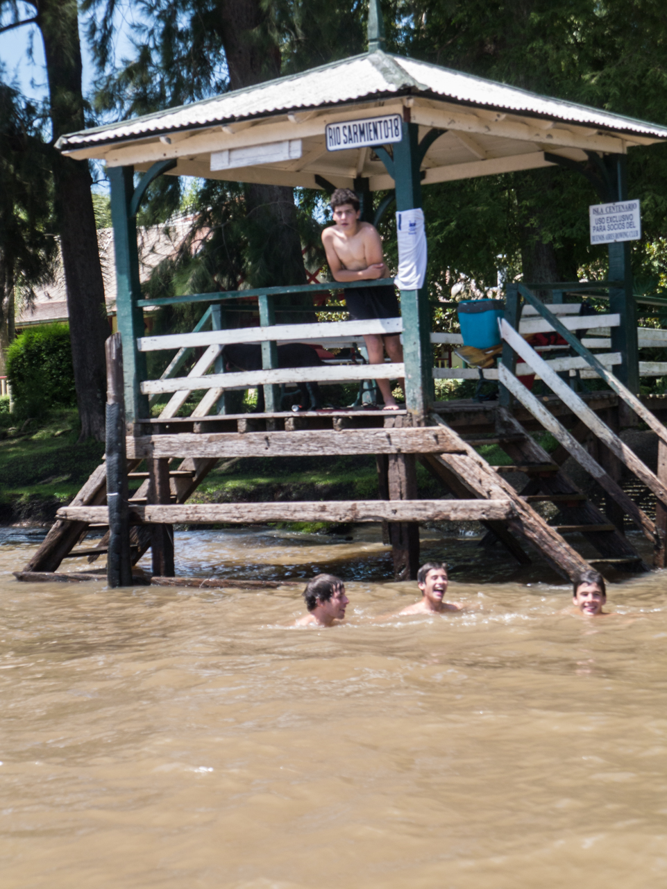 Tigre, c’est un centre-ville en bord de fleuve et des myriades de petites îles à fleur d’eau. Les maisons y sont presque toutes sont construites sur pilotis, et il y en pour tous les goûts : de la grande villa à la modeste cabine de pêcheur. Toutes ont un ponton et une barque à moteur… Comme je vais vite le découvrir lors de cette balade dans le delta, tout passe par la rivière : le courrier par exemple, ou les courses, qui sont acheminées en bateau. Tout un mode de vie bien différent de celle de la capitale, alors que seulement 30 kilomètres les séparent. Parmi les gens qui y habitent à l’année, une bonne poignée d’artistes… et pas mal de familles ! Au début de la balade, ce qu’on peut voir n’est pas très engageant. On passe à côté du port et d’un parc d’attraction un peu décati (le Parque de la Costa). On croise même des péniches chargées de bois (souvenir de l’époque où Tigre était sur la route des exploitations du bois et des fruits). Il y a même quelques épaves qui rouillent sur les rives. Par contre, dès que l’on quitte les voies principales, très soumises au trafic et donc dangereuses, il y a plein d’enfants que l’on voit se jeter depuis les pontons dans l’eau couleur café au lait du Delta. Une eau chargée de limon et de minéraux, venant du fin fond du continent. Elle n’a pas l’air engageante comme çà, mais à voir tous ces gamins s’ébattre dans l’eau, ça donne envie !
