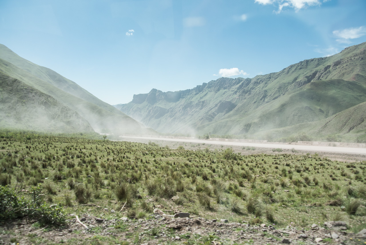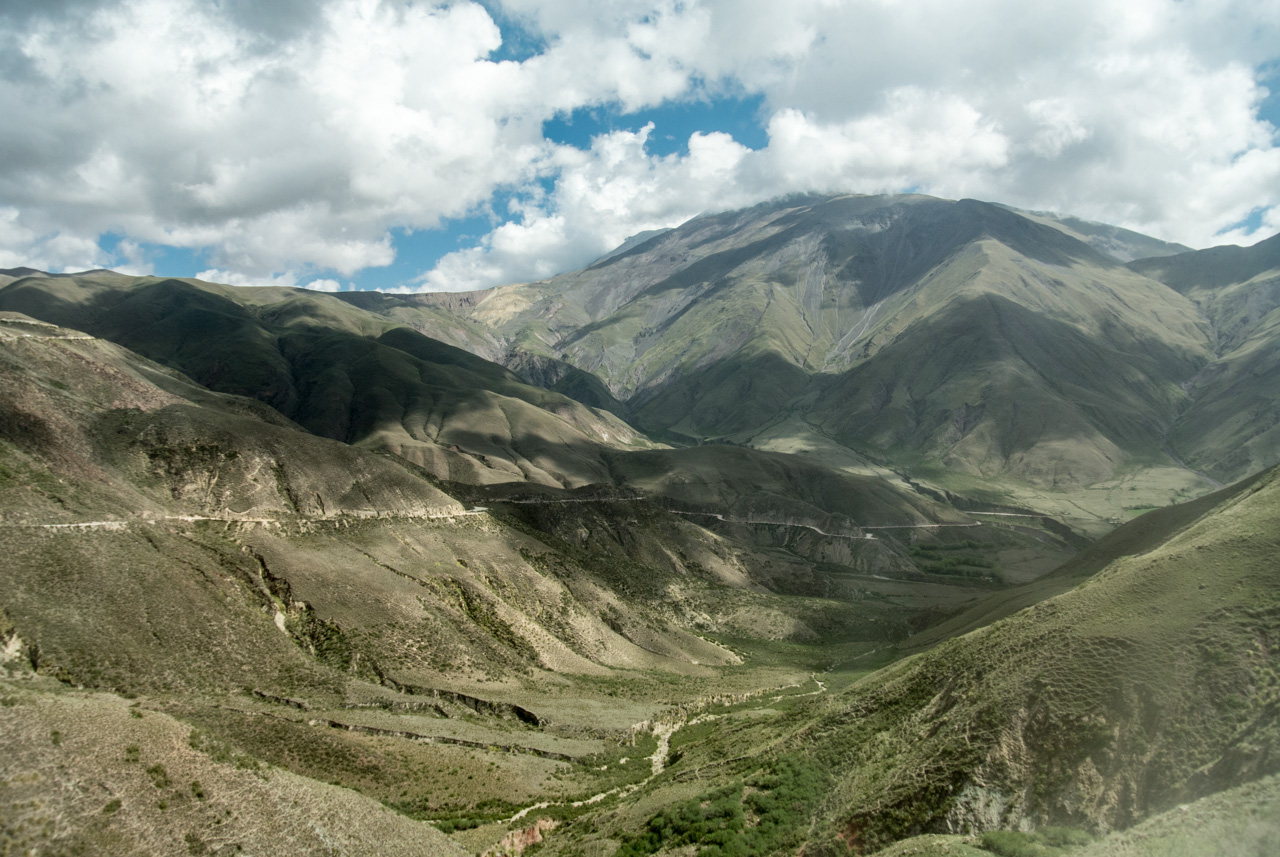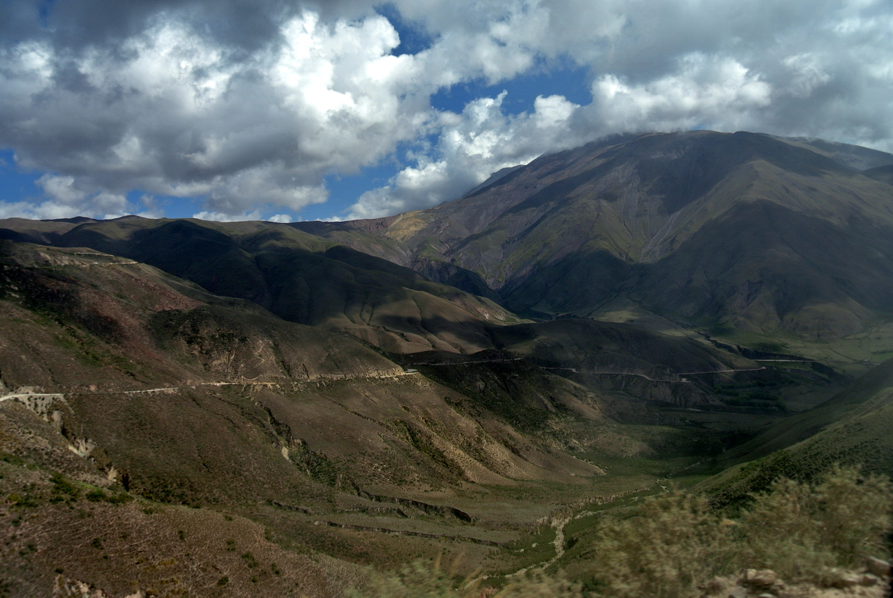 Mais l’heure tourne, en milieu d’après-midi, il est l’heure de quitter Cachi et nous voilà retournant quasi d’une traite vers Salta. Pendant ce temps, la météo s’est mise de mauvaise humeur et les montagnes se cachent derrière de gros nuages, rendant le paysage encore plus mystérieux et austère.