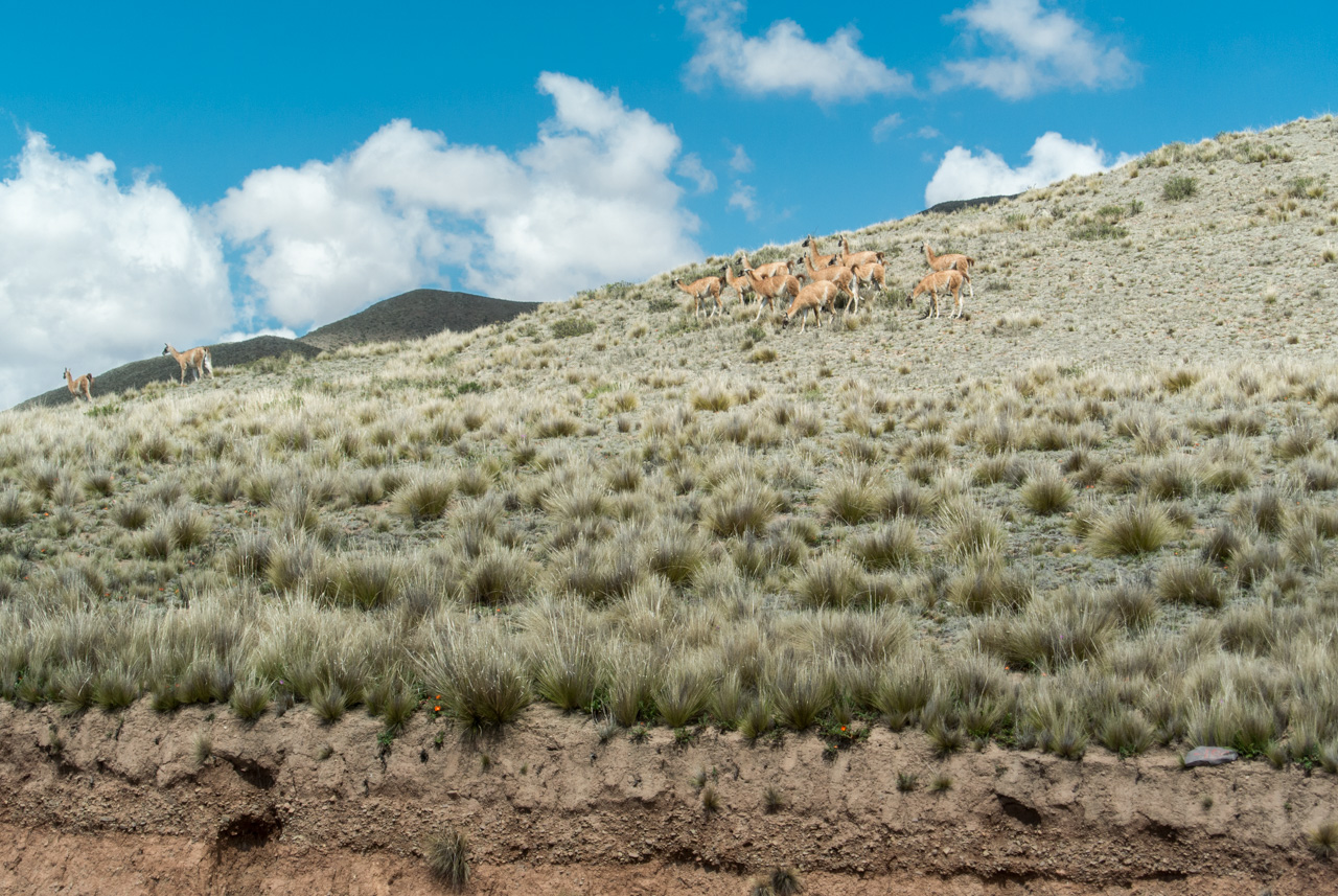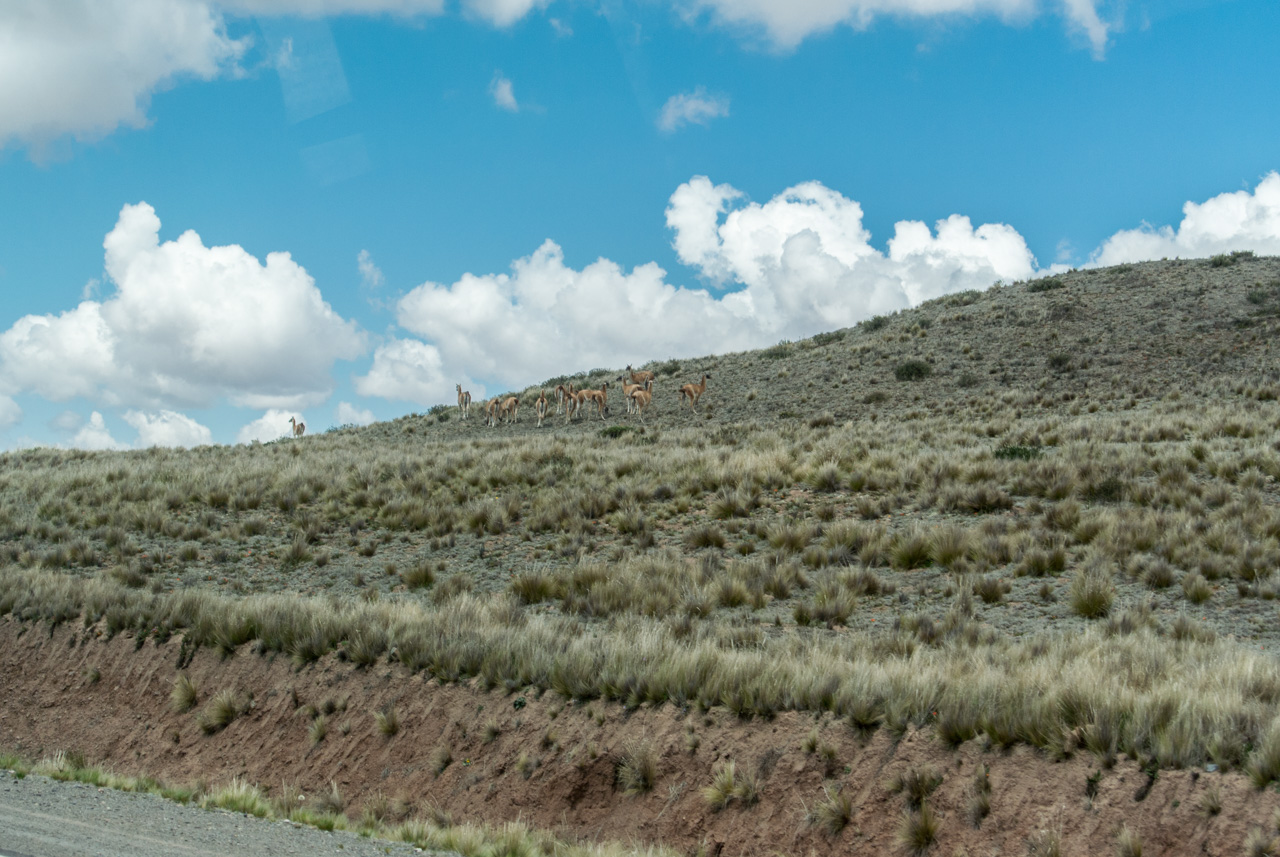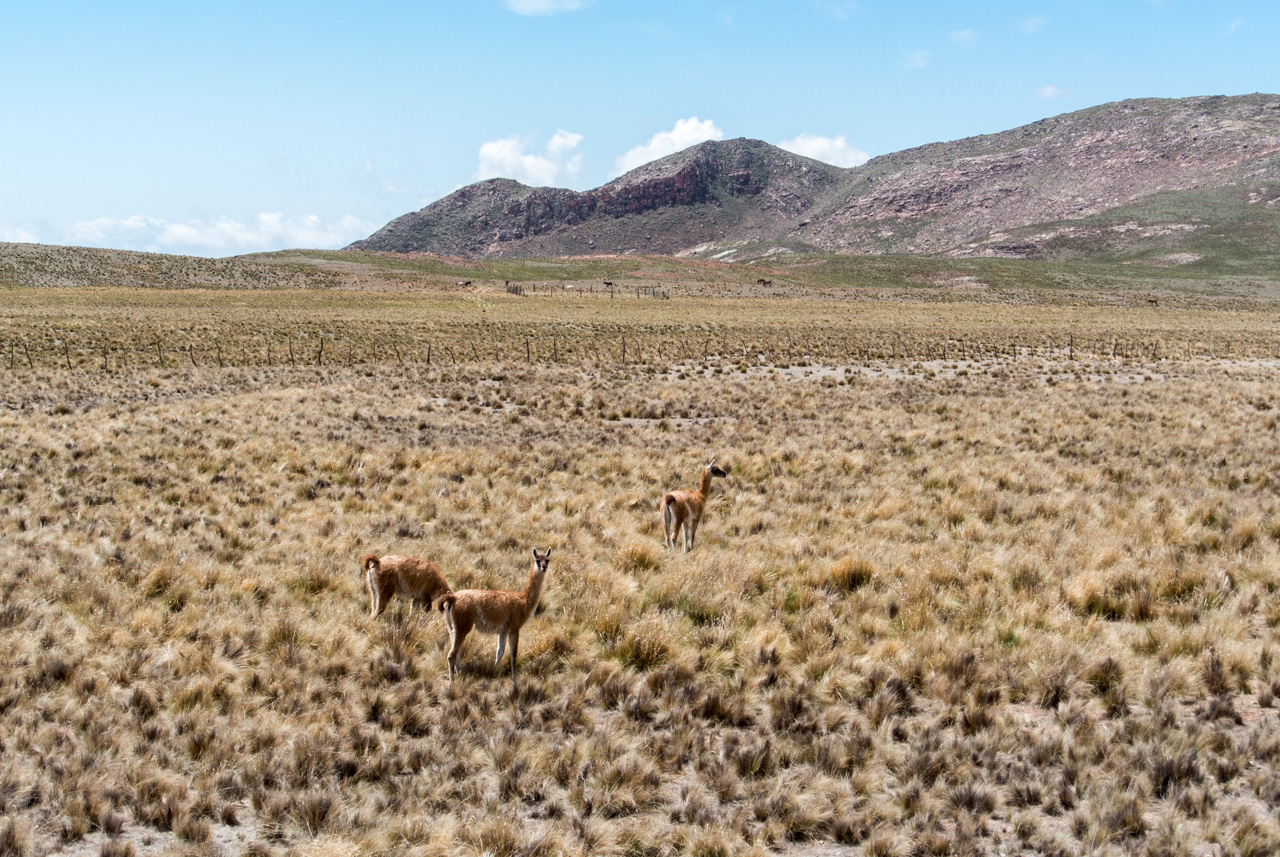 Ce paysage bien dégagé permet aussi d’apercevoir des animaux : une énorme araignée (tellement énorme qu’on ne pouvait pas la louper du bus) ou encore, un troupeau de guanacos (des cousins du lama).